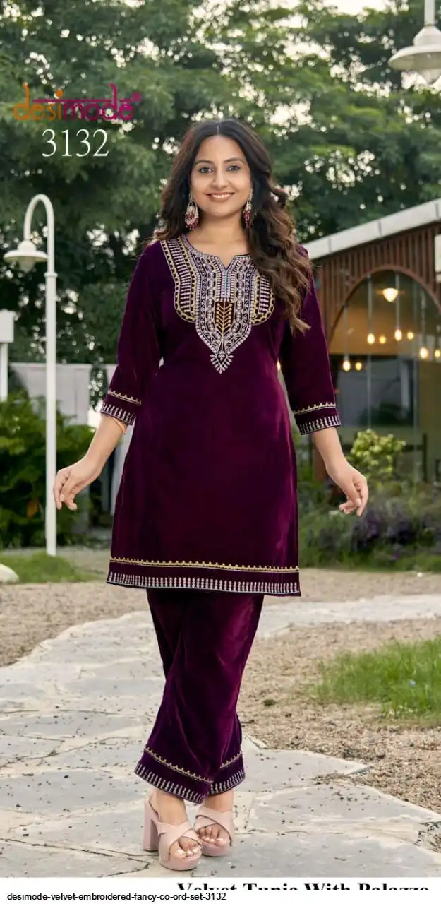 DESIMODE VELVET EMBROIDERED FANCY CO ORD SET 3132