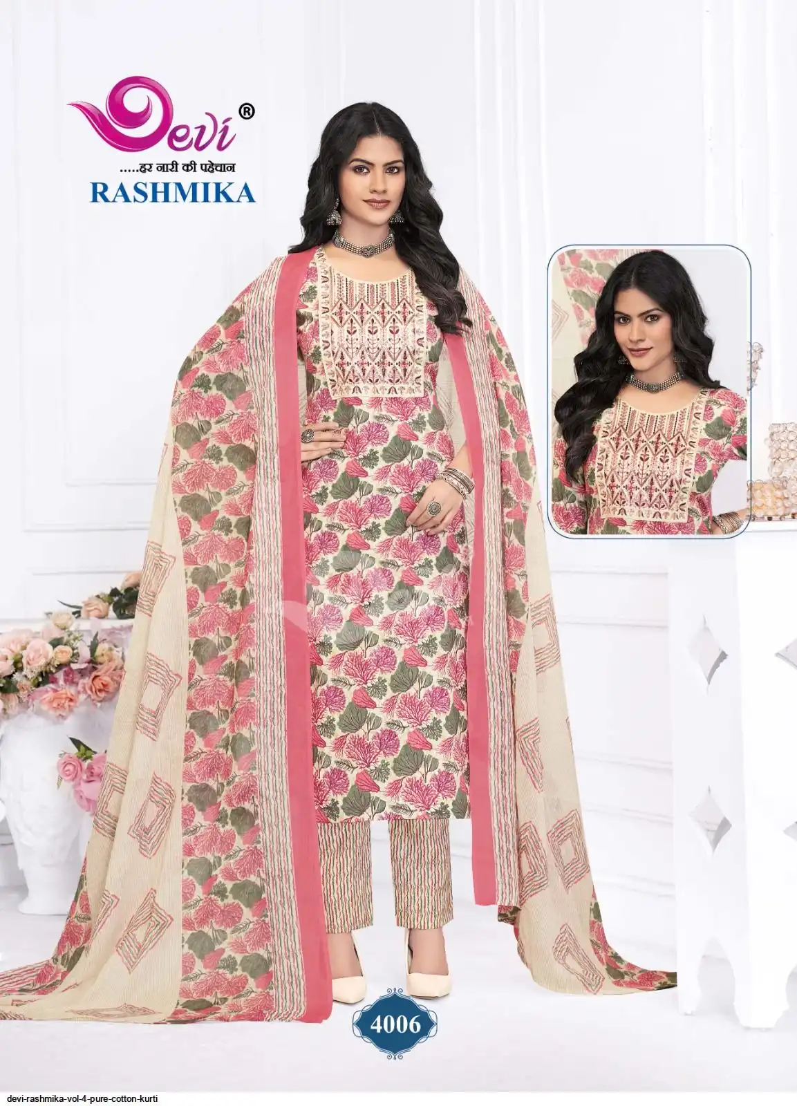 Top – Pure Cotton Printed With Lining(Inner) With Embroidery Neck Patch Work | Size:- M(38) / L(40) / XL(42) / XXL(44)