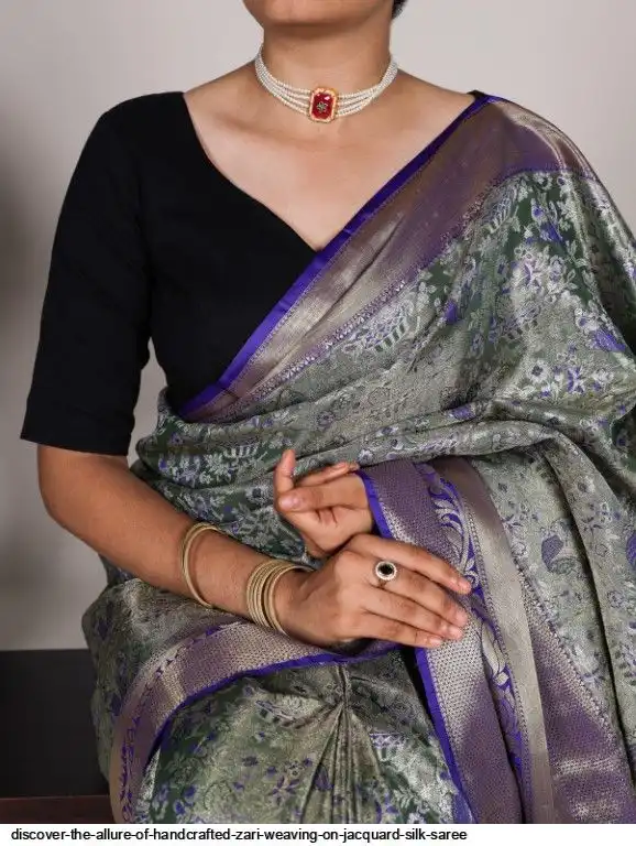 Discover the Allure of Handcrafted Zari Weaving on Jacquard Silk Sarees – A Celebration of Artistry and Luxurious Fabric🪸