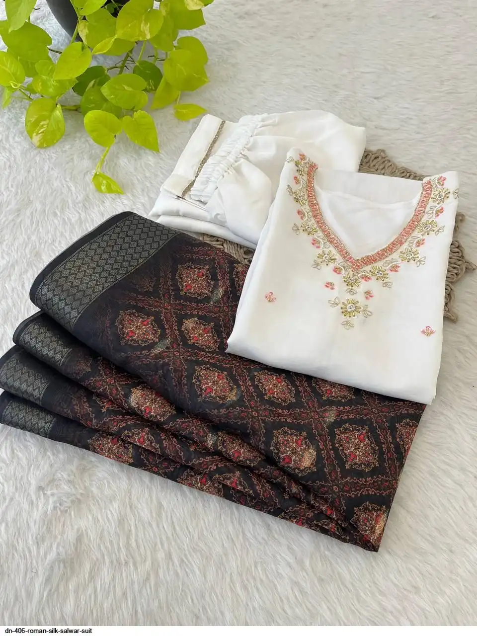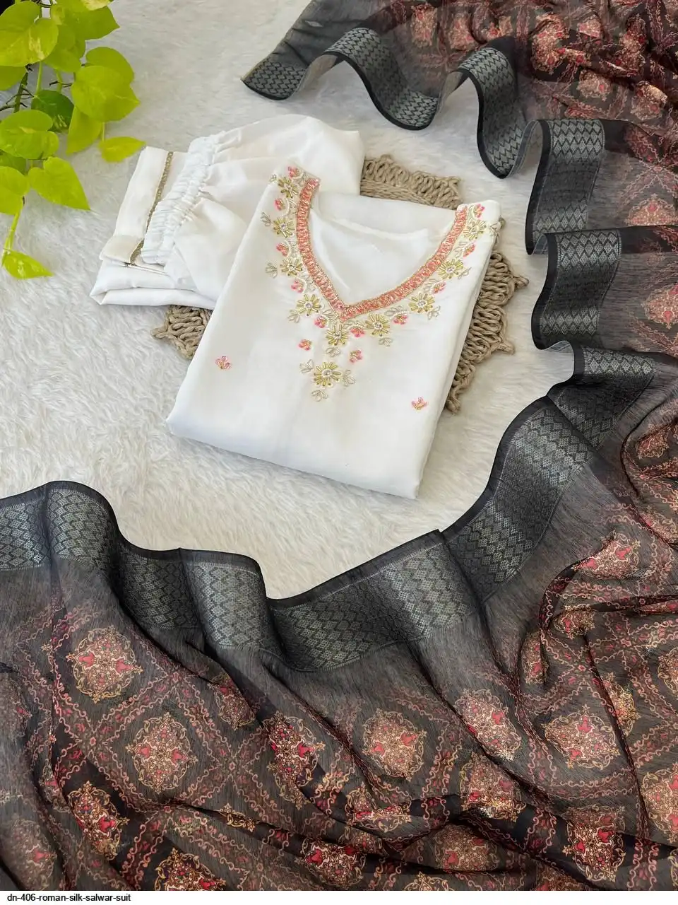 *Pant* - Premium Roman Silk Soft Fabric With Miyani Pant , Fancy Daman lace