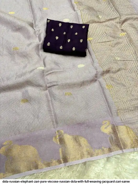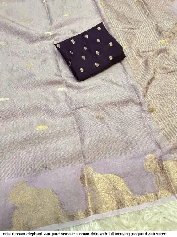 • DOLA RUSSIAN ELEPHANT ZARI PURE VISCOSE RUSSIAN DOLA WITH FULL WEAVING JACQUARD ZARI SAREE D