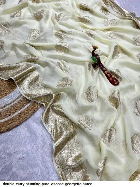 Pure Viscose Georgette Weaving Jacquard Saree With Contrast Color Blouse