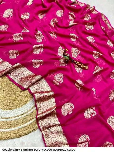 Pure Viscose Georgette Weaving Jacquard Saree With Contrast Color Blouse