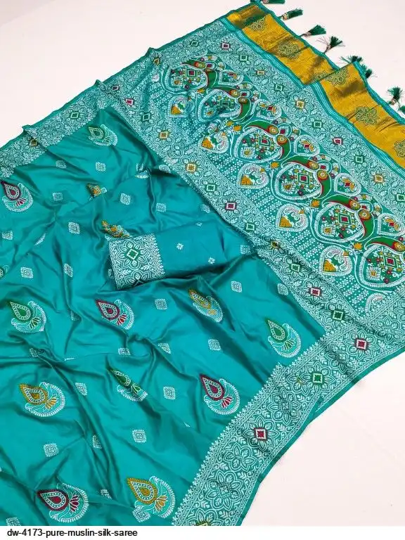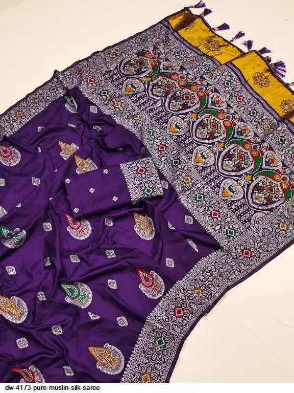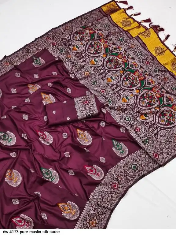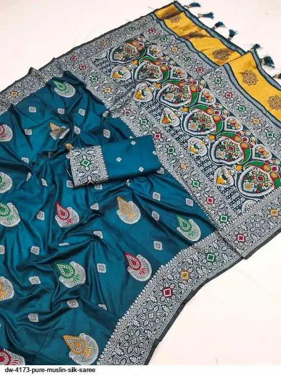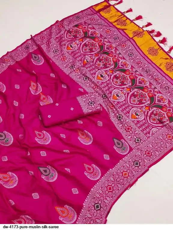 Saree :~. Pure Muslin Silk Saree with Heavy Meenakari weaving design all over the saree & Rich Meenakari weaving Pallu