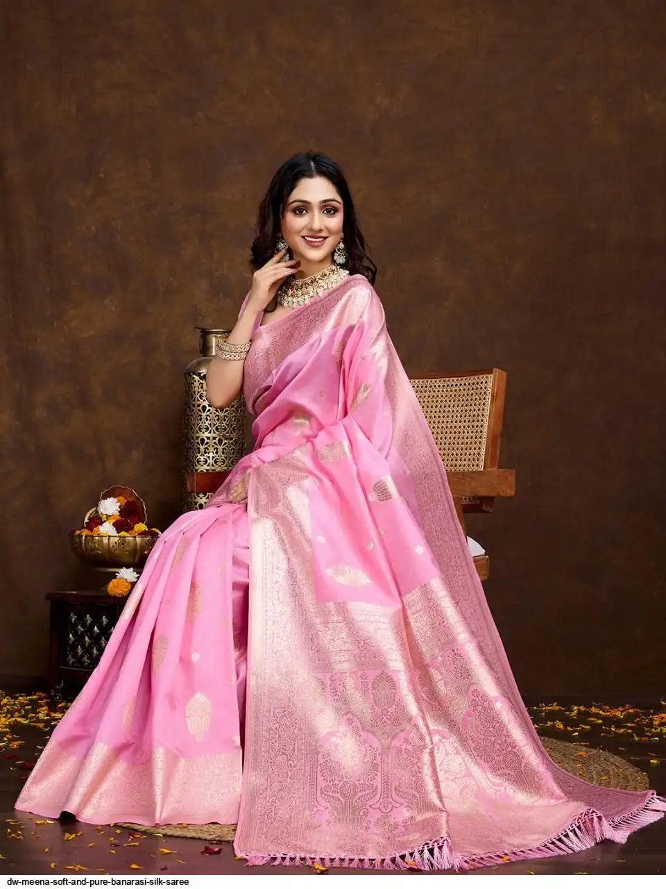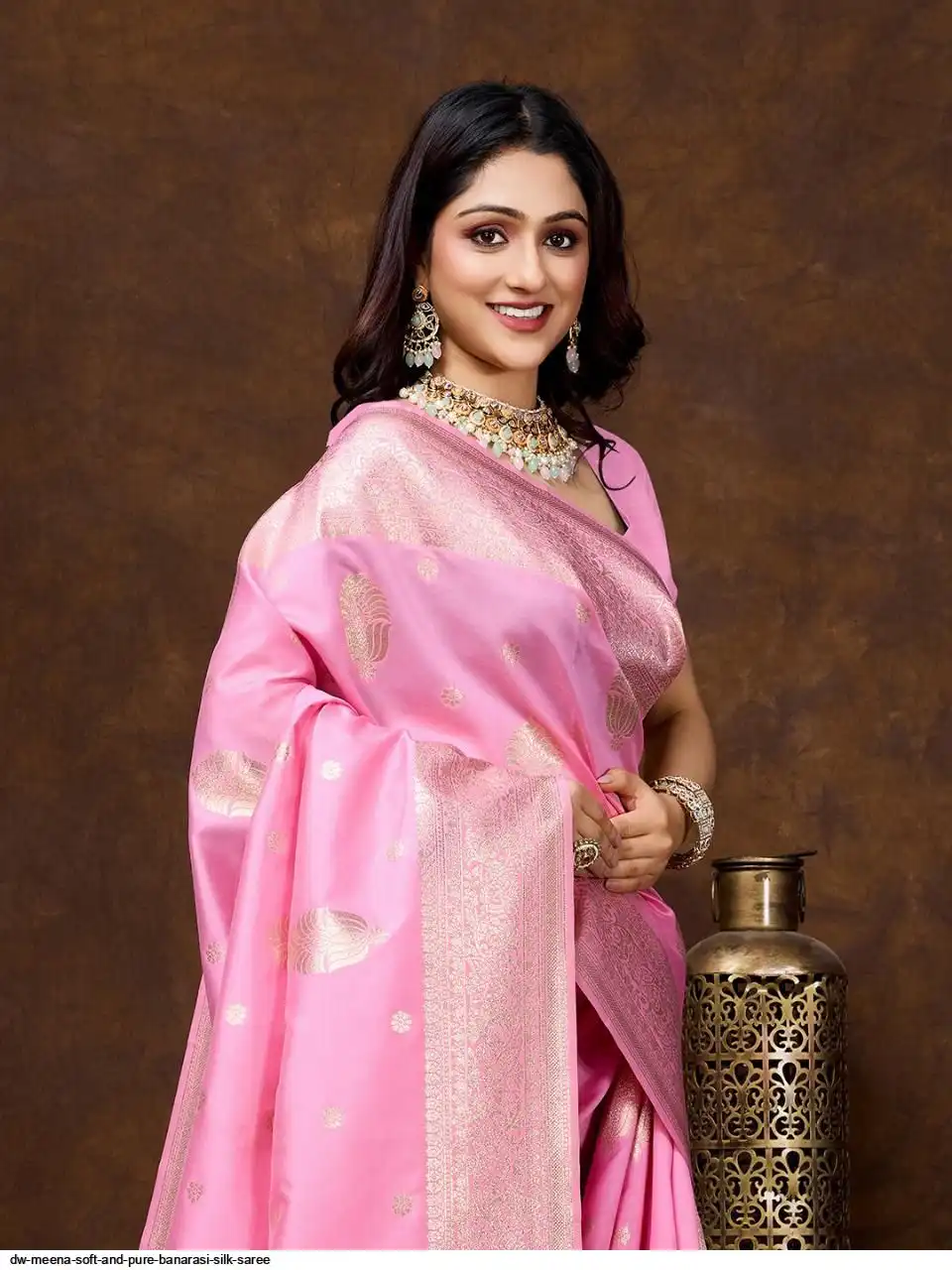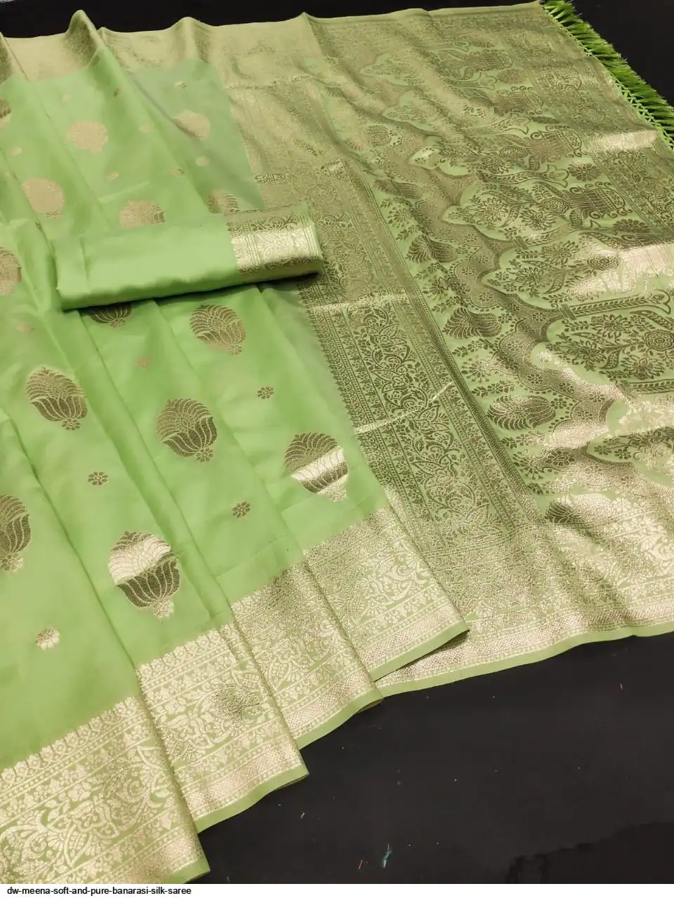 Saree :- Soft And pure Banarasi silk saree with zari weaving motifs design all over the saree & Zari weawing Rich pallu with zari weawing border.