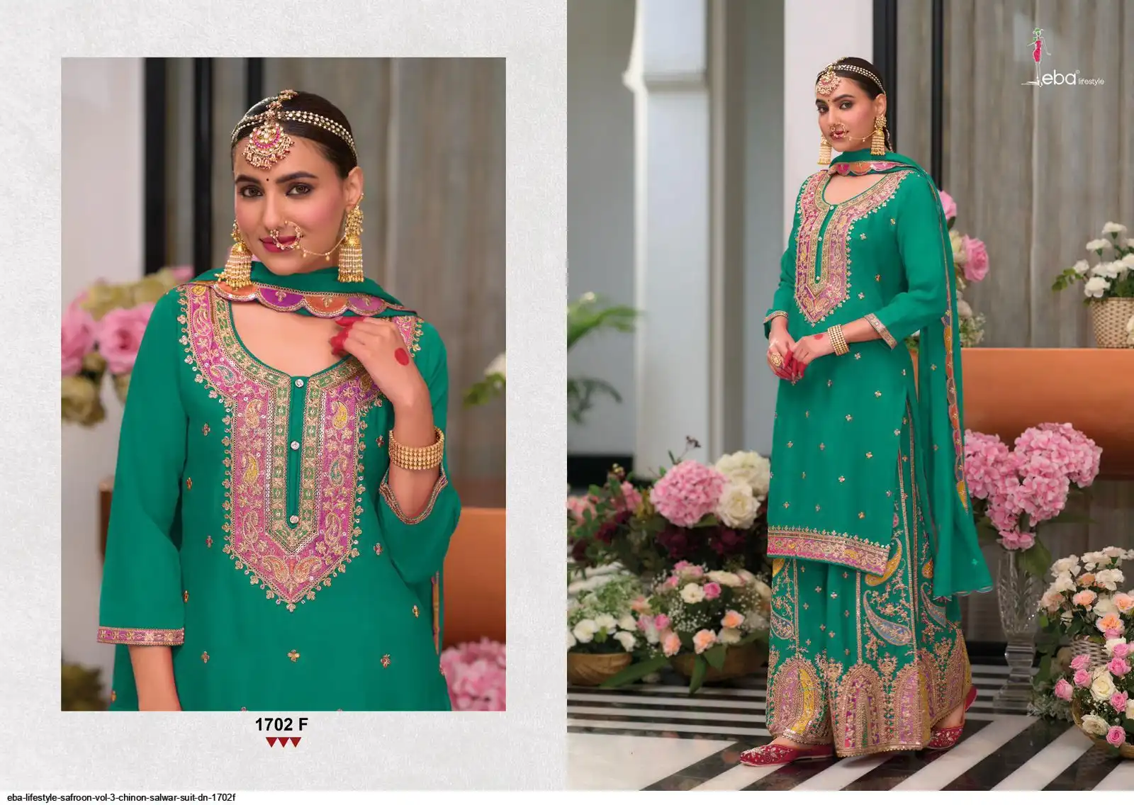 plazo - hevey Chinon with emboidery ( front & back work )