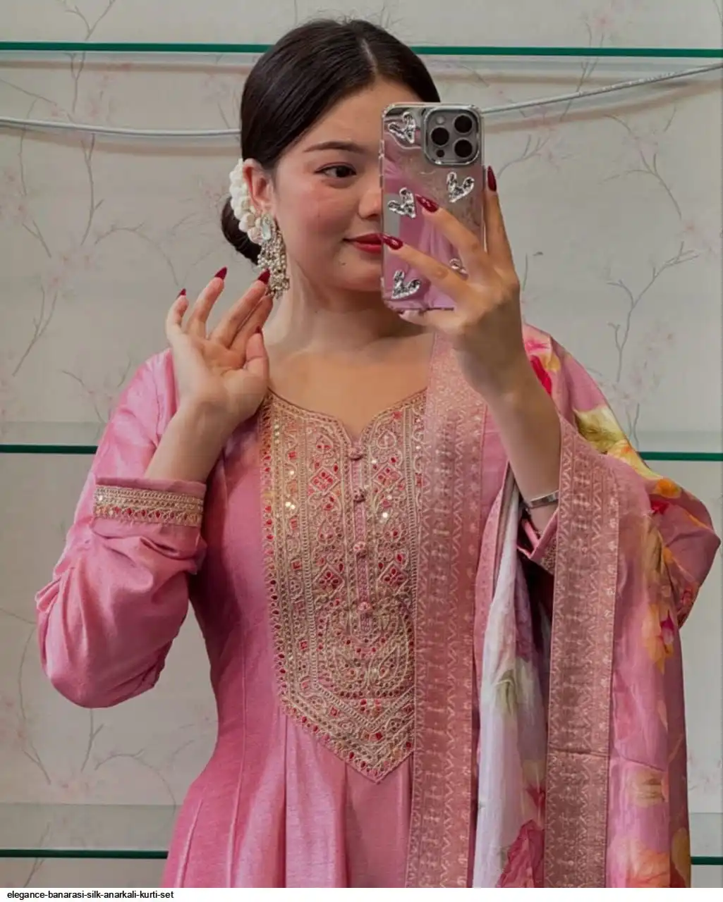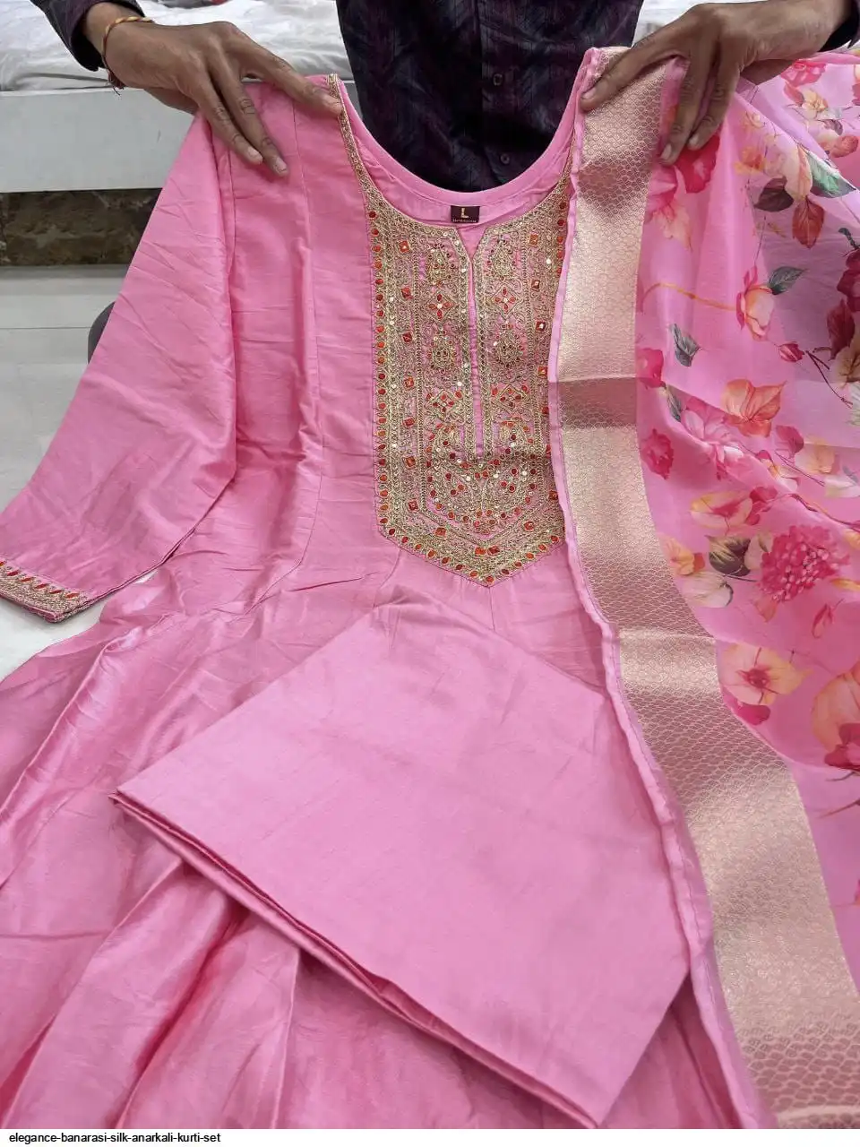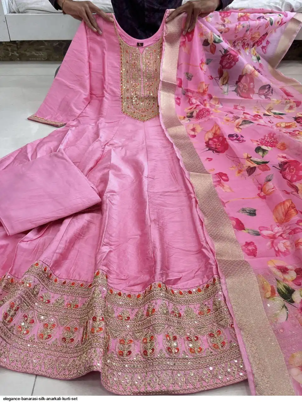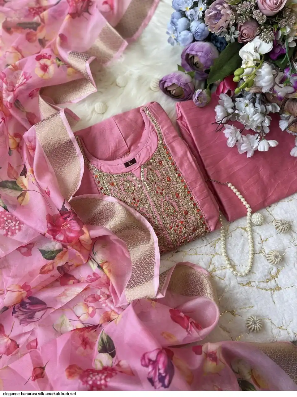 Step into timeless elegance with this exquisite Anarkali fl noared silk kurti set, designed to make you stand out at any festive or celebratory occasion. Crafted from luxurious silk, the Anarkali kurti features a graceful flare that flows beautifully, creating a regal and sophisticated look silhouette. The intricate detailing on the yoke adds a touch of traditional charm, while the soft silk fabric ensures all-day comfort.