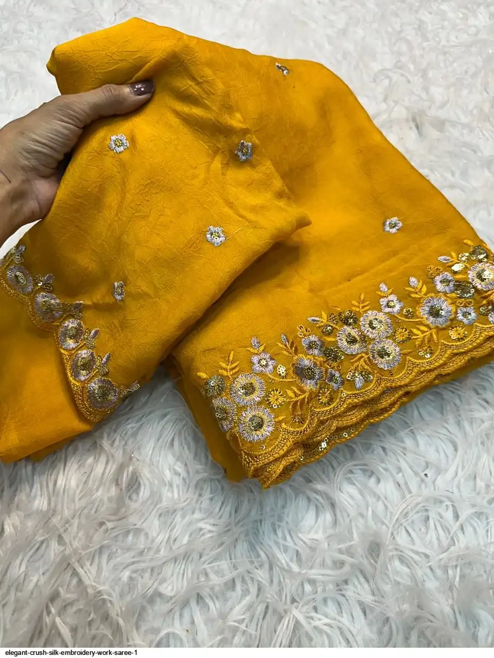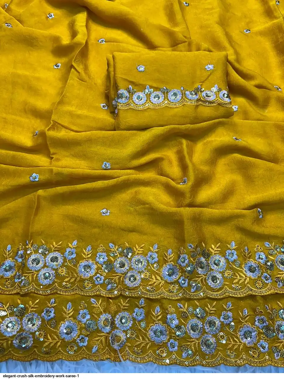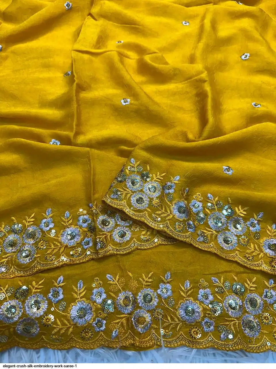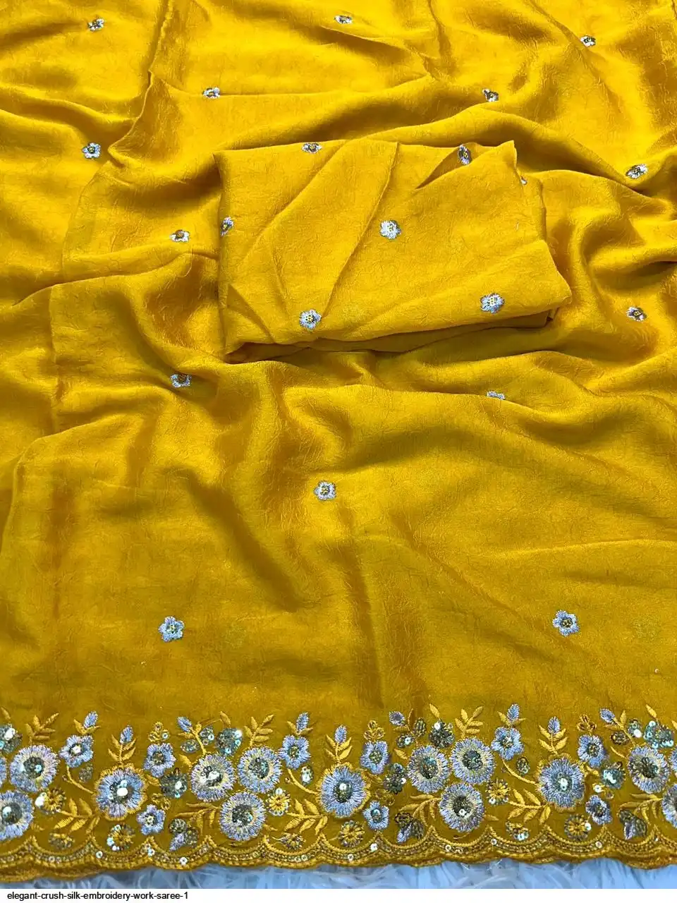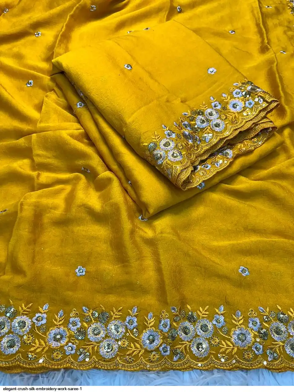 Fabric :- Crush Silk Saree With Fancy Sequince Embroderiy Work & Fancy Blouse