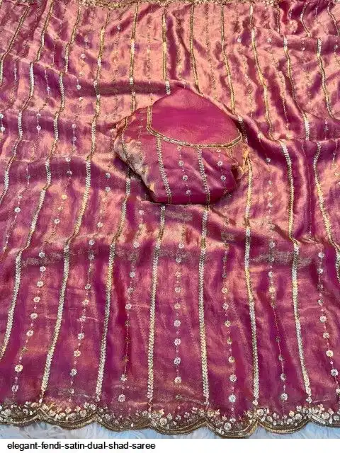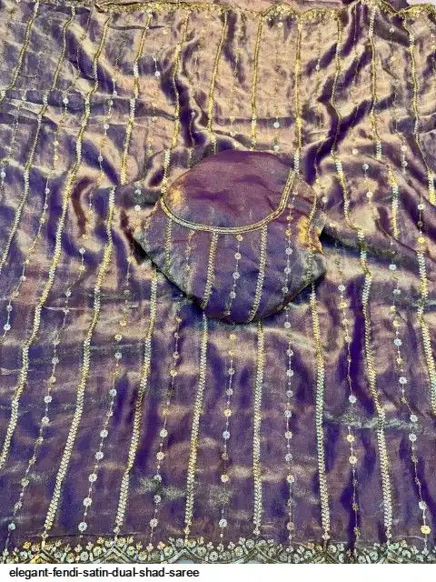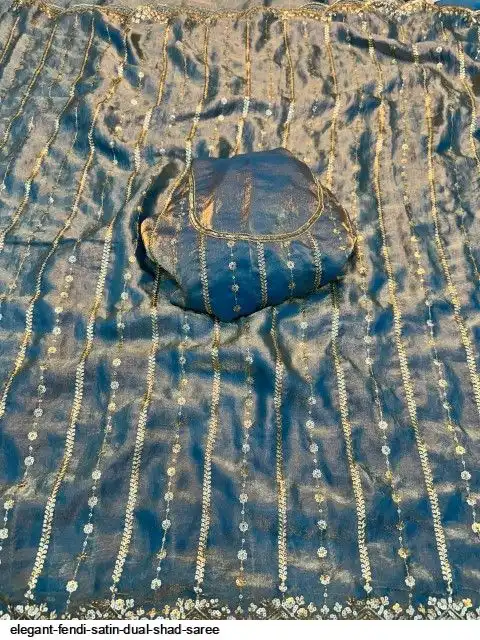 Fendy Sattin Dual Shad Saree Multi Sequence Emrodairy Work With Running Blouse