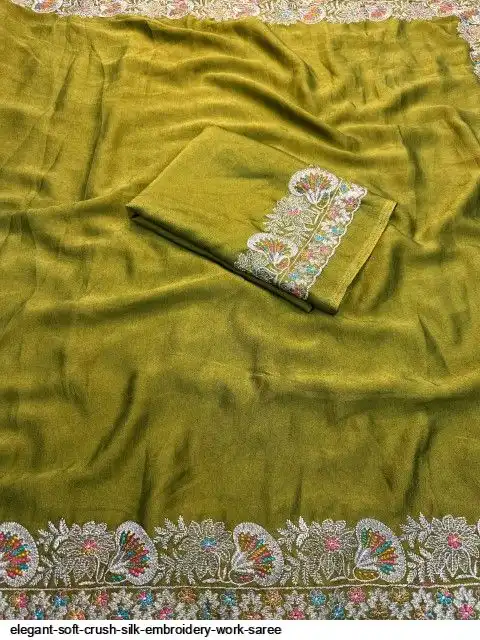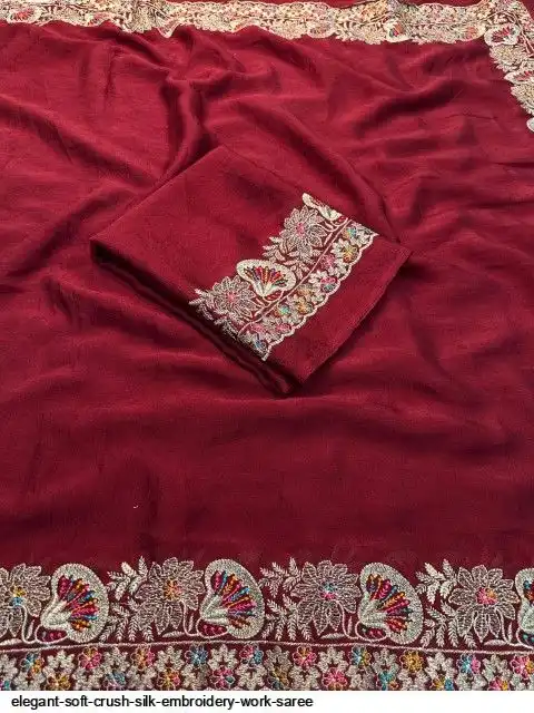 Fabric :- Soft Crush Silk Fabric Saree With Fancy Sequince & Thread Embroderiy Work All Over dhaga work & Pallu With Fancy Embroderiy Work Blouse