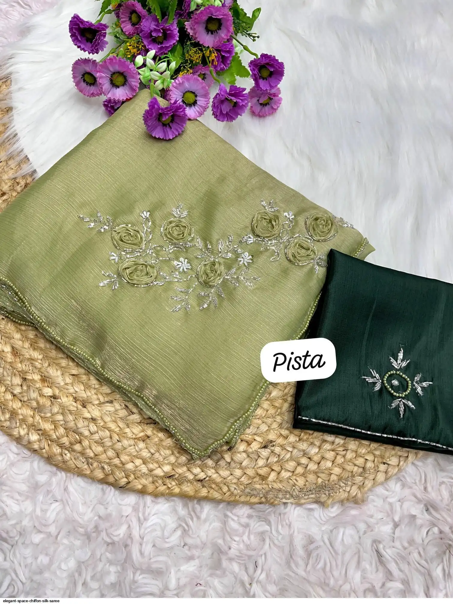 space chiffon silk saree cover with handwork all over and silk blouse with handwork