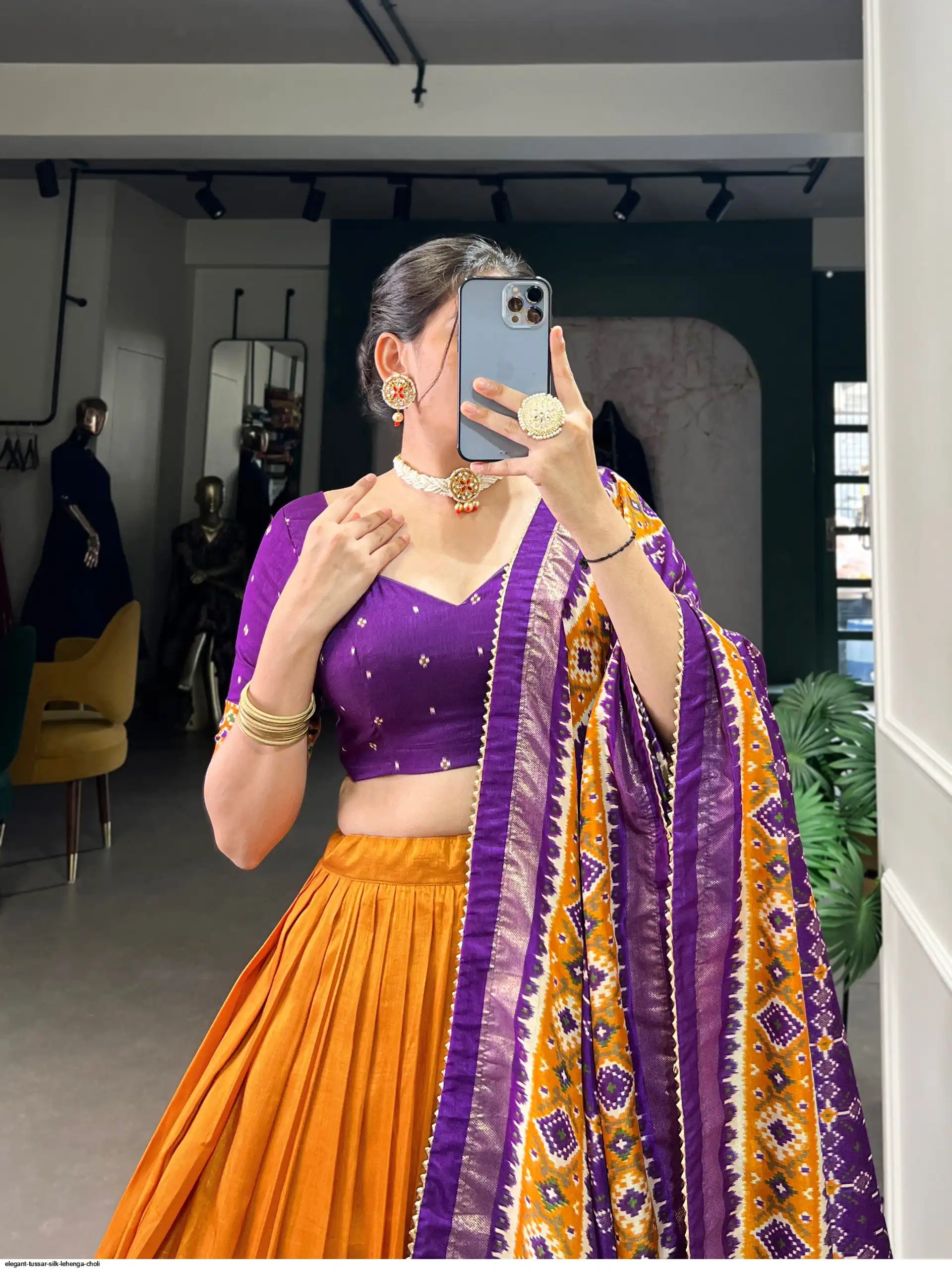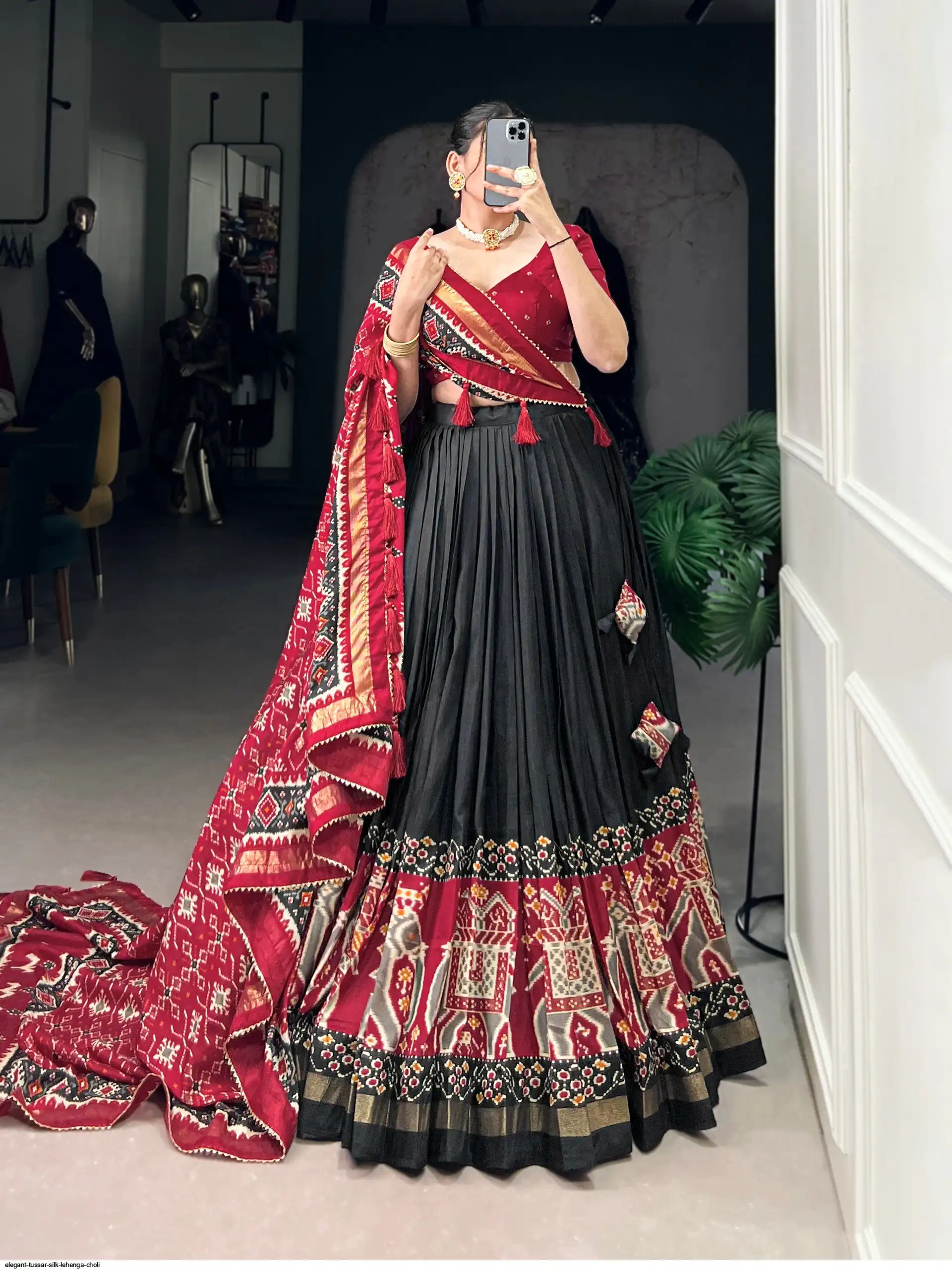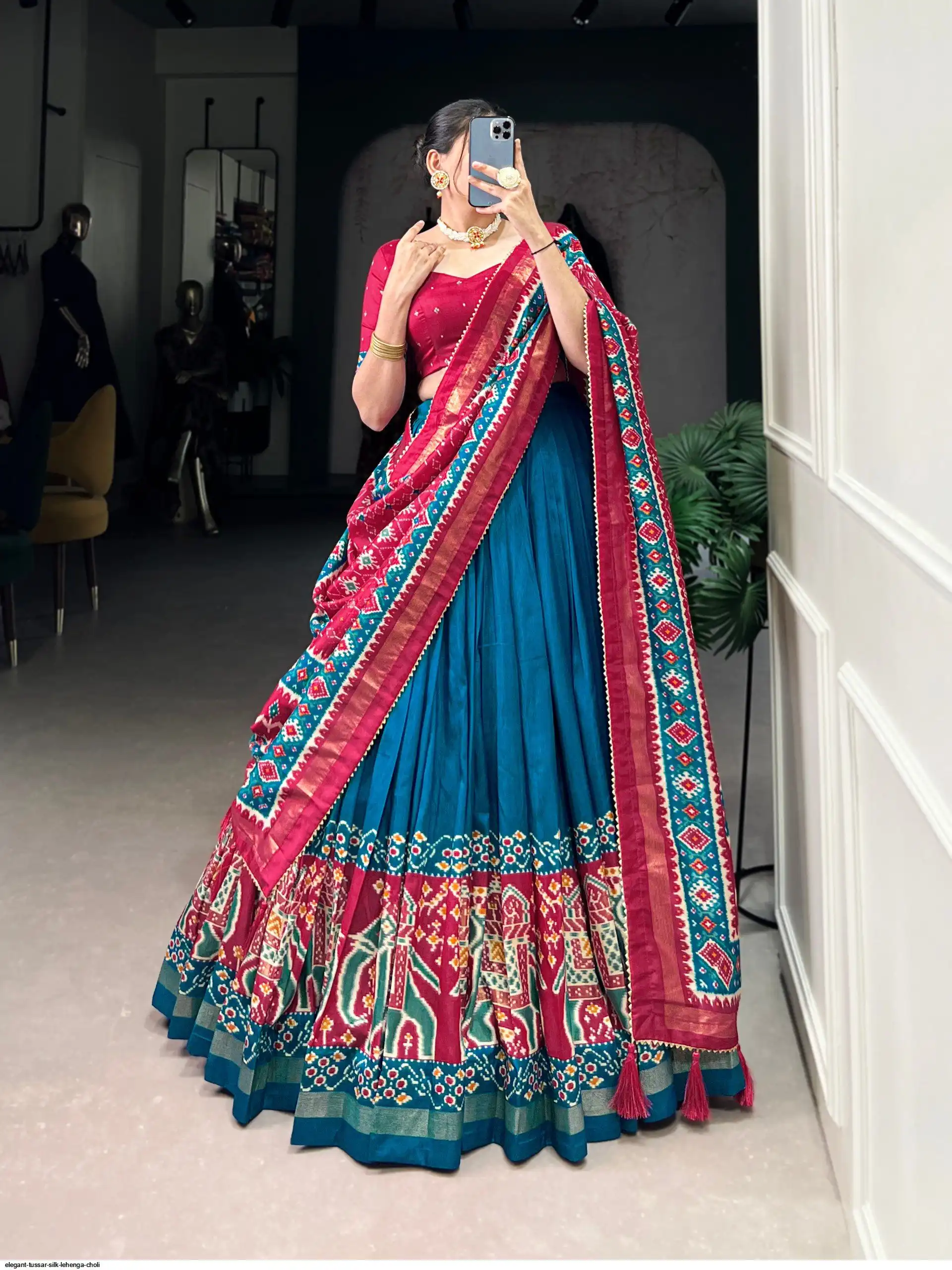 Dupatta work : Patola Print With Gotta Patti Lace Border also comes with tassels