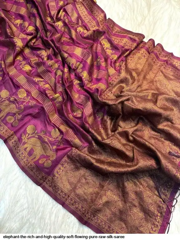 ELEPHANT THE RICH AND HIGH QUALITY SOFT FLOWING PURE RAW SILK SAREE D