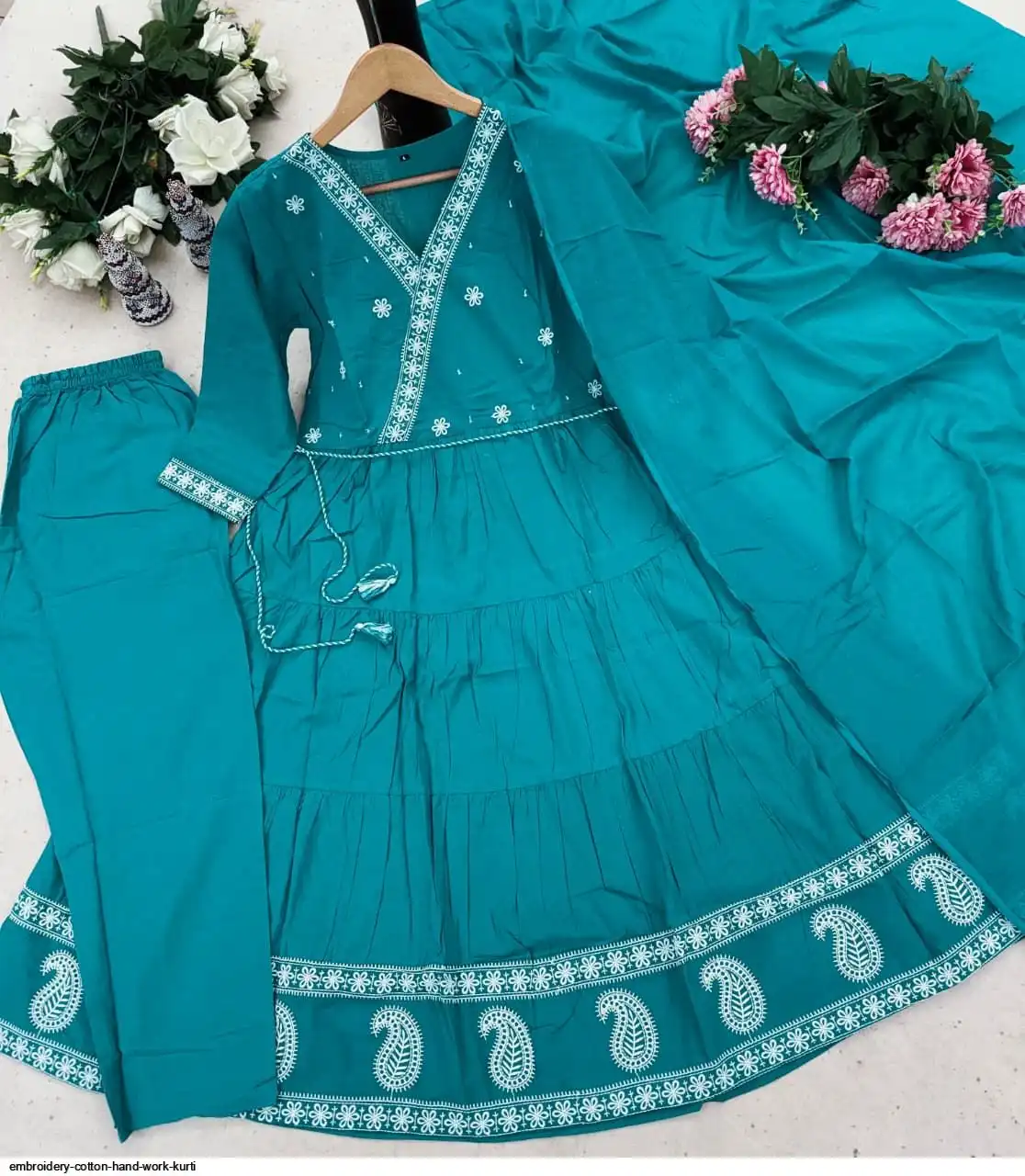 his Kurti,pant& dupatta set is perfect for the summer season with its vibrant floral print and confident . Plus, the included matching dupatta completes the look and adds an extra touch of style.