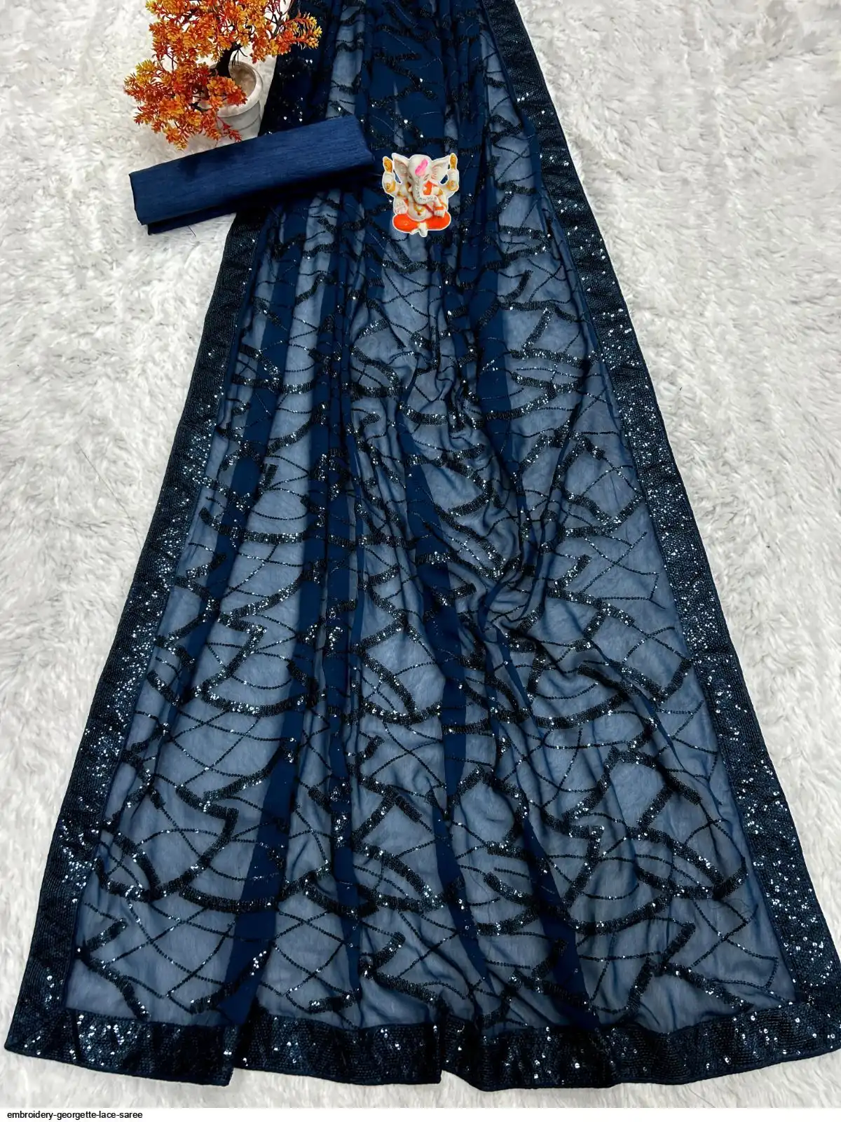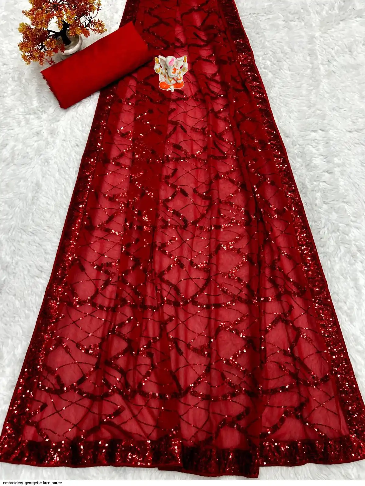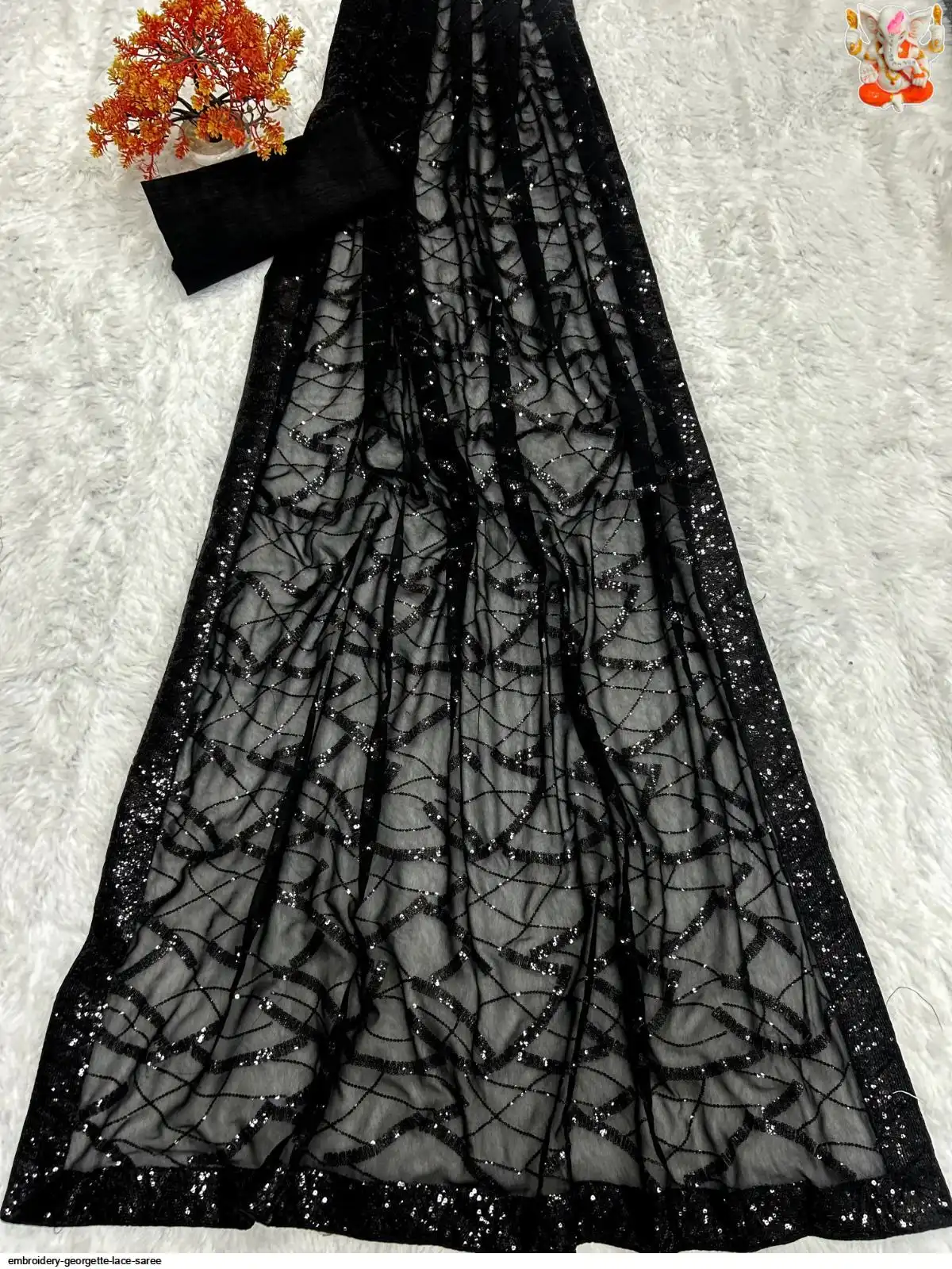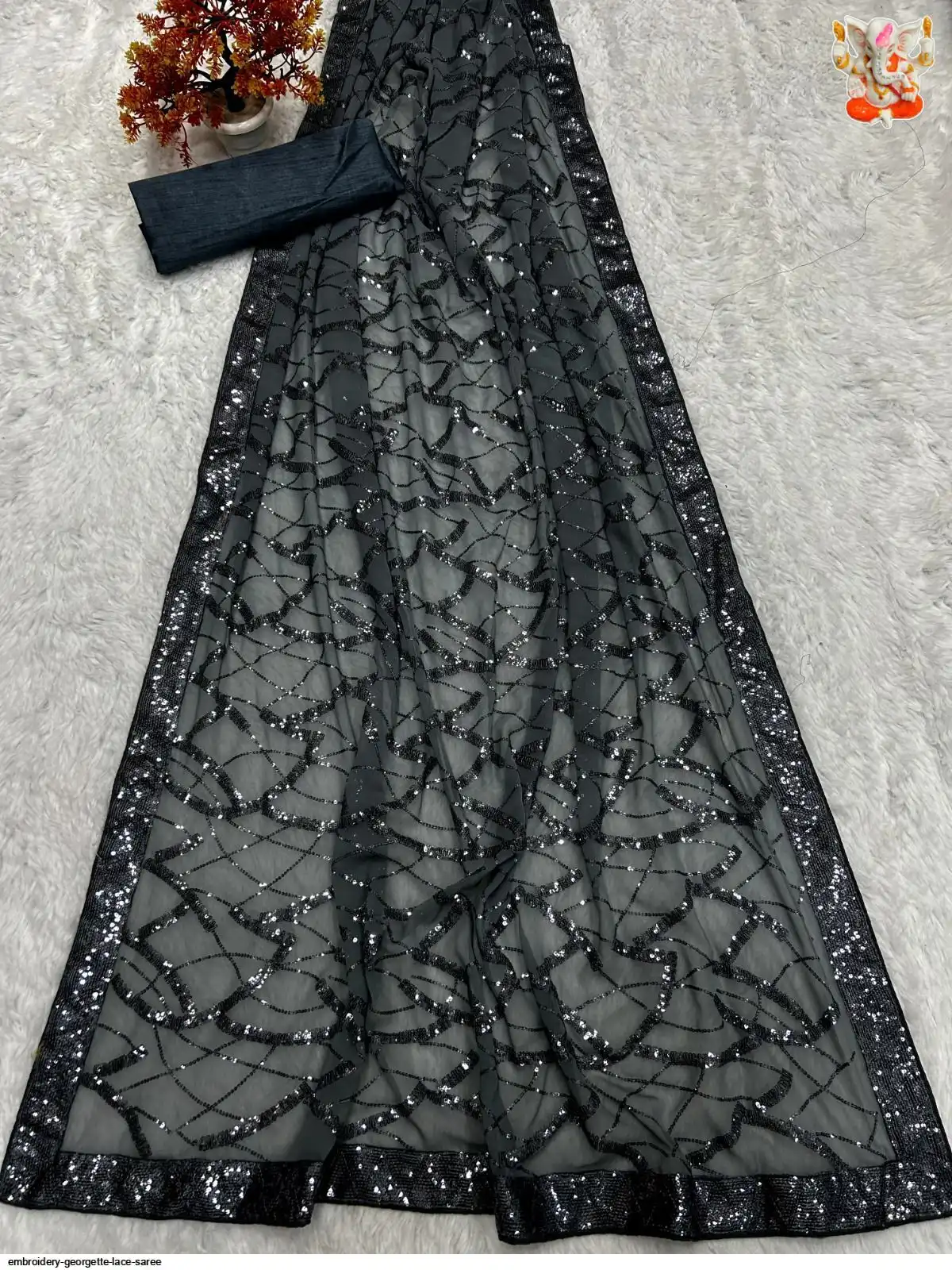 SAREE WORK- Embroidery Seqwance work lace with piping