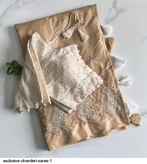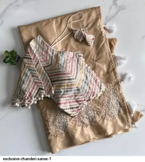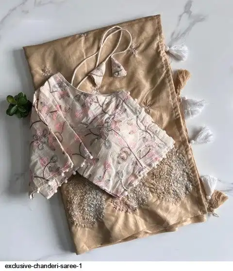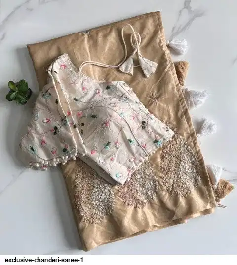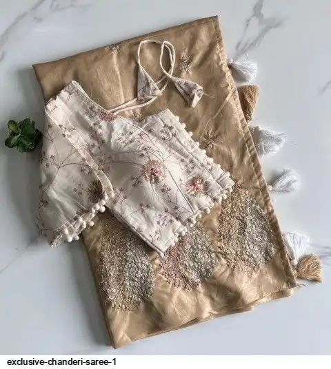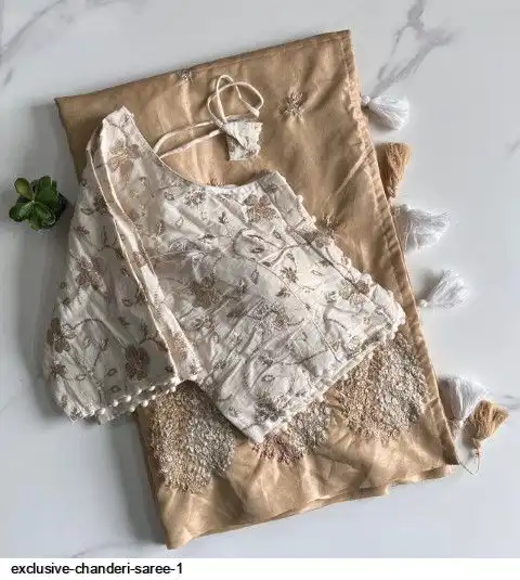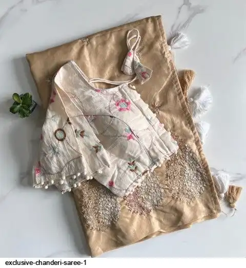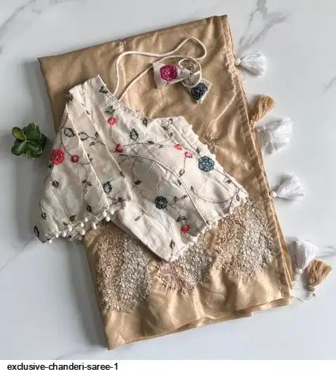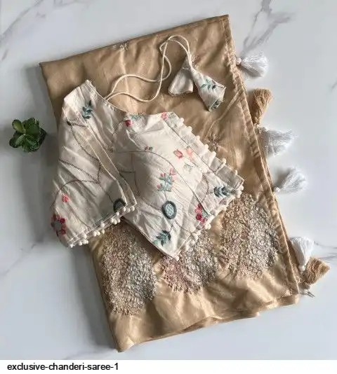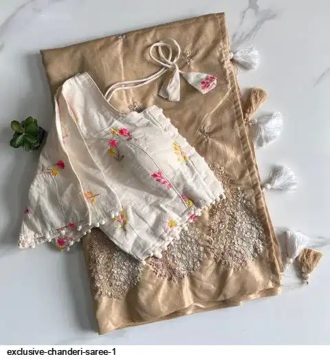 Teamed with pure khadhi cotton embroidary work stitched blouse piece(Free Size upto 42)