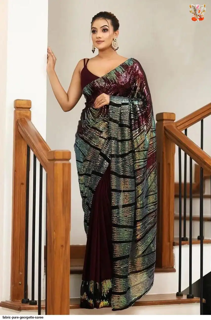 Classic and elegant, this saree will be a perfect addition to your ethnic wardrobe, offering a soothing and pretty wibe the adornment of seqwance work makes it impeccable