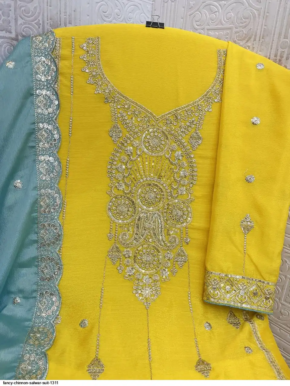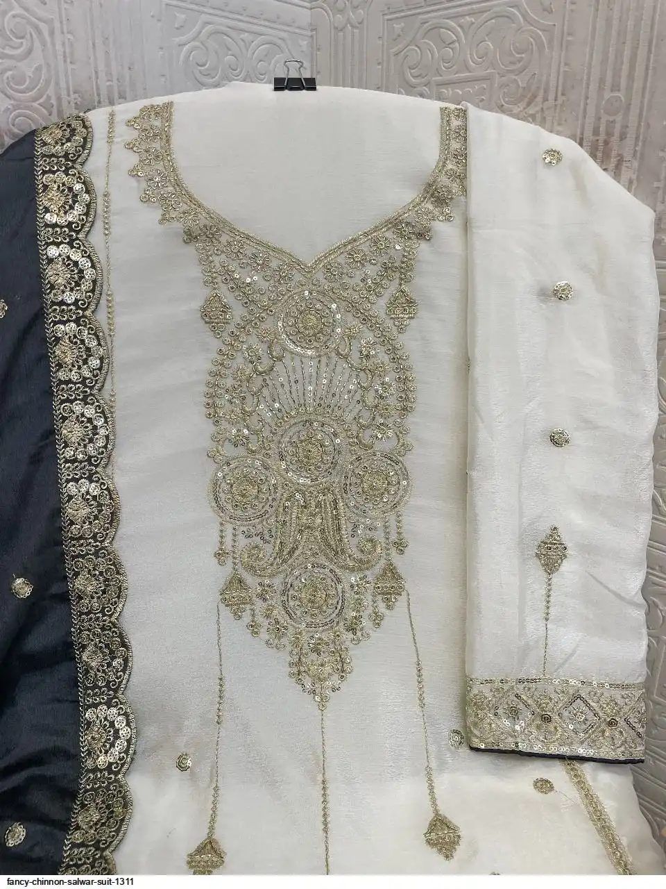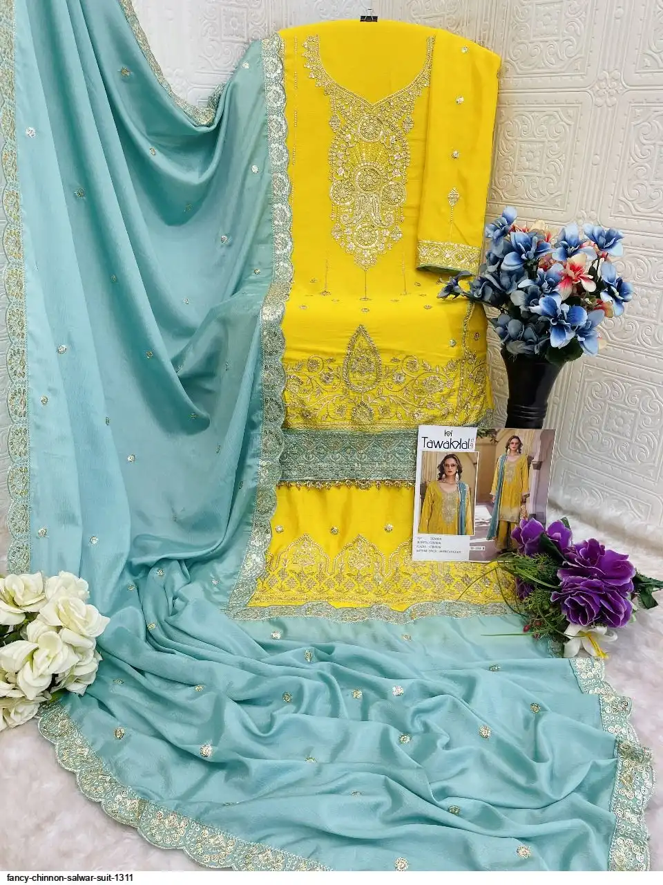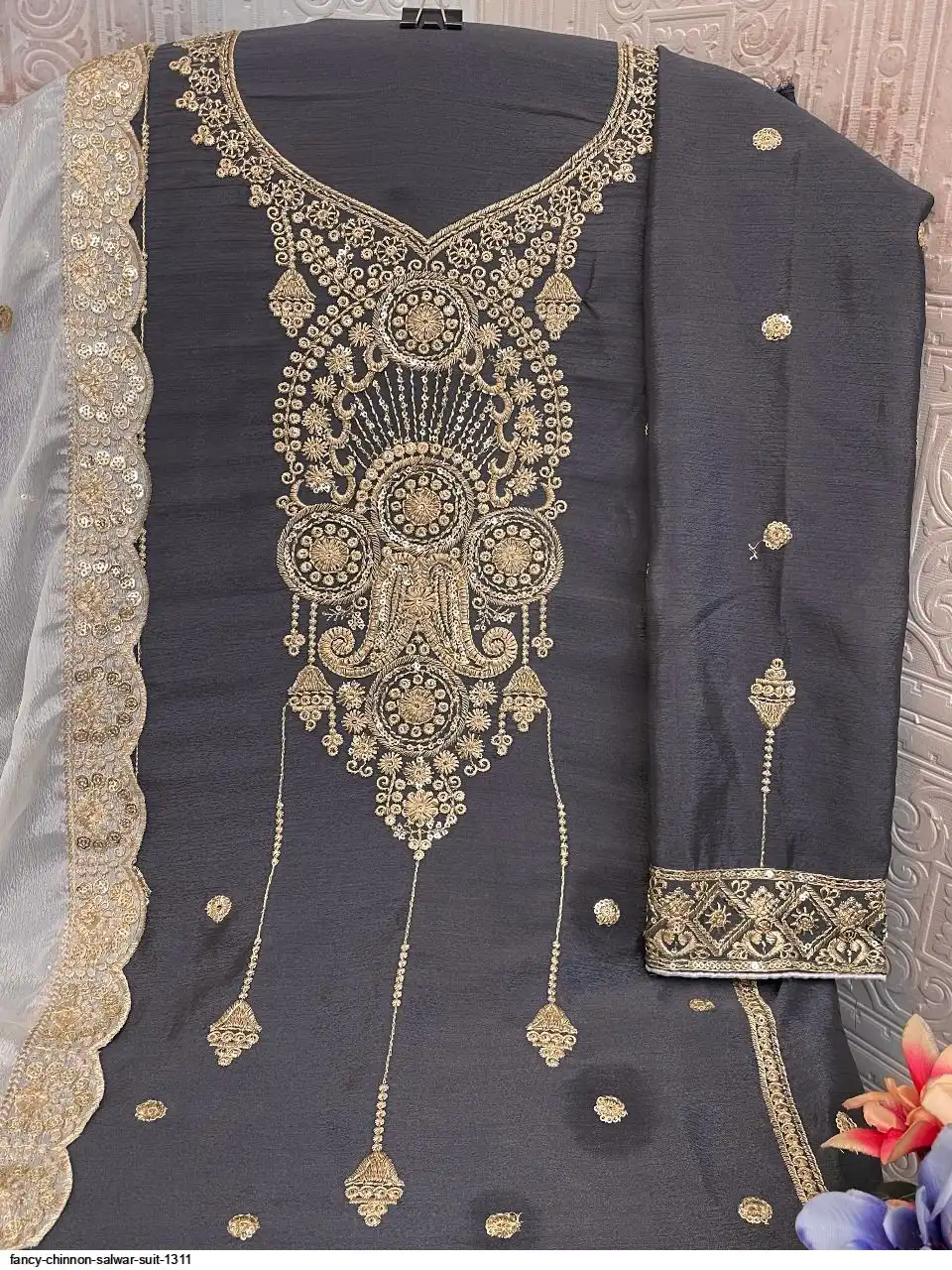 TOP:- HEAVY CHINNON with Embroidery Bits work
