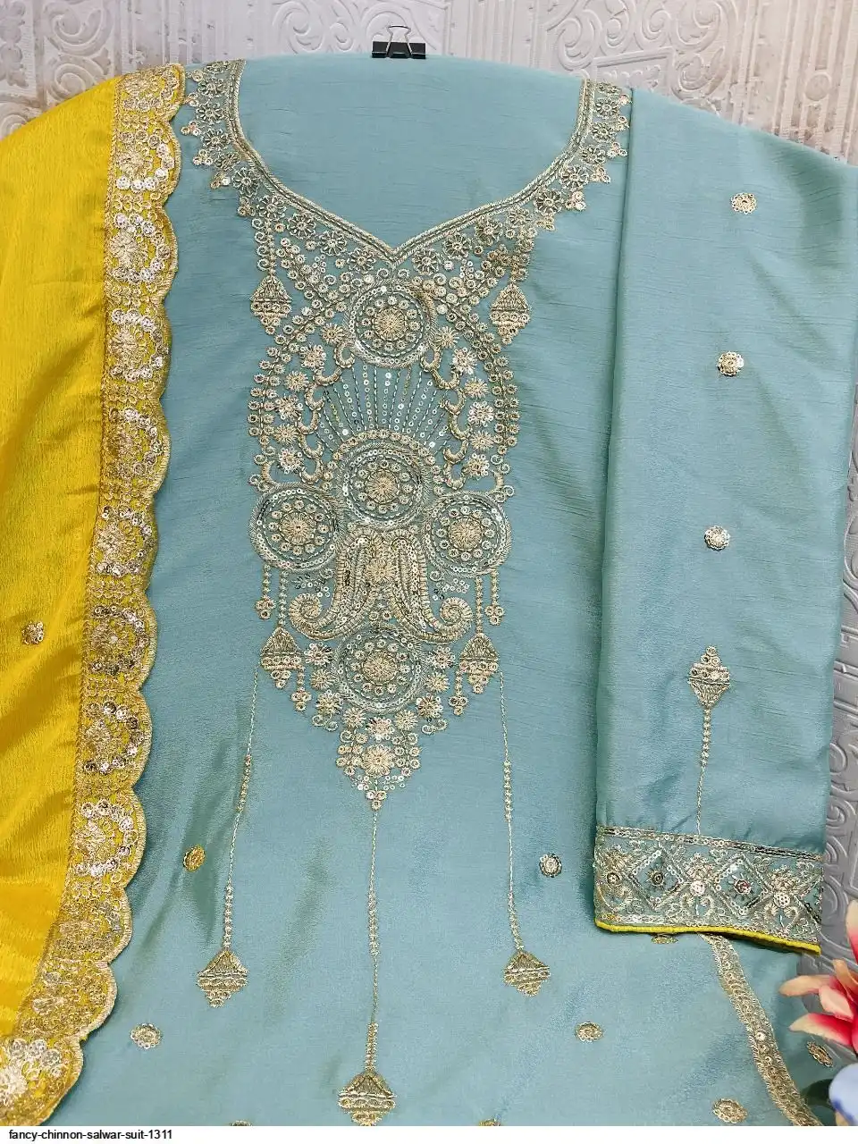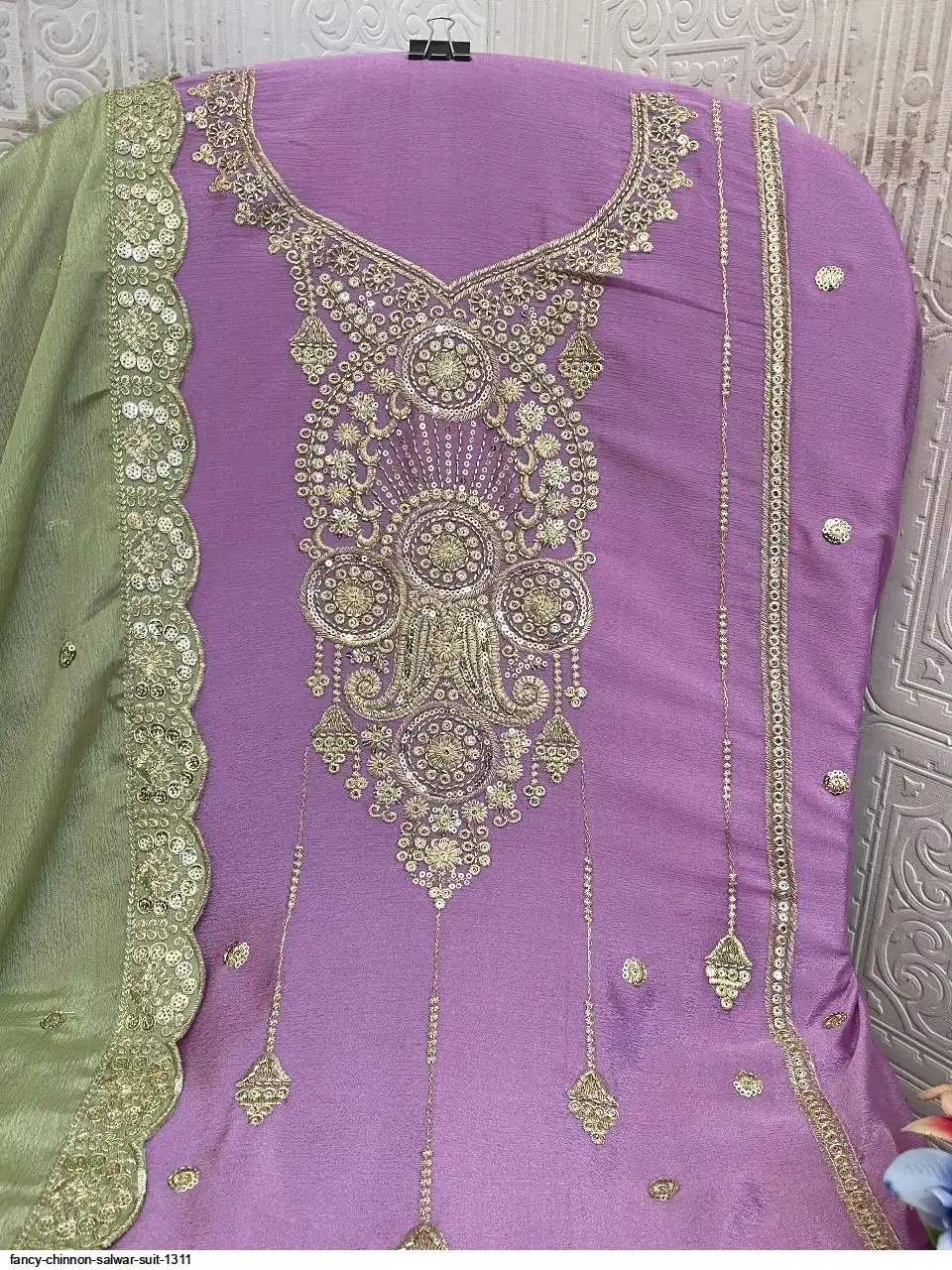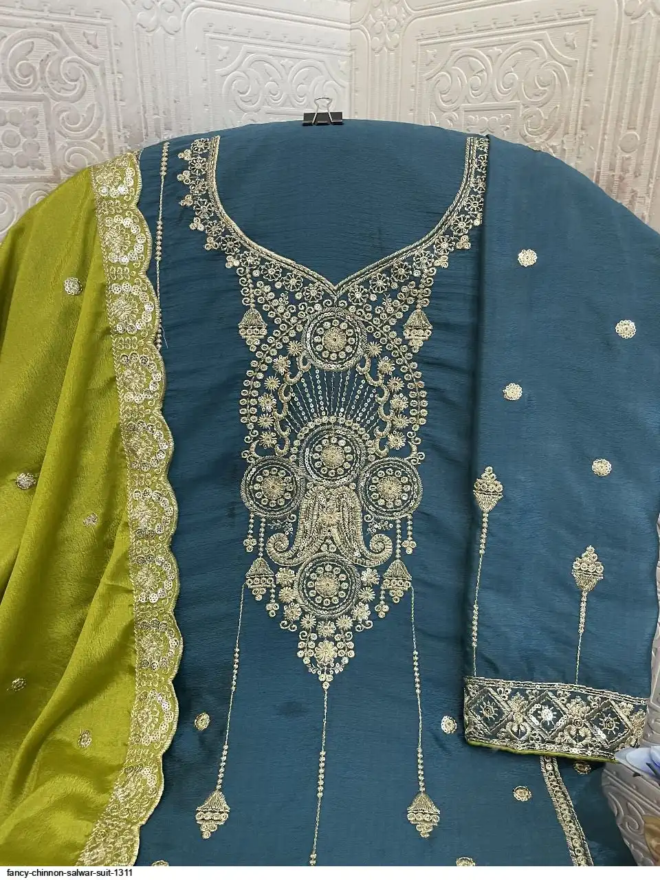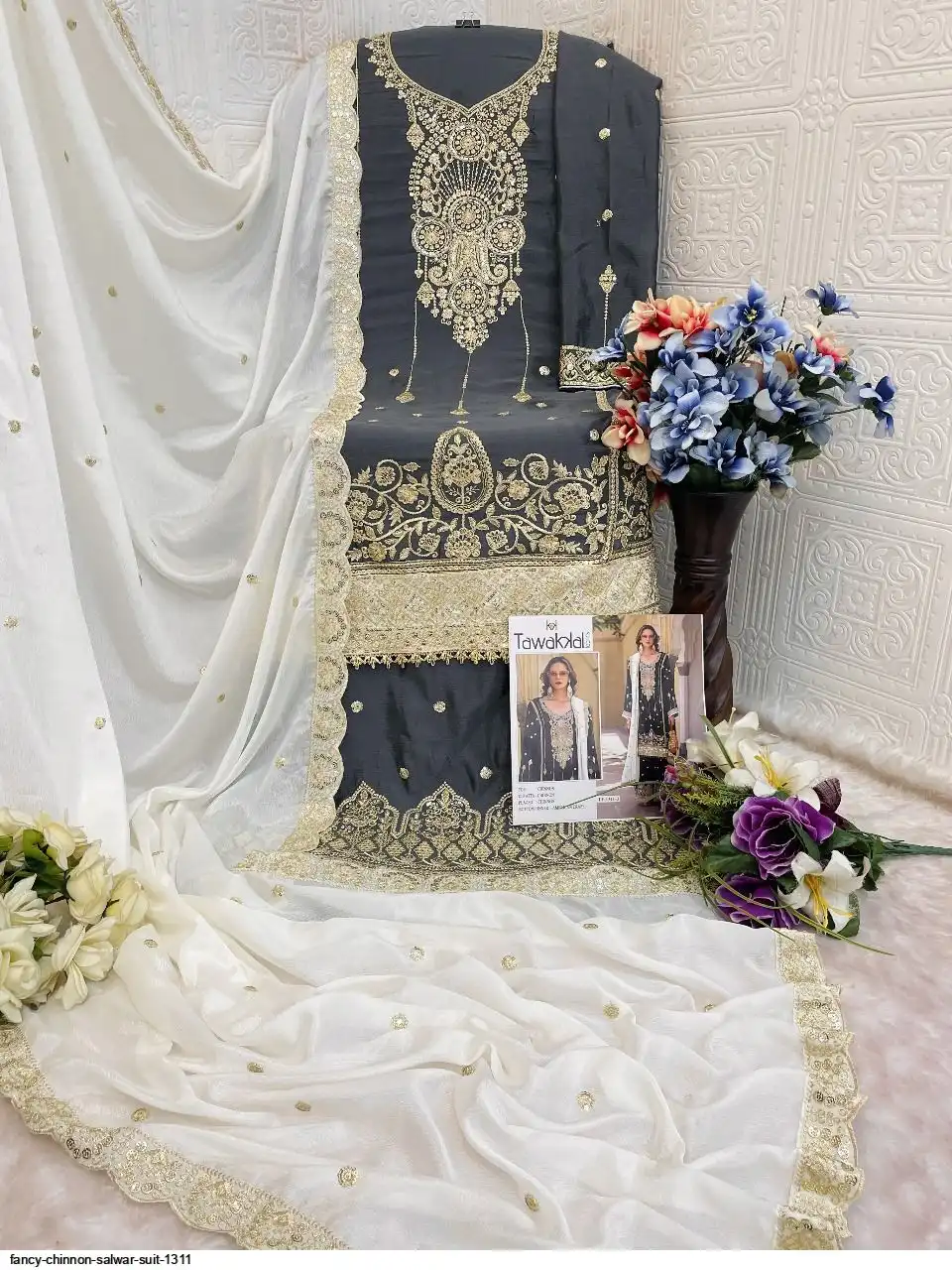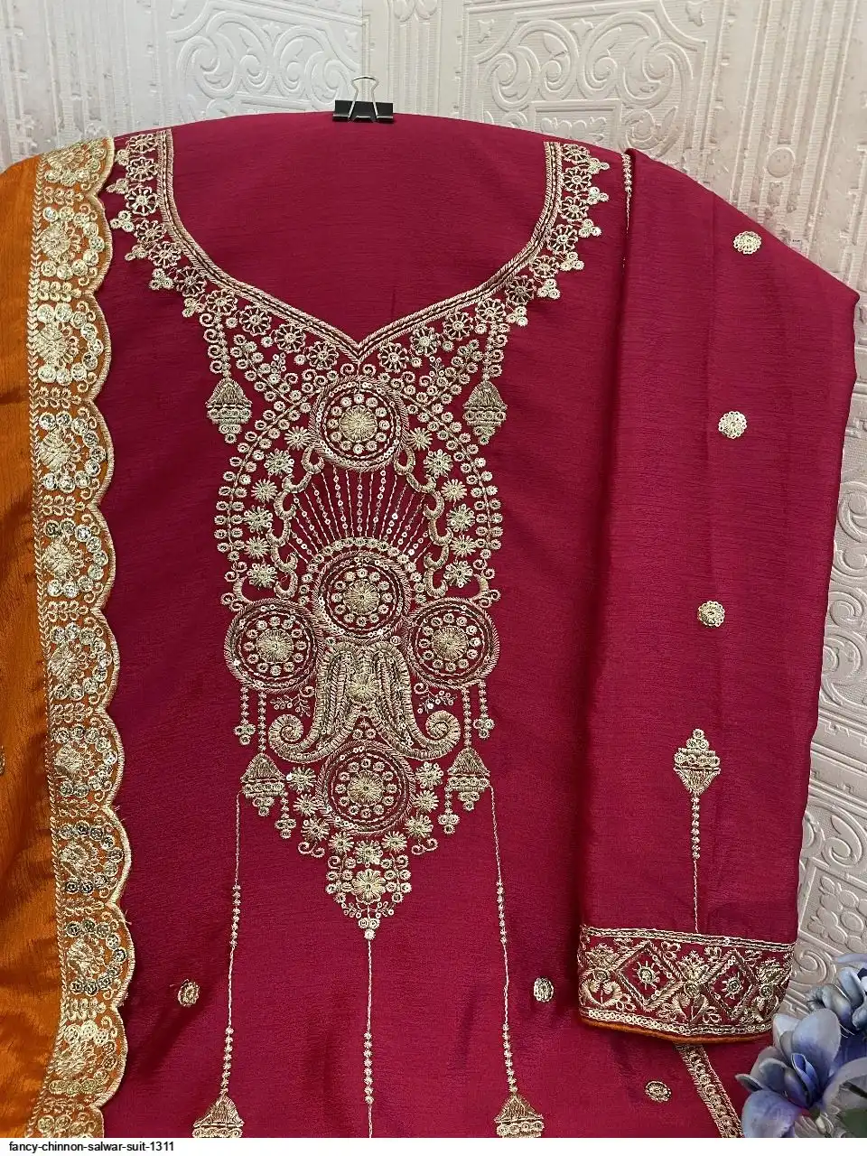 TOP:- HEAVY CHINNON with Embroidery Bits work