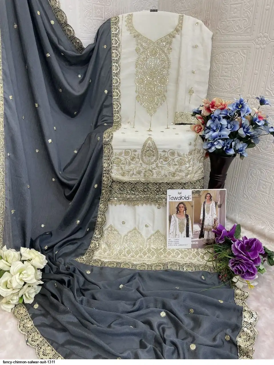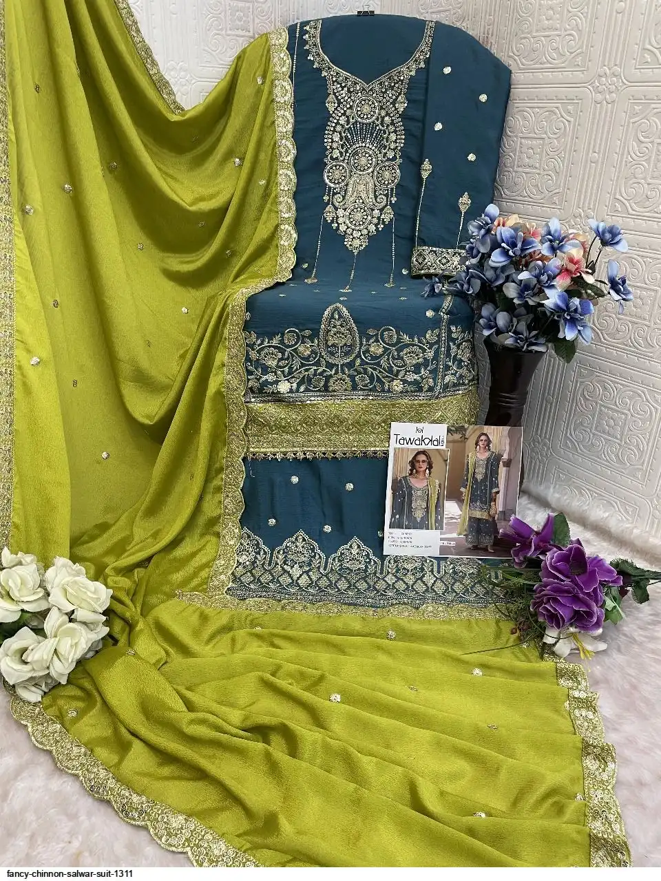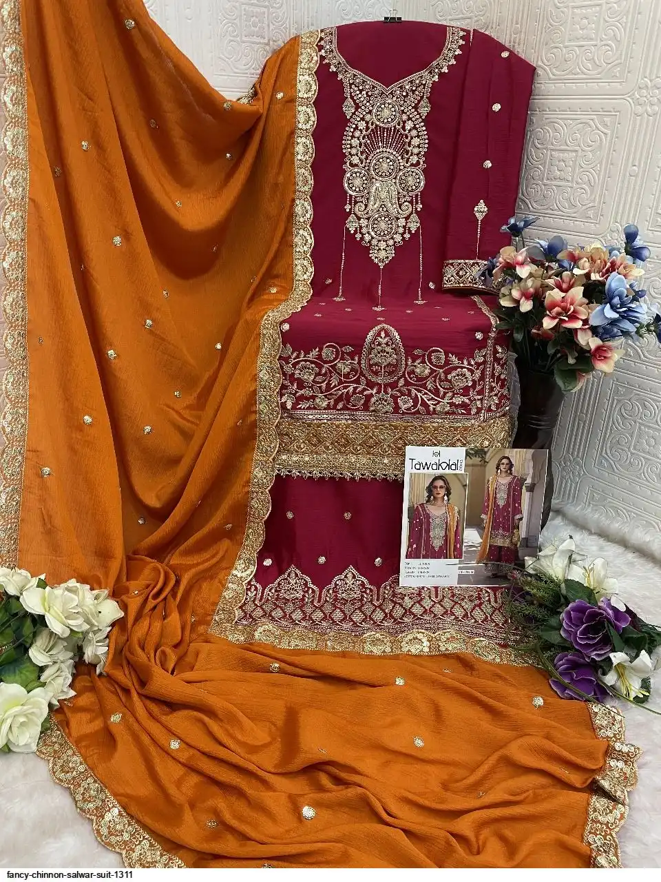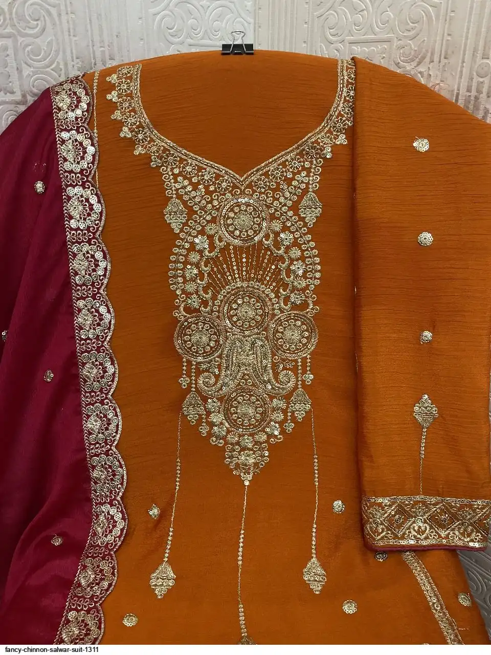 TOP:- HEAVY CHINNON with Embroidery Bits work