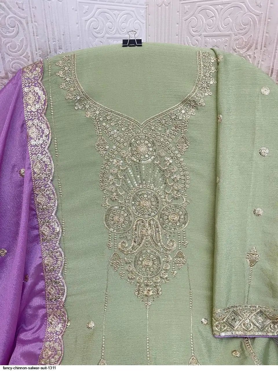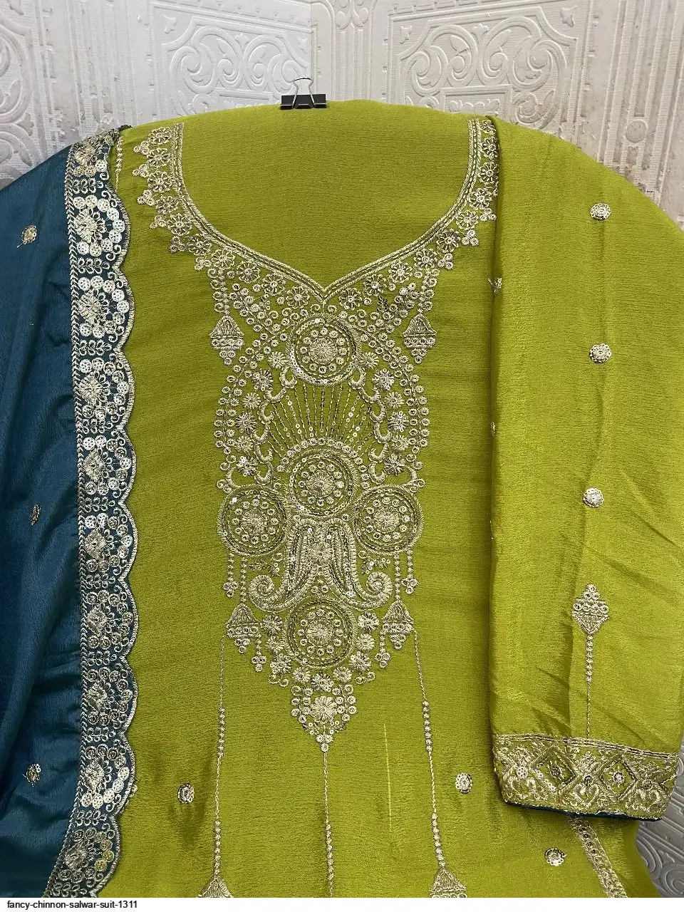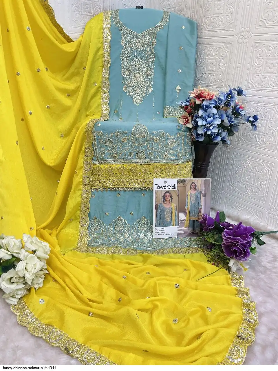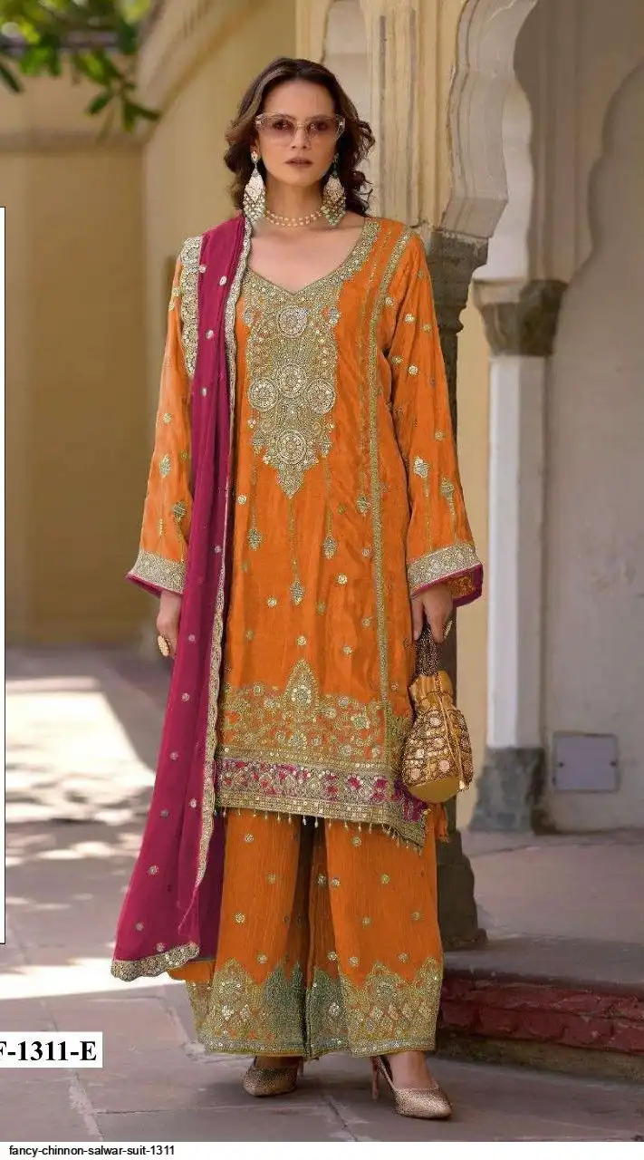 TOP:- HEAVY CHINNON with Embroidery Bits work