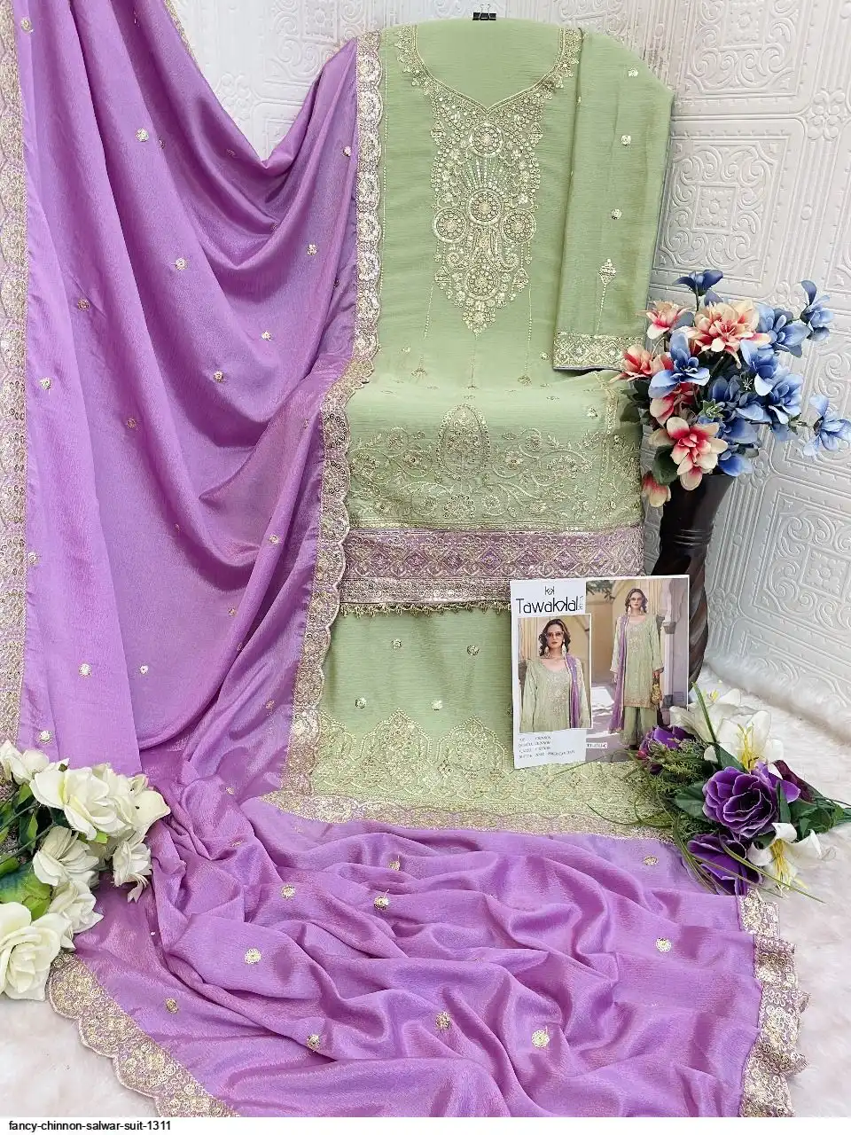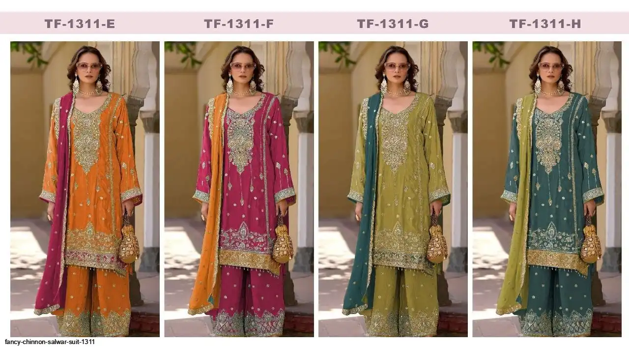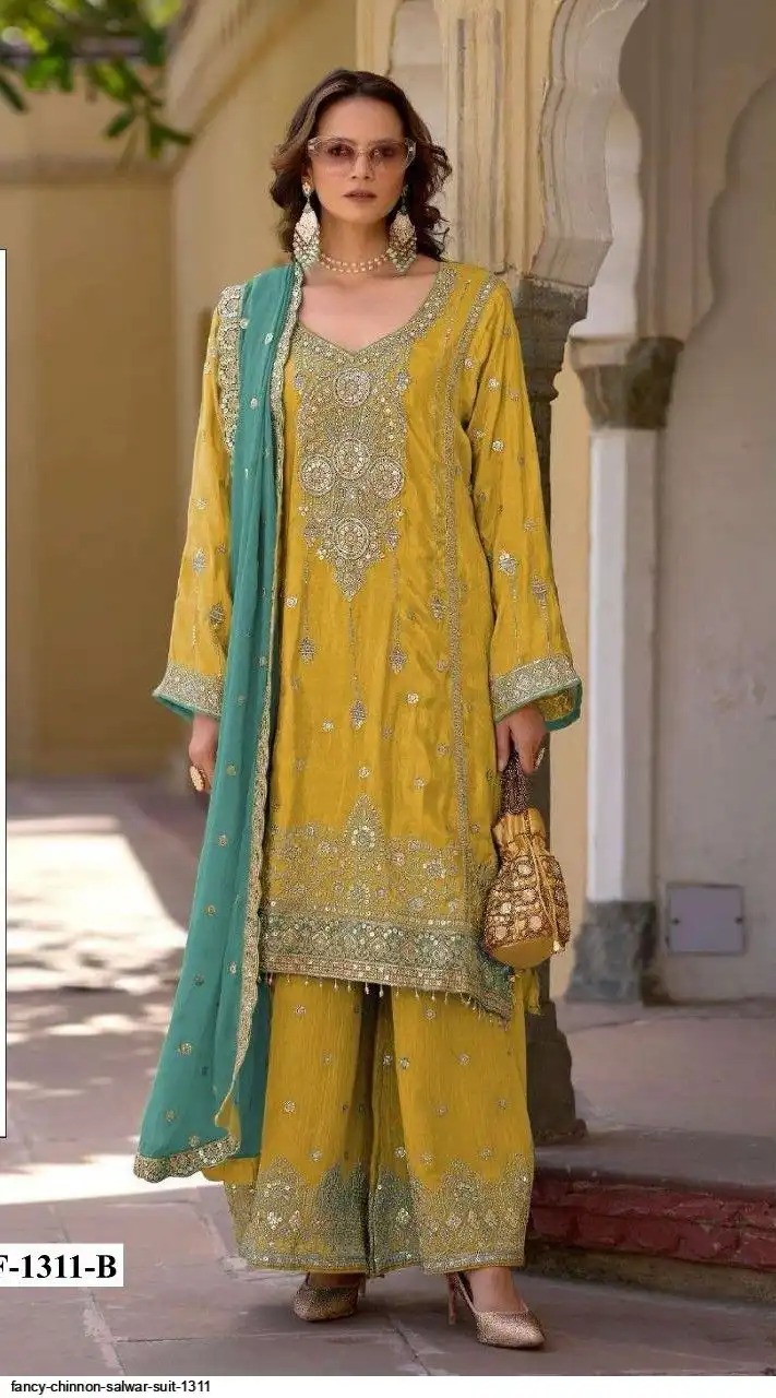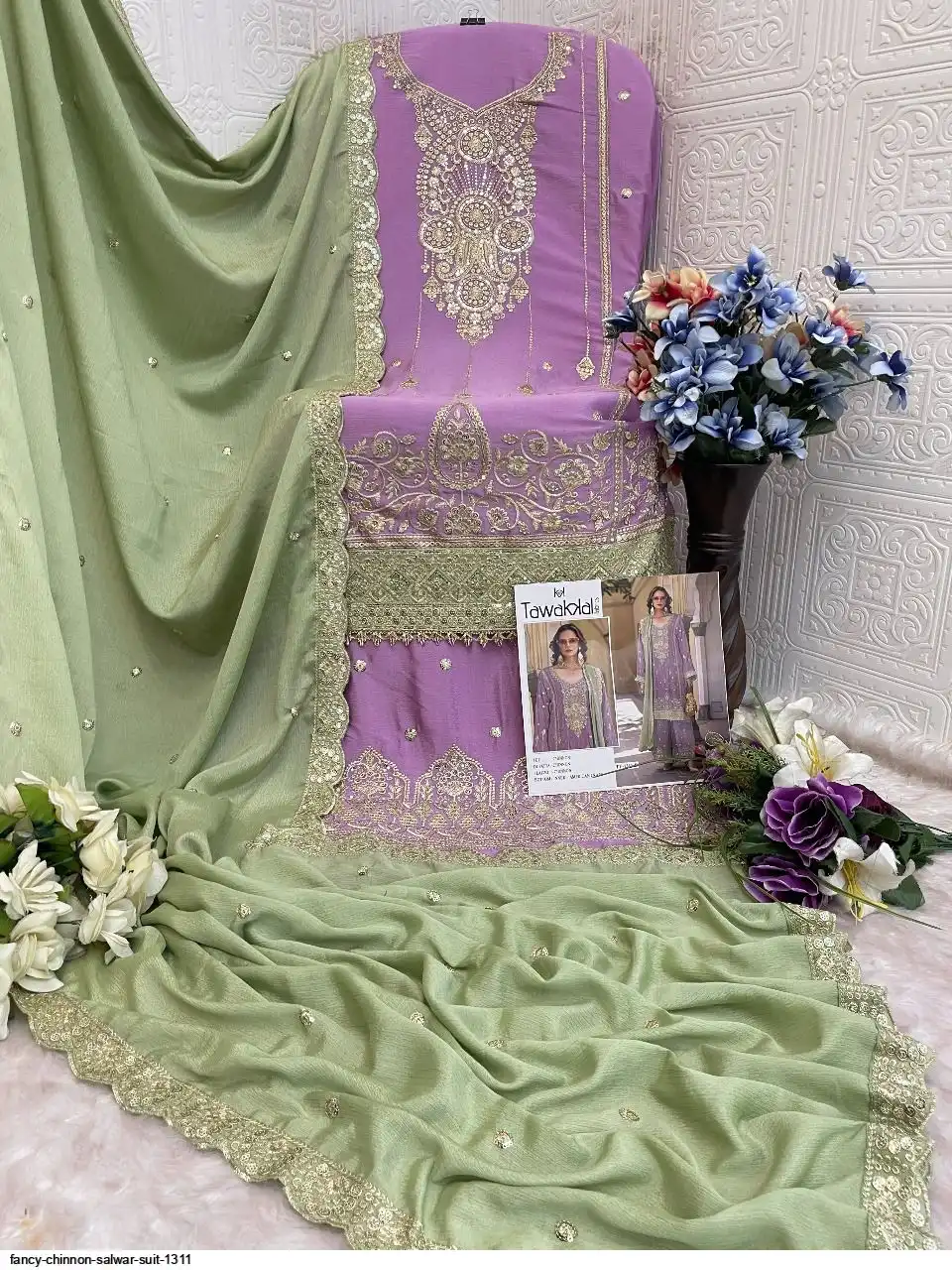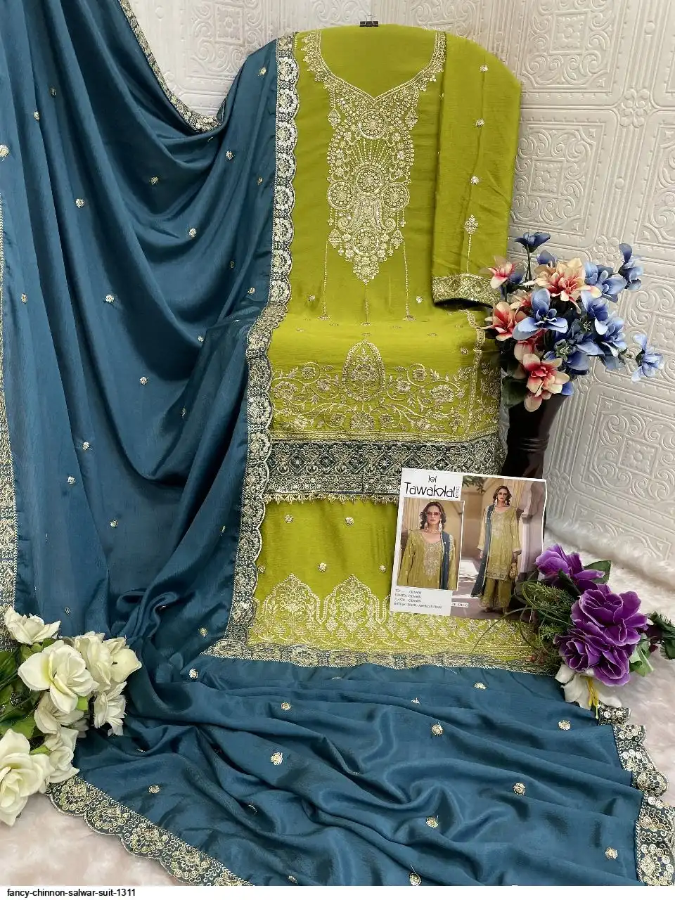 TOP:- HEAVY CHINNON with Embroidery Bits work