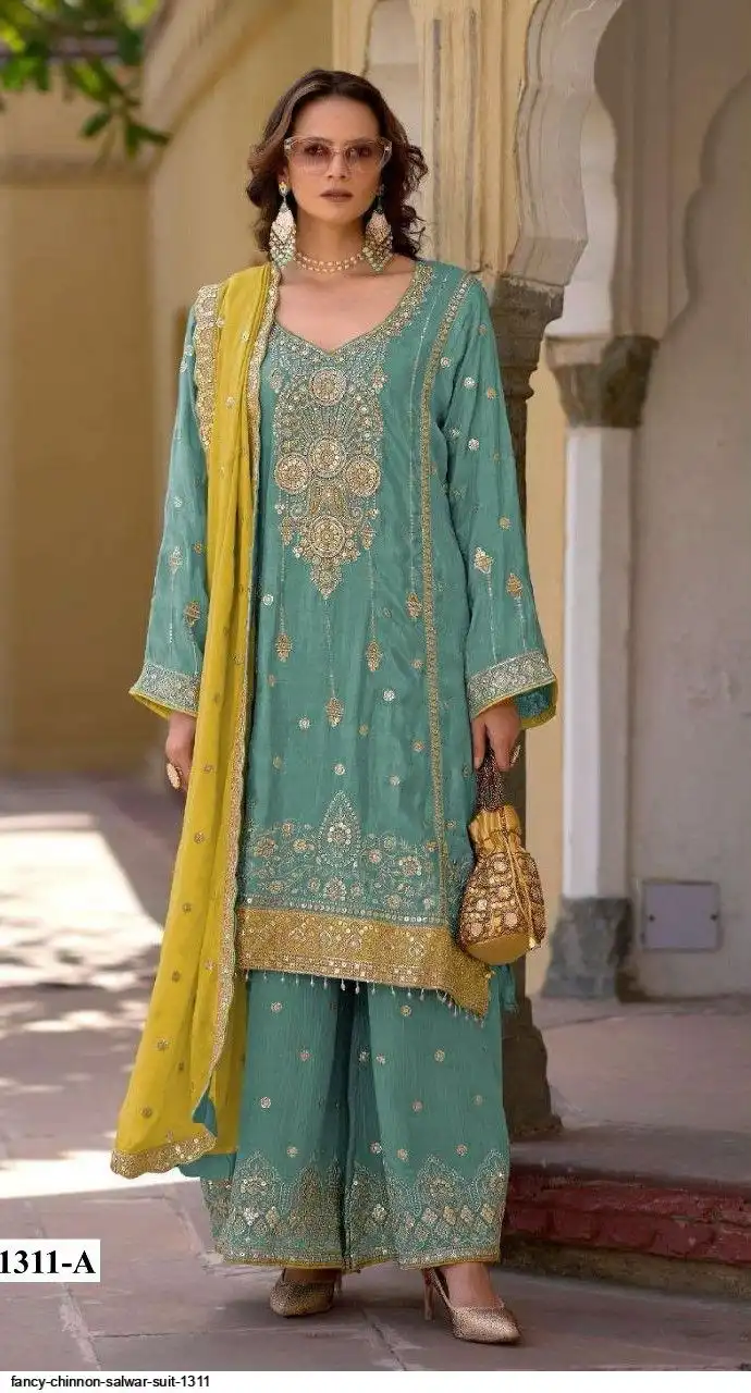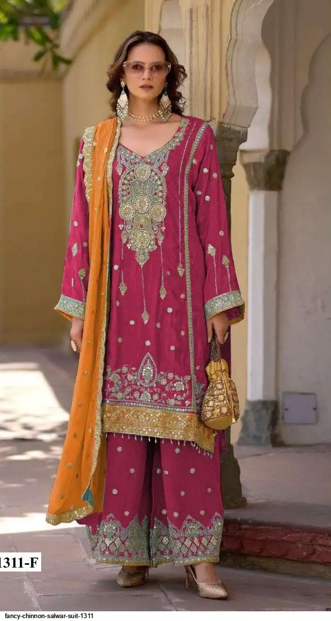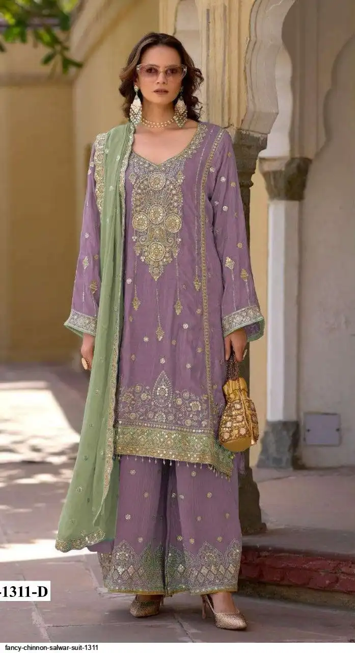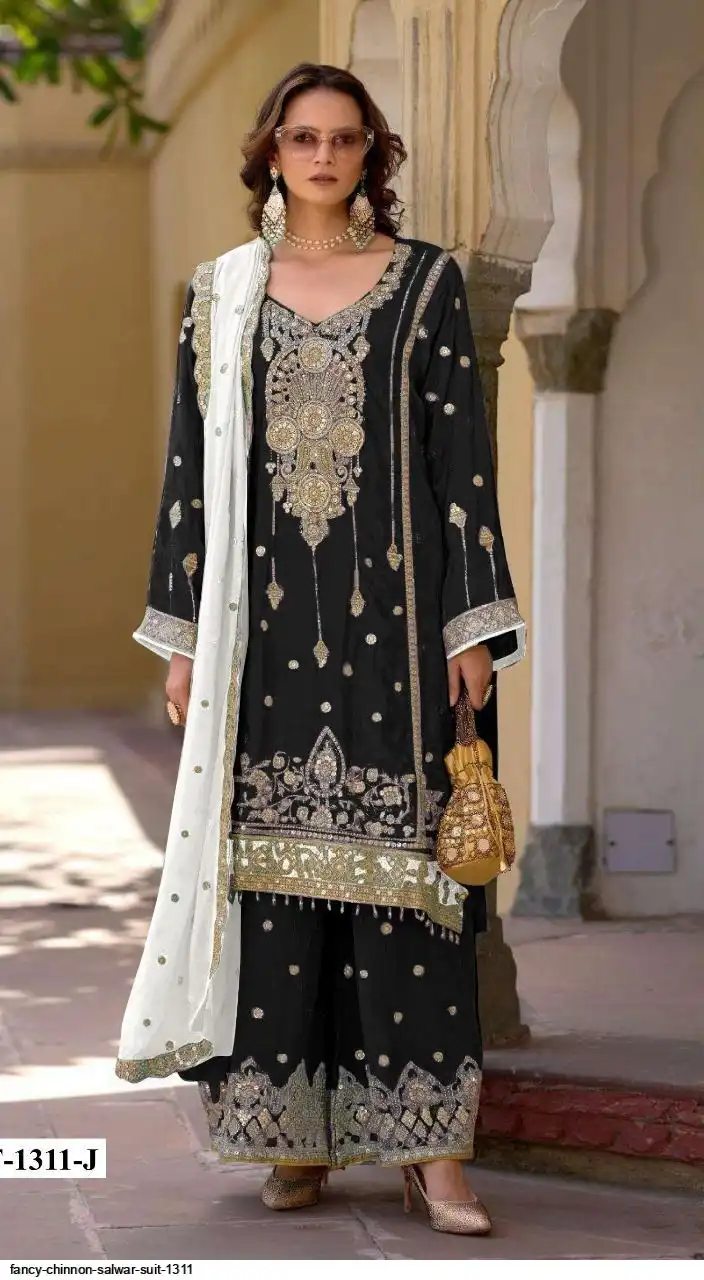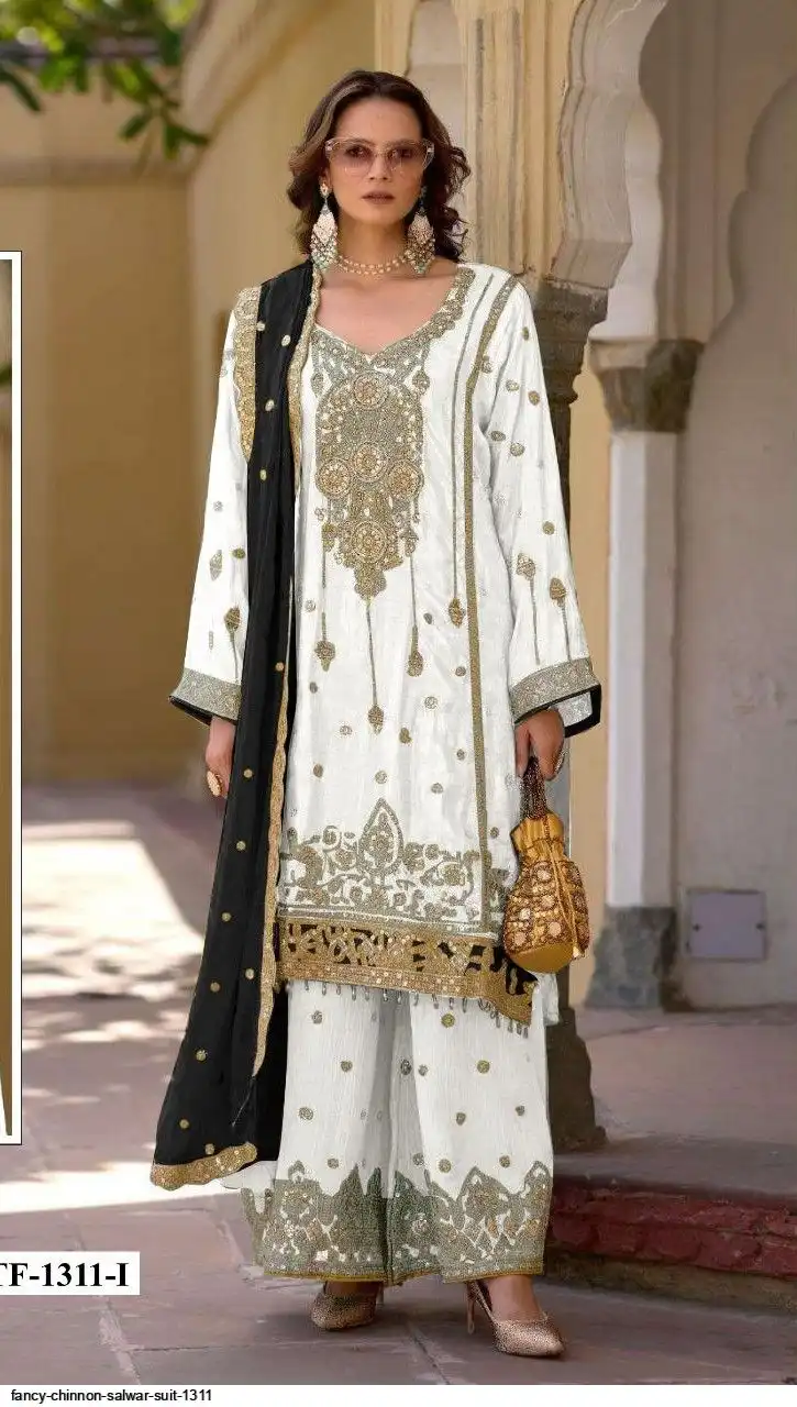 PLAZZO :- HEAVY CHINNON with Embroidery Bits Work (2.20 mtr)