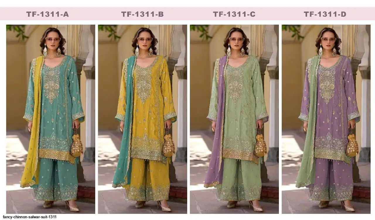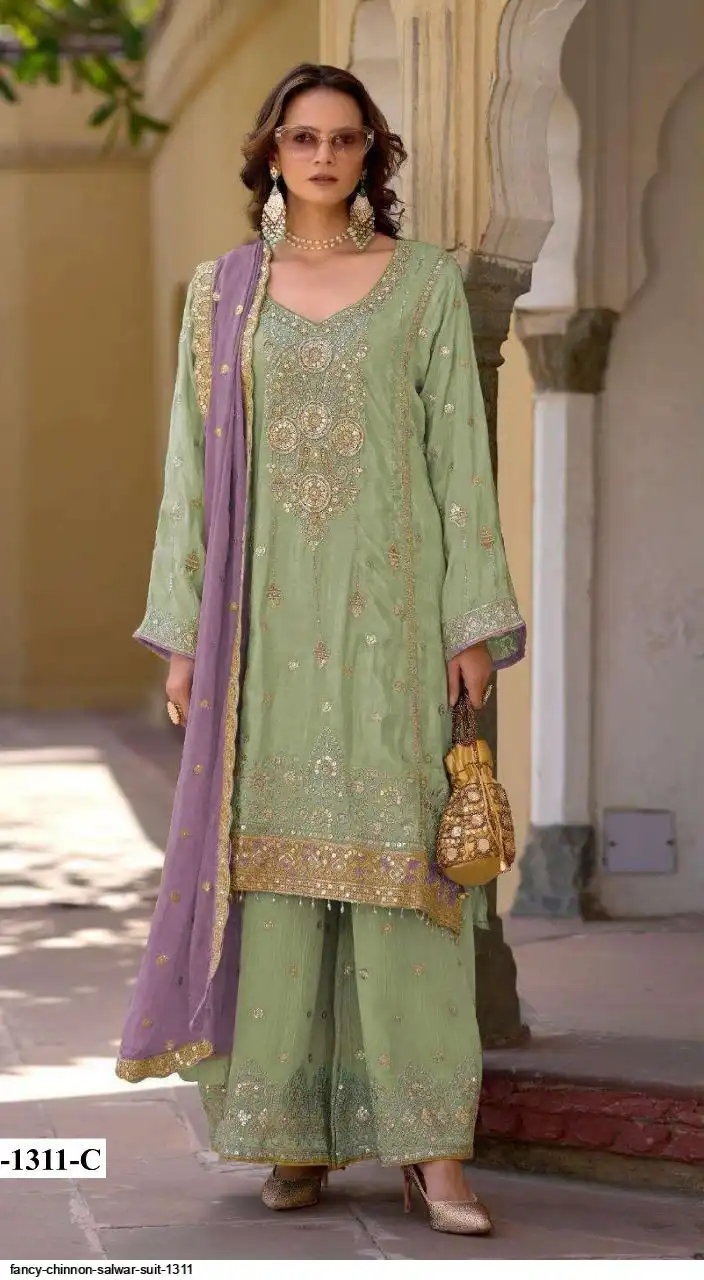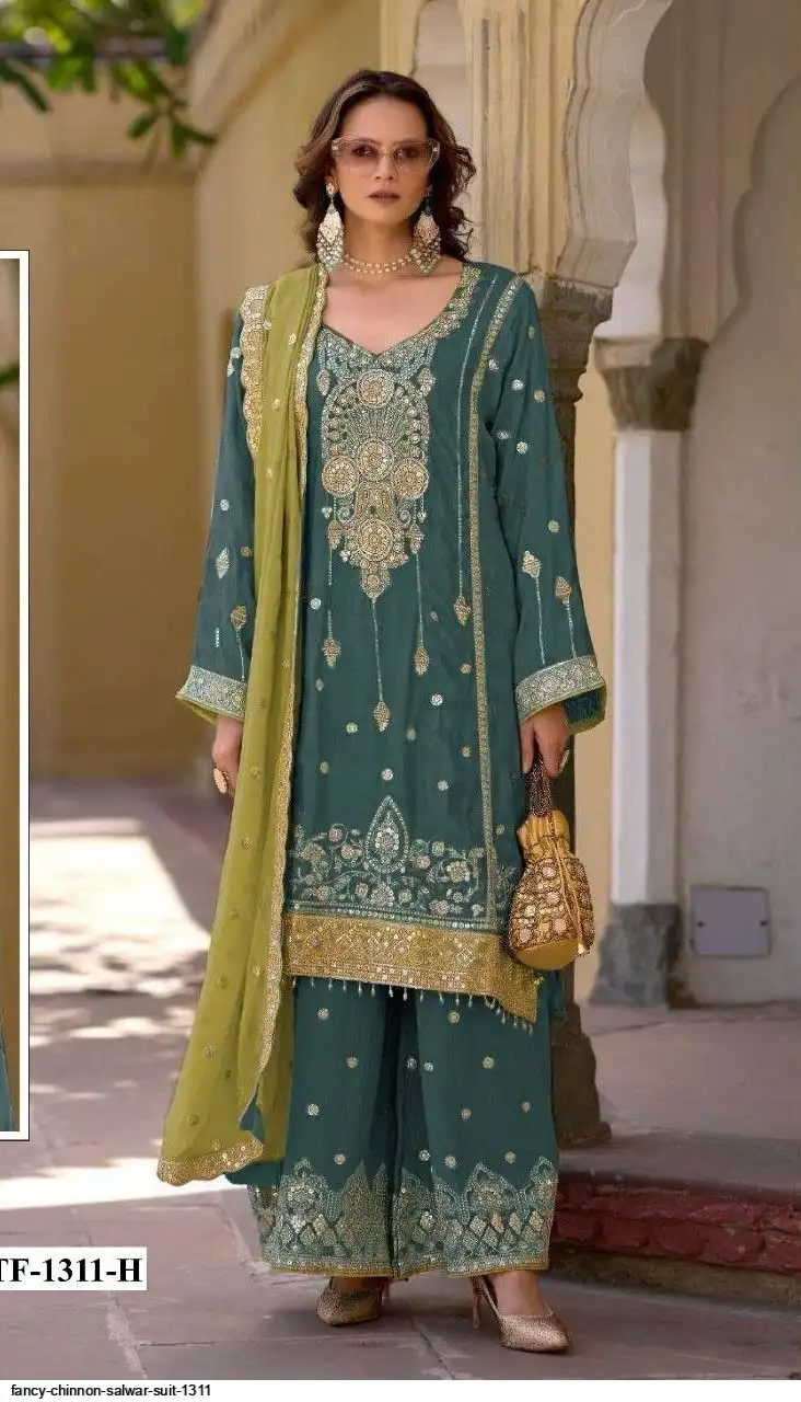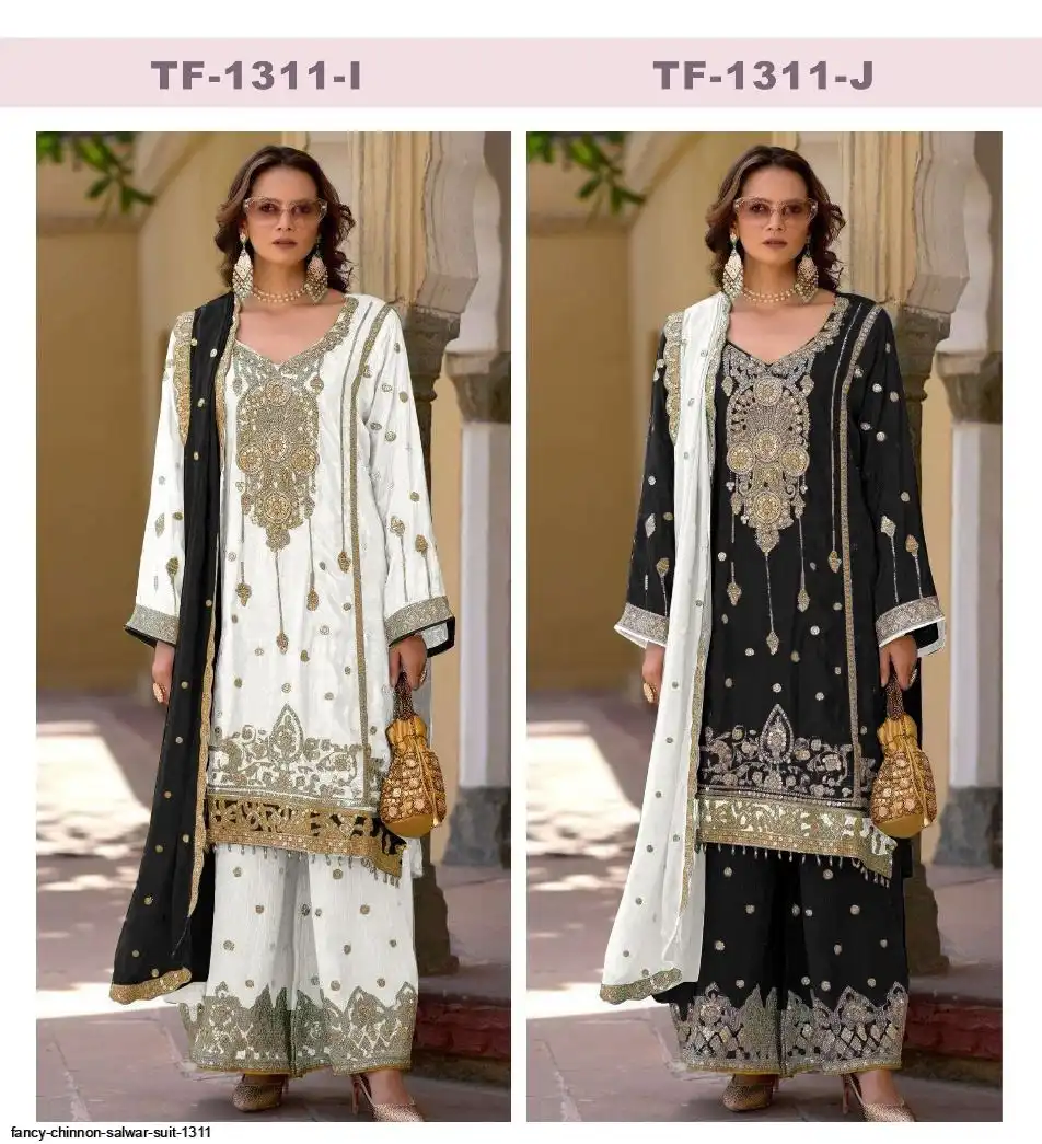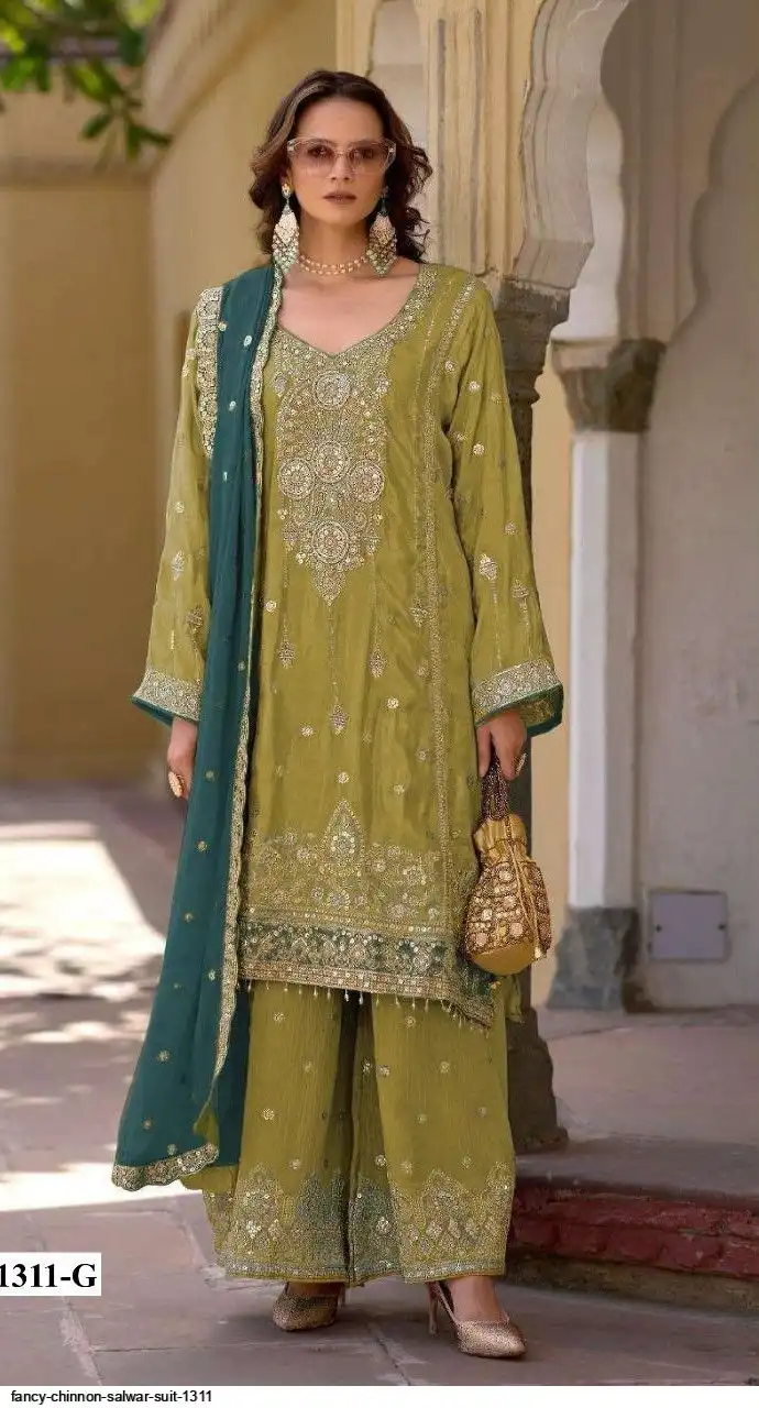 PLAZZO :- HEAVY CHINNON with Embroidery Bits Work (2.20 mtr)