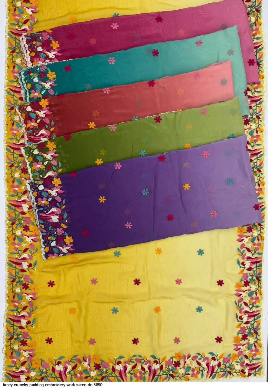 Work : Fancy Multicoloured Thread Embroidery Work With Cut Work Border.