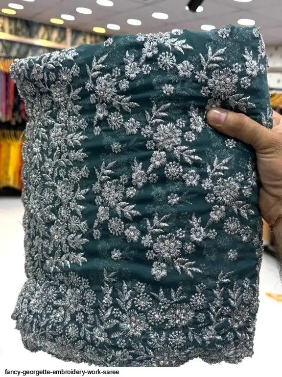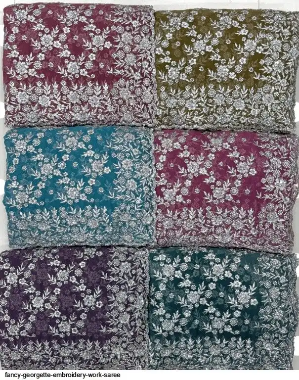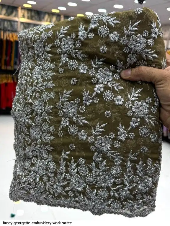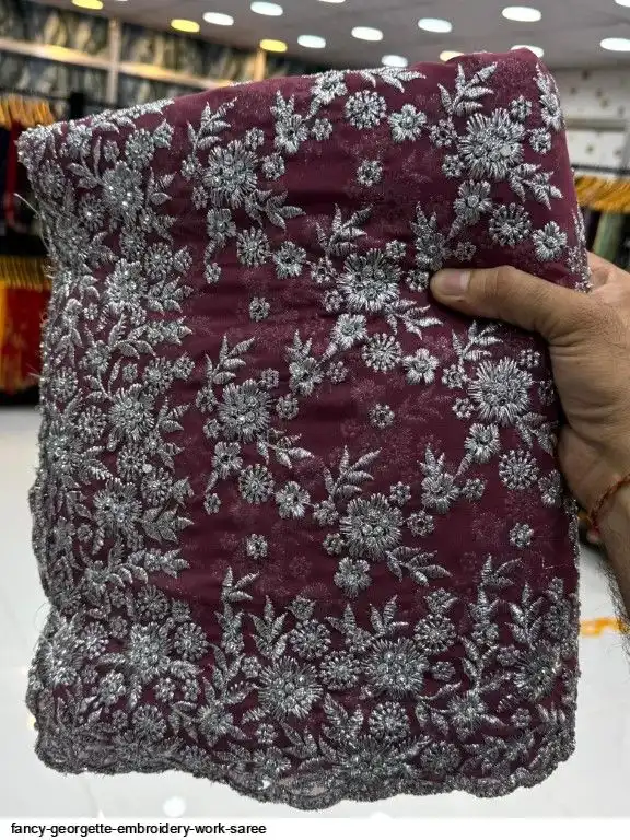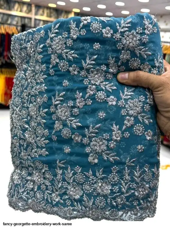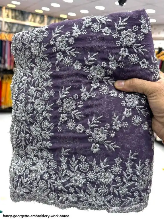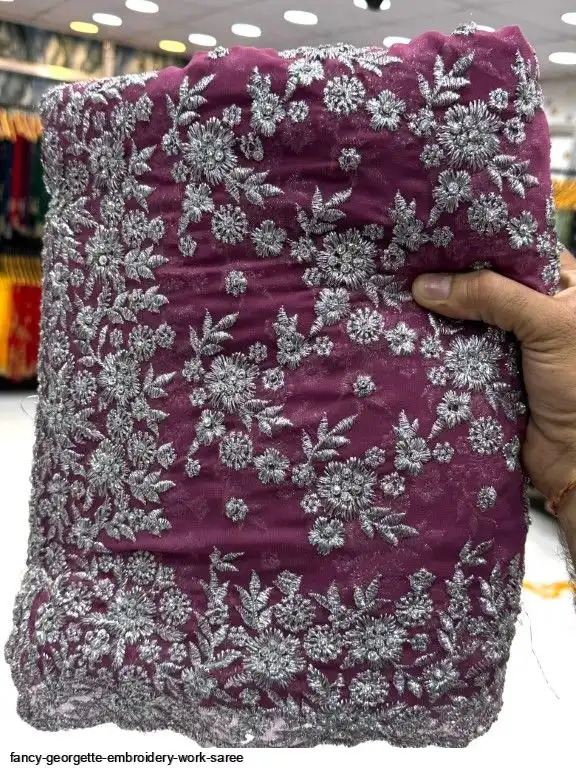 Work : Heavy Silver Zari Embroidery Work With Stone Work