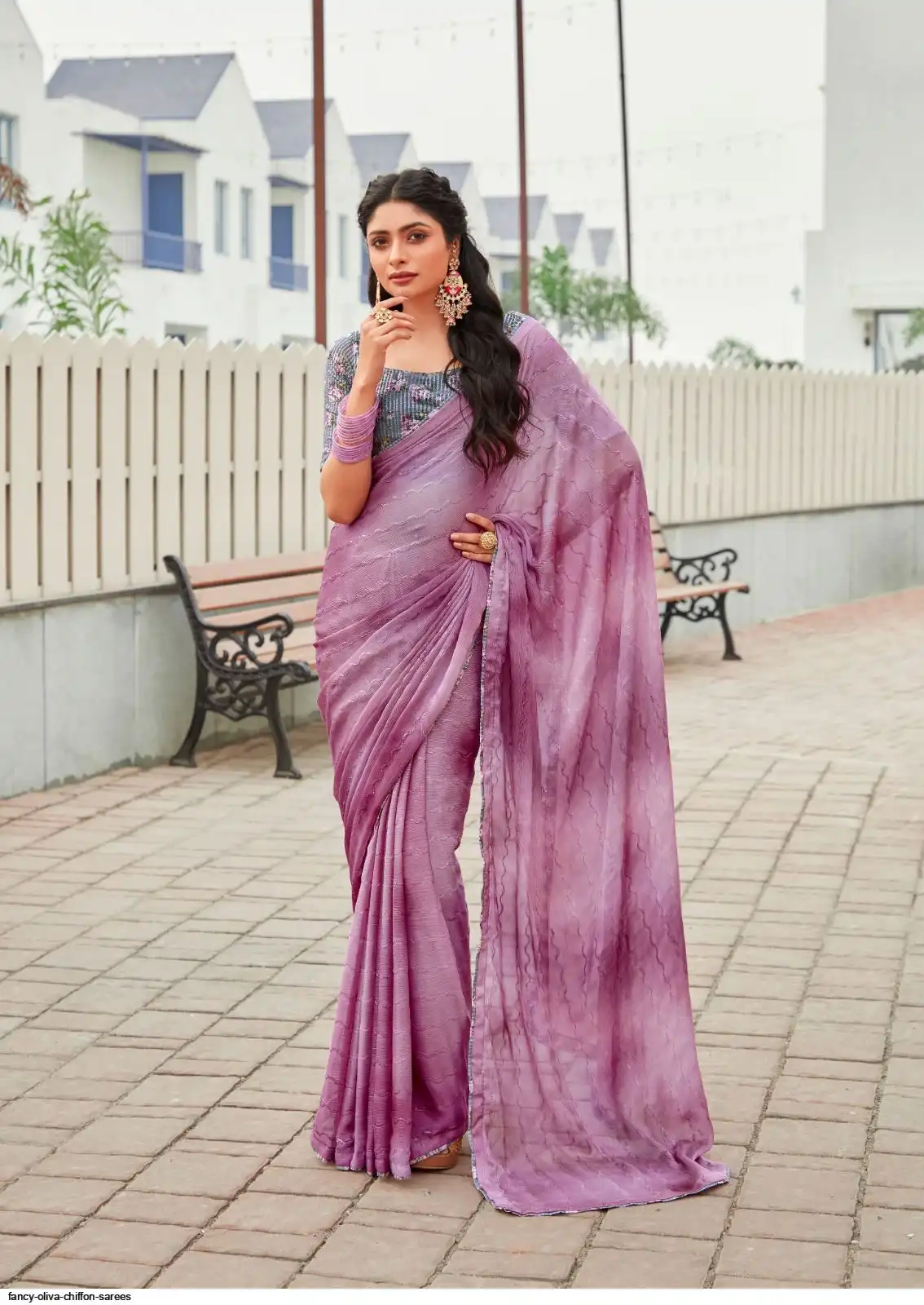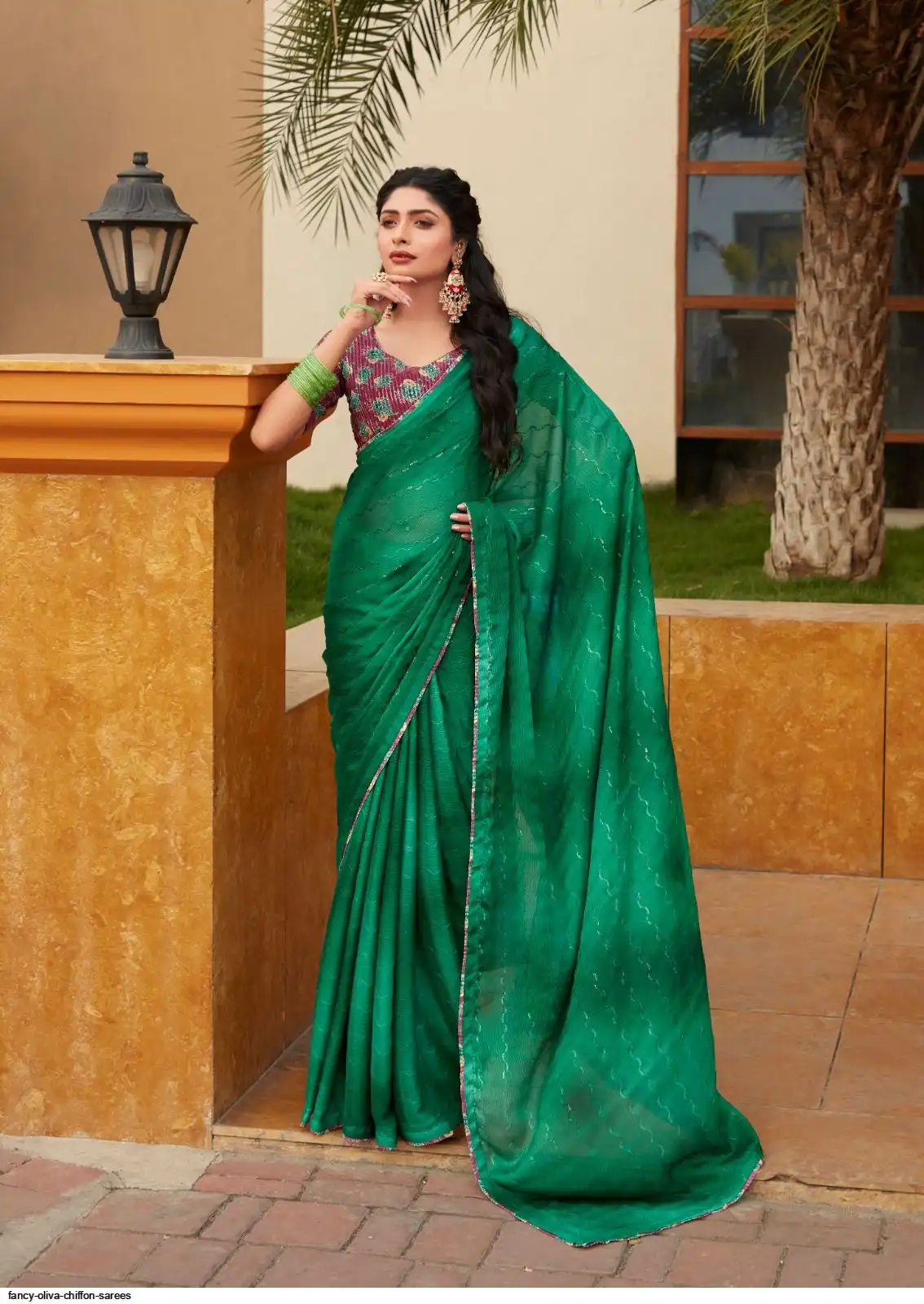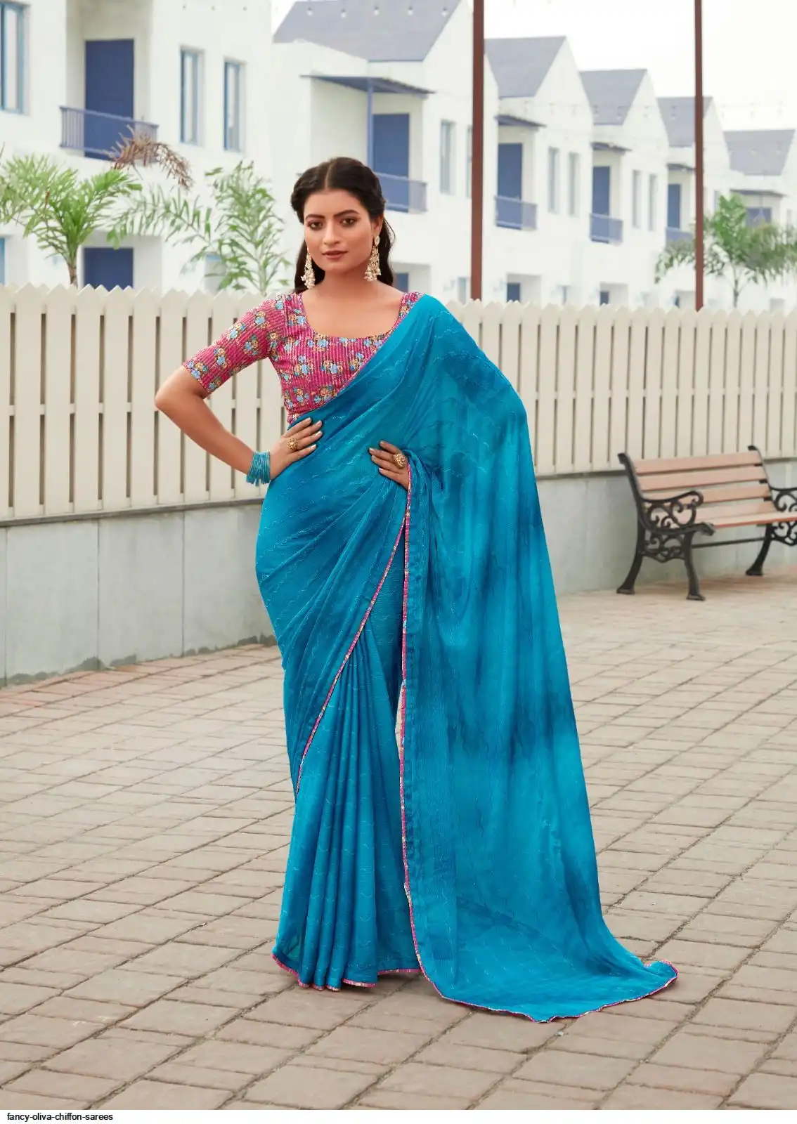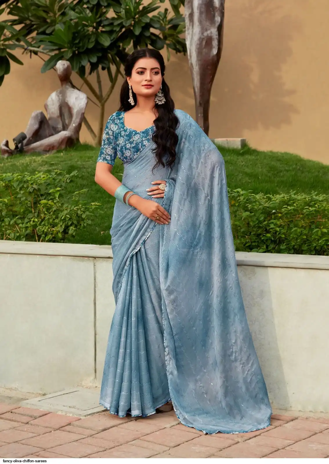 SAREES : 3D SHADED CHIFFON WITH EMBROIDERY WORK AND EMBROIDERY BLOUSE