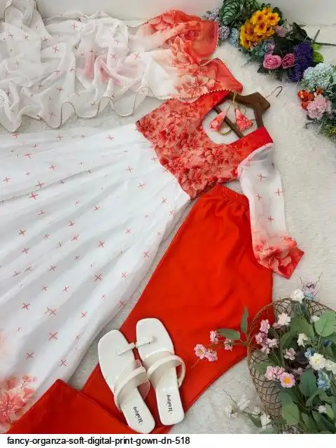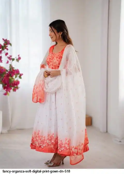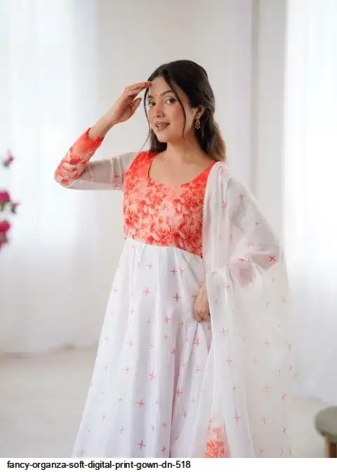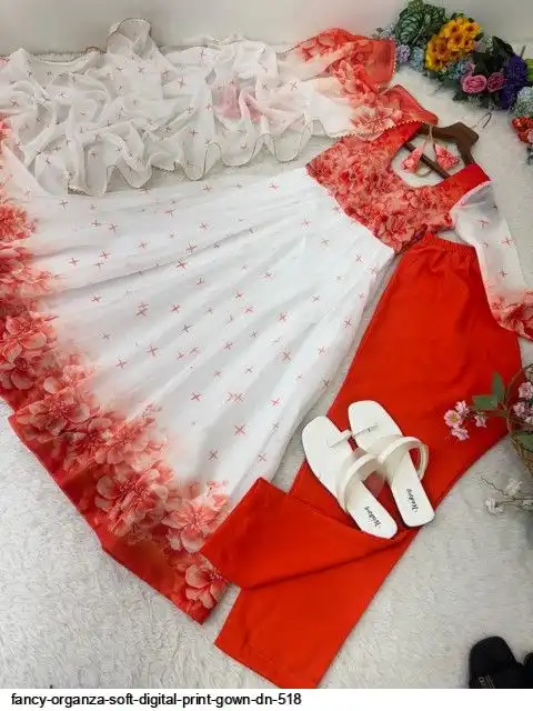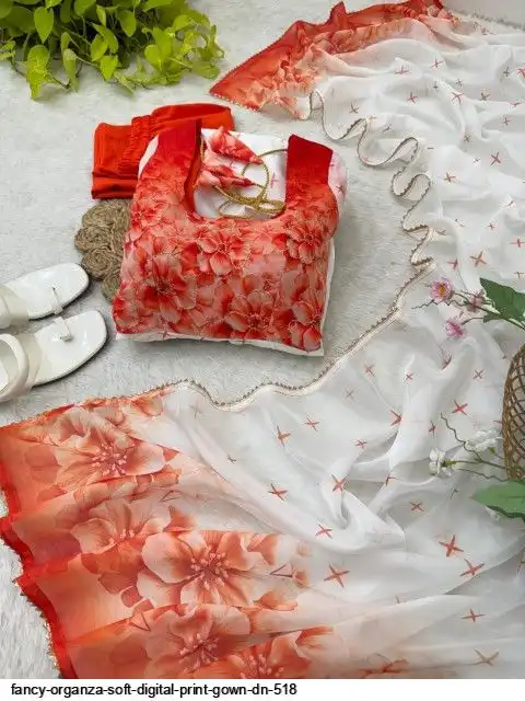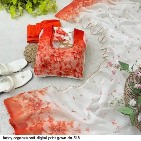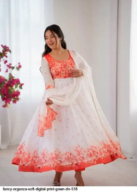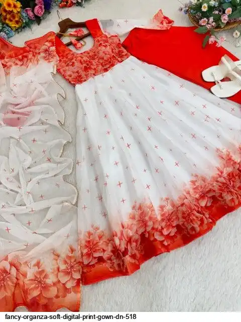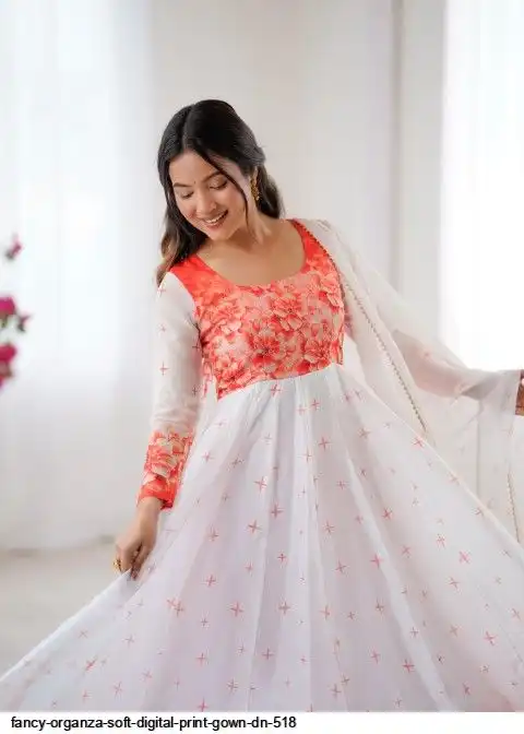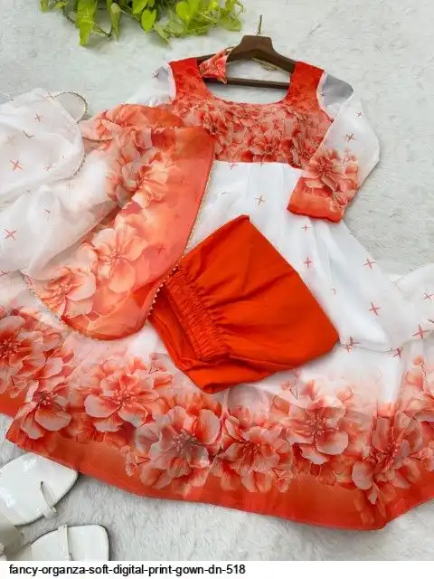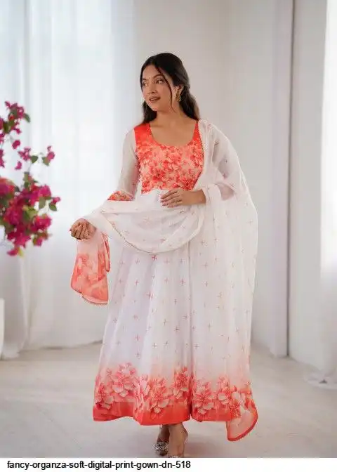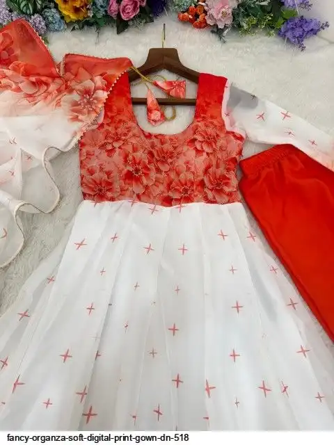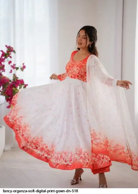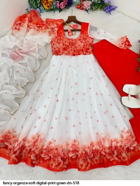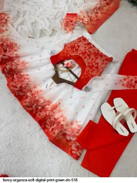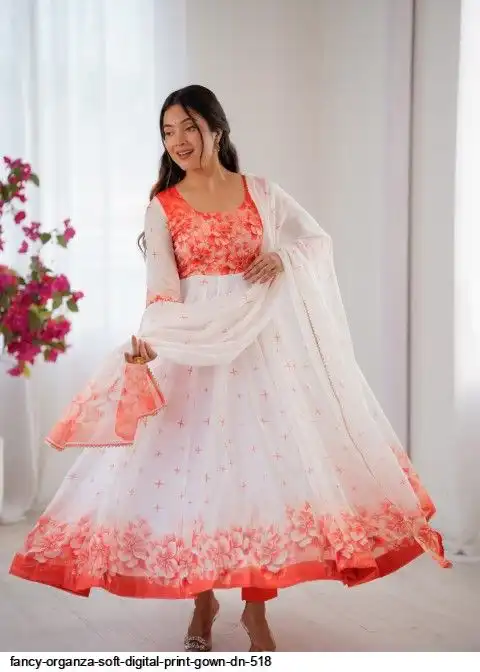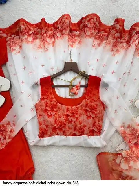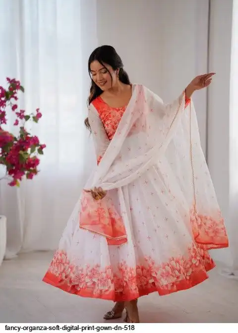 Gown Febrics Organza Soft Taby Silk Heavy Quality Fabric With Digital Print And , Full Long Sleeve , Choli Hand Rebin Work