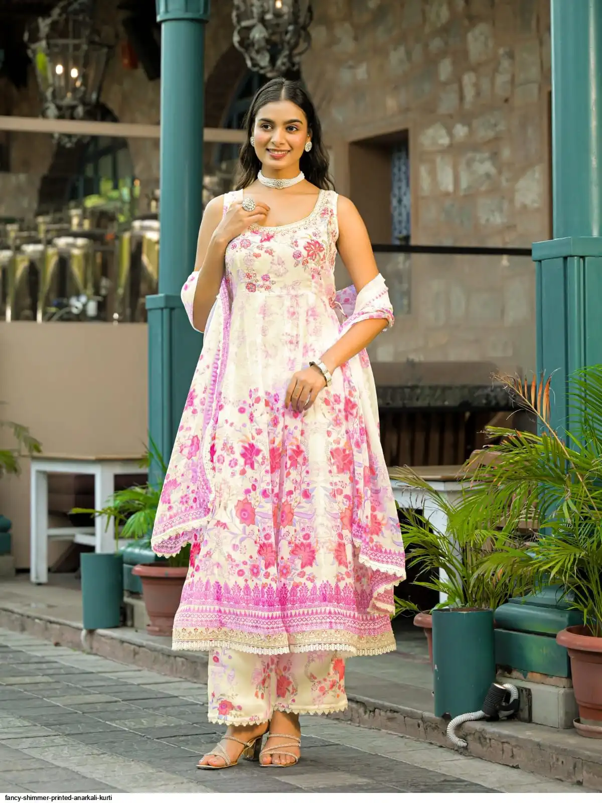 FANCY SHIMMER PRINTED ANARKALI KURTI