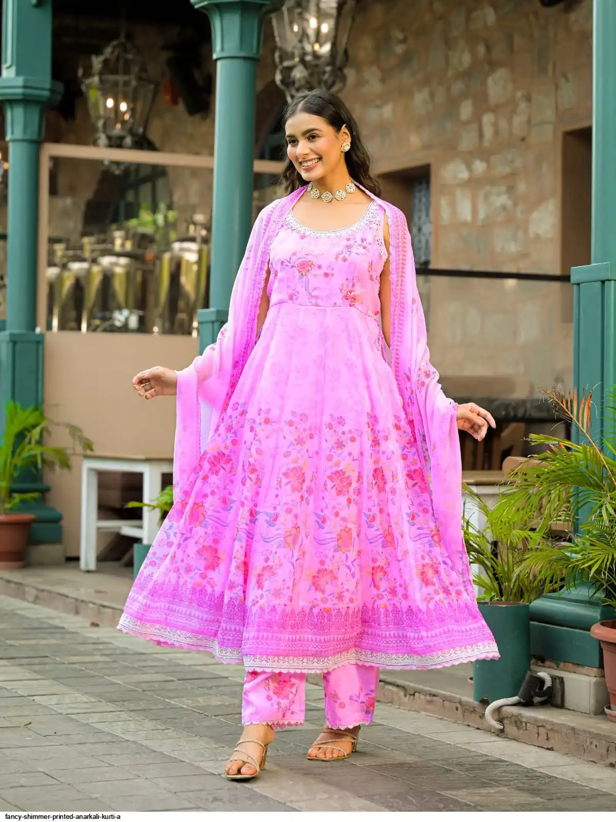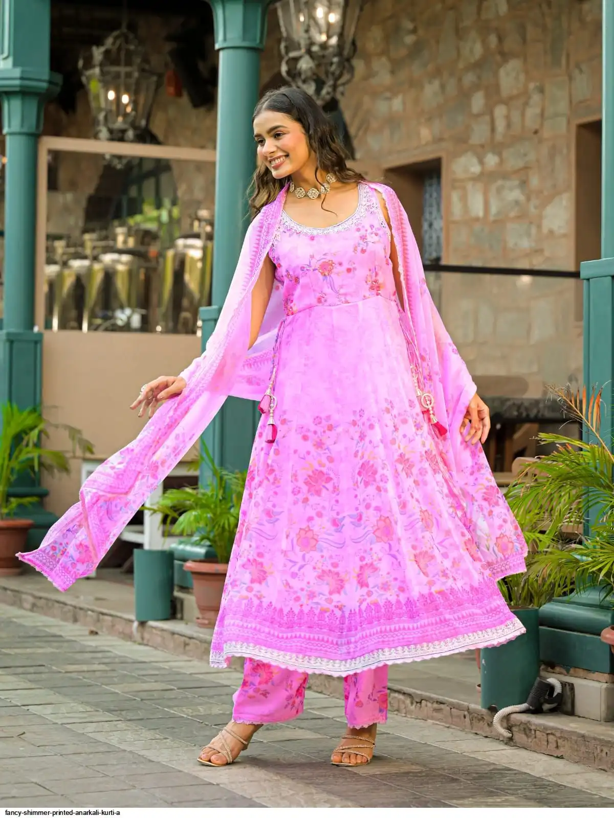 FANCY SHIMMER PRINTED ANARKALI KURTI A