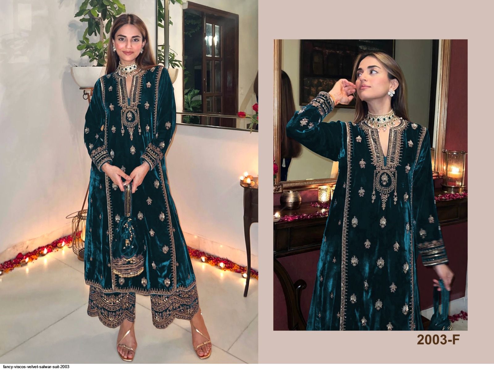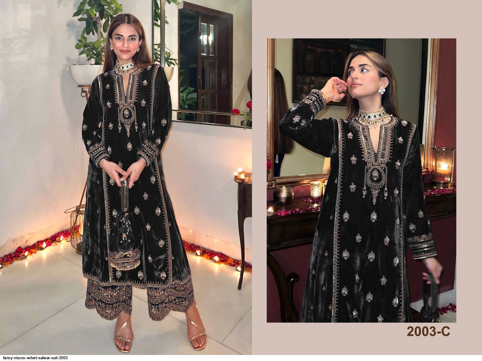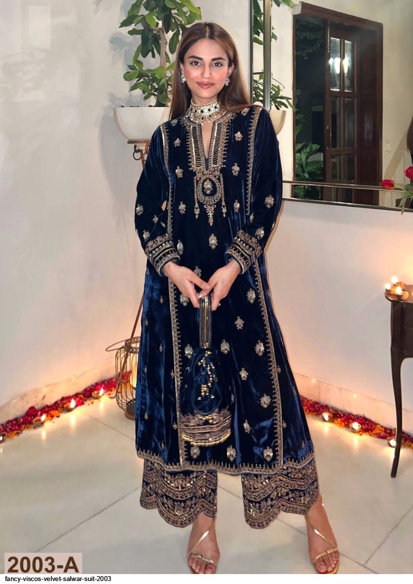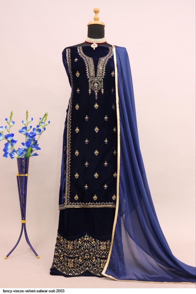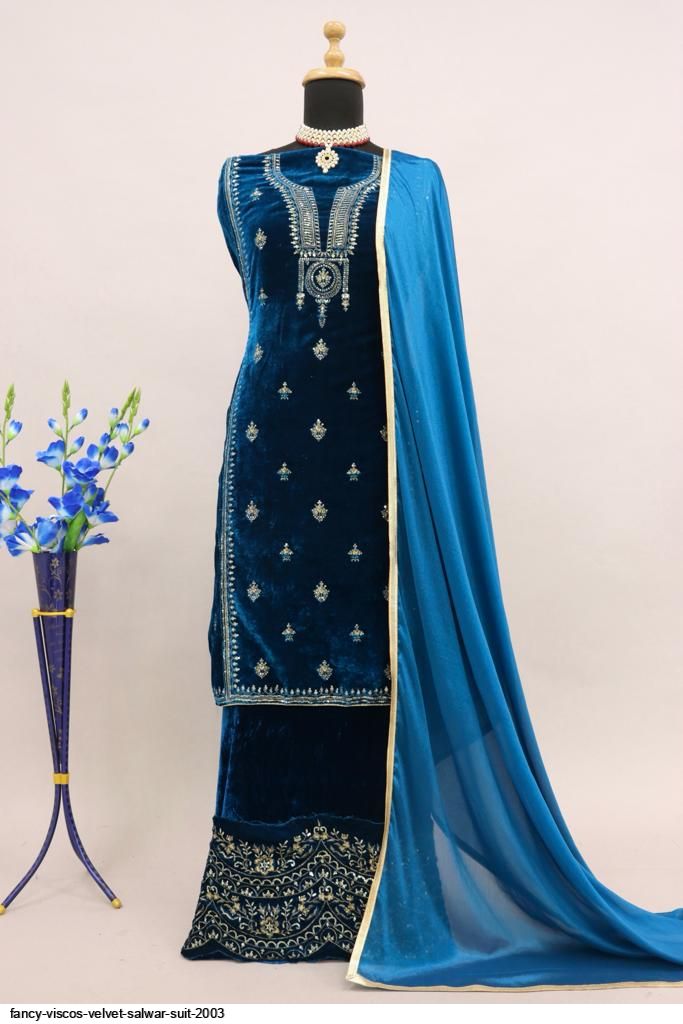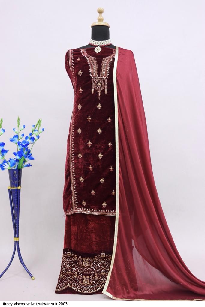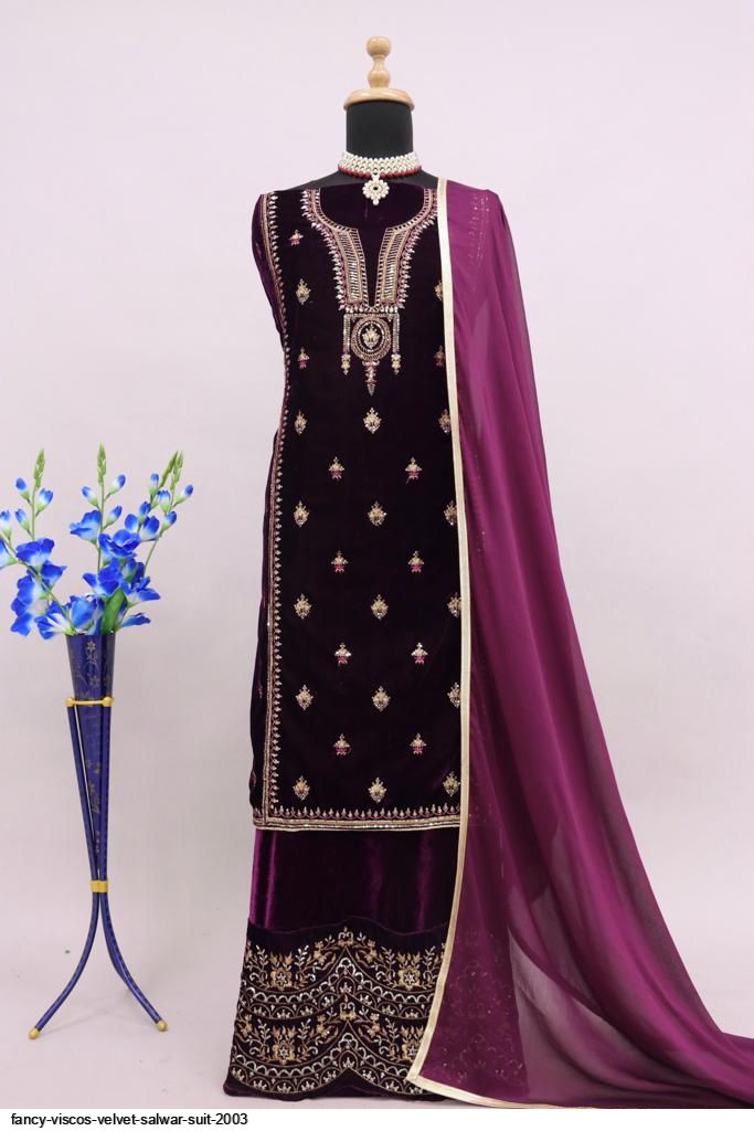 TOP :- PURE VISCOS VELVET WITH EMROIDERY SIQVANCE WORK WITH NECK /DAMAN LESS