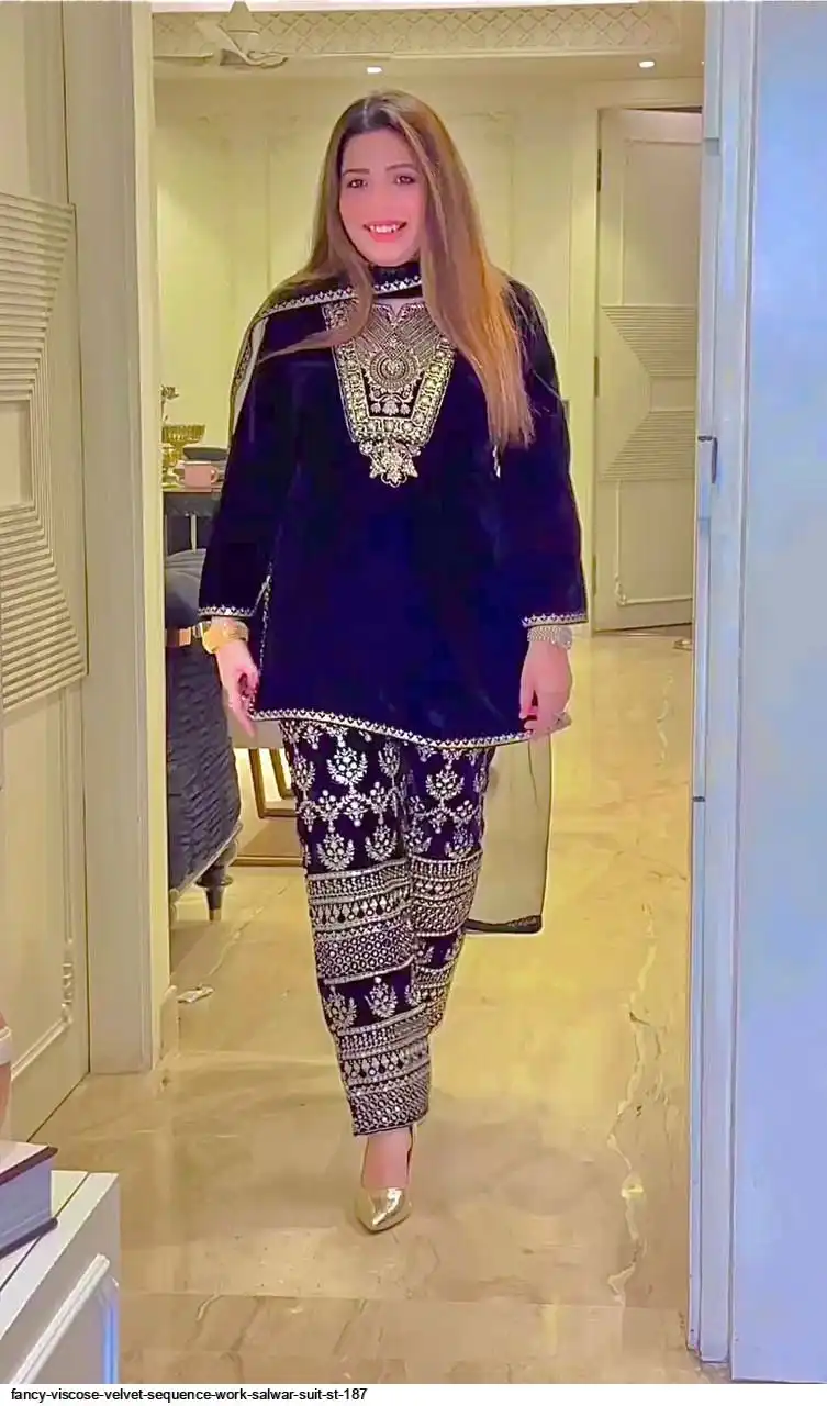 DESIGNER WEAR HEAVY VISCOSE VELVET TOP WITH HEAVY WORK PLAZZO