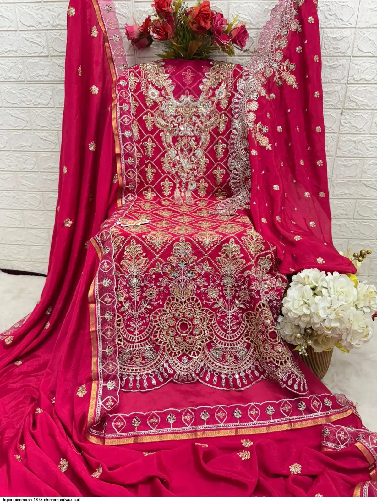 Top:- CHINNON HEAVY EMBROIDERED WITH HANDWORK