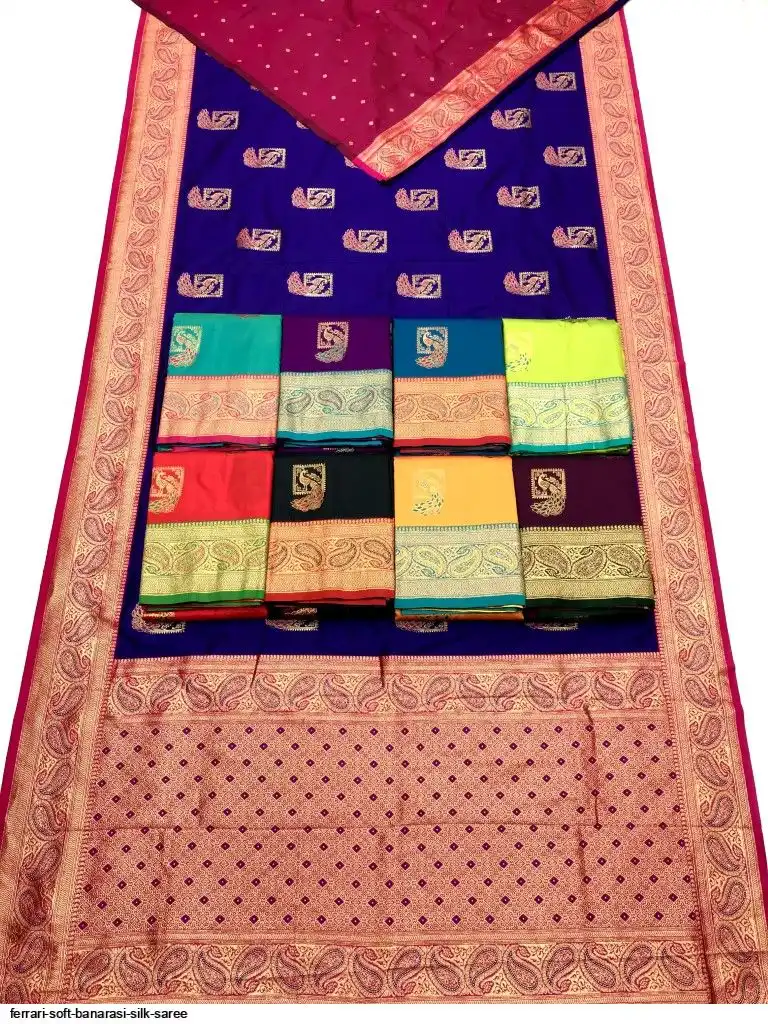 FABRIC :- Pure Soft Banarasi Silk Saree With Beautiful Colours And Contrast Weaving Border And Pallu With All Over Peacock Beautiful Gold Zari Weaving Design And Rich Weaved Pallu And Blouse