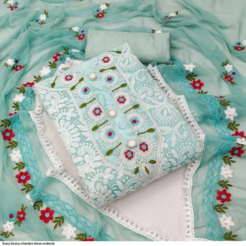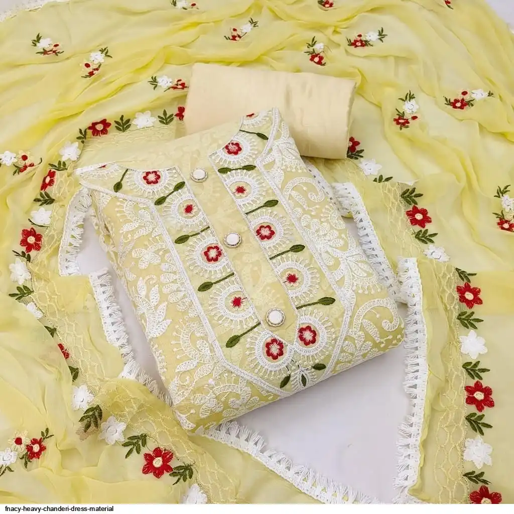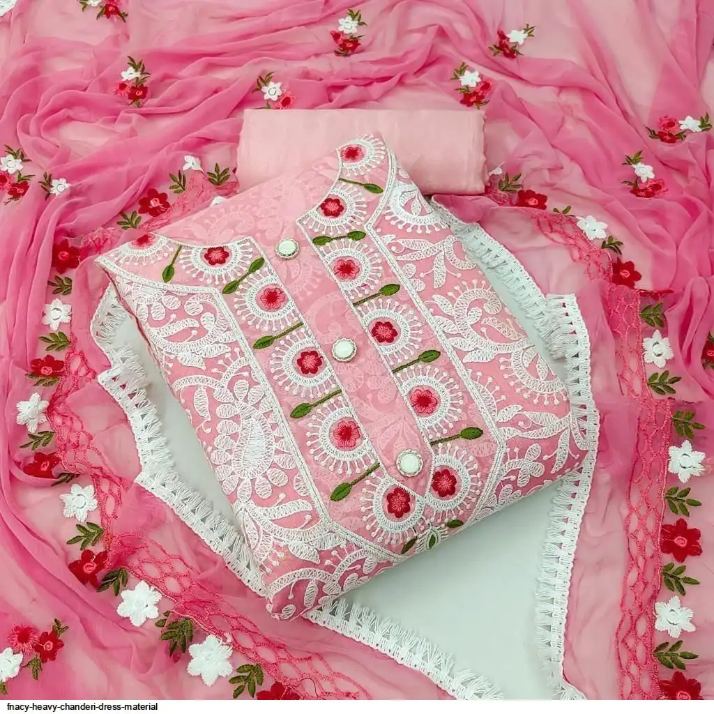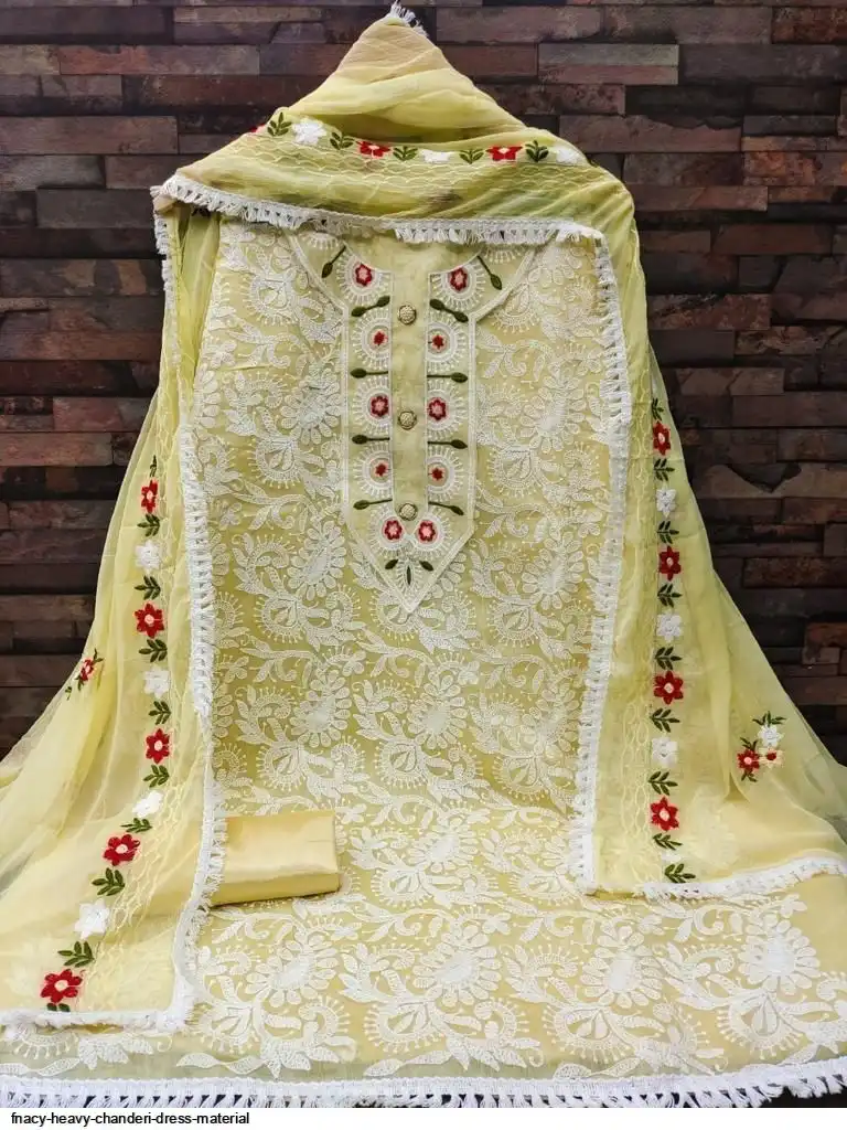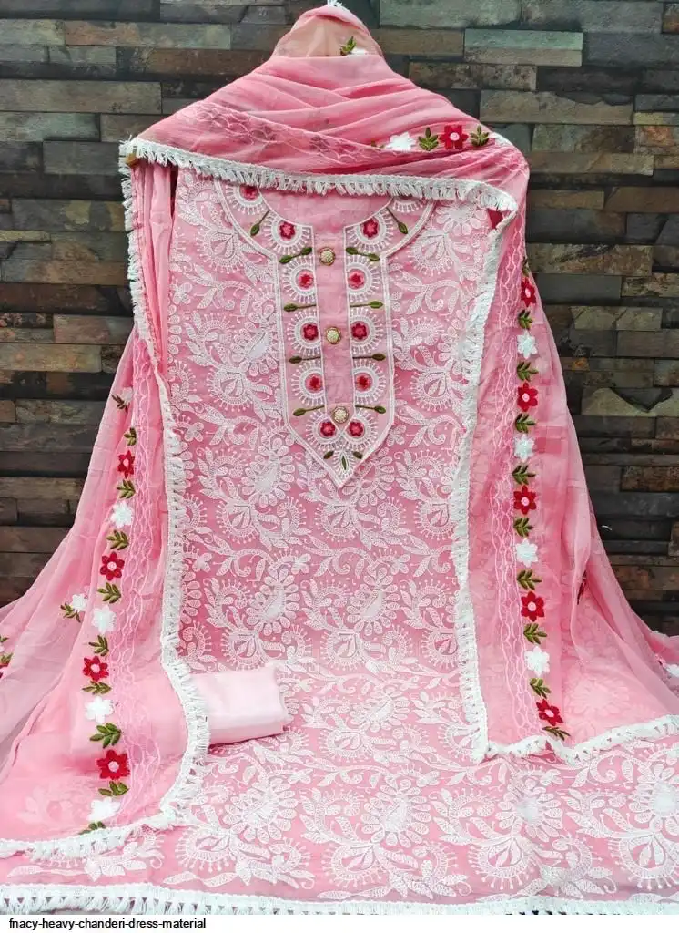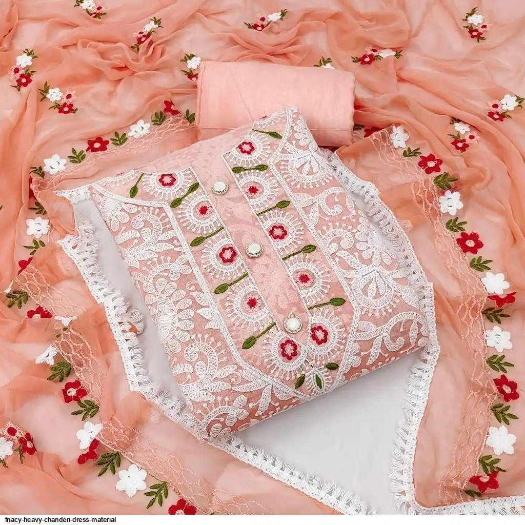 Top : HEAVY CHANDERI  WITH NECK EMBROIDERY  WORK 1.9 MTS
