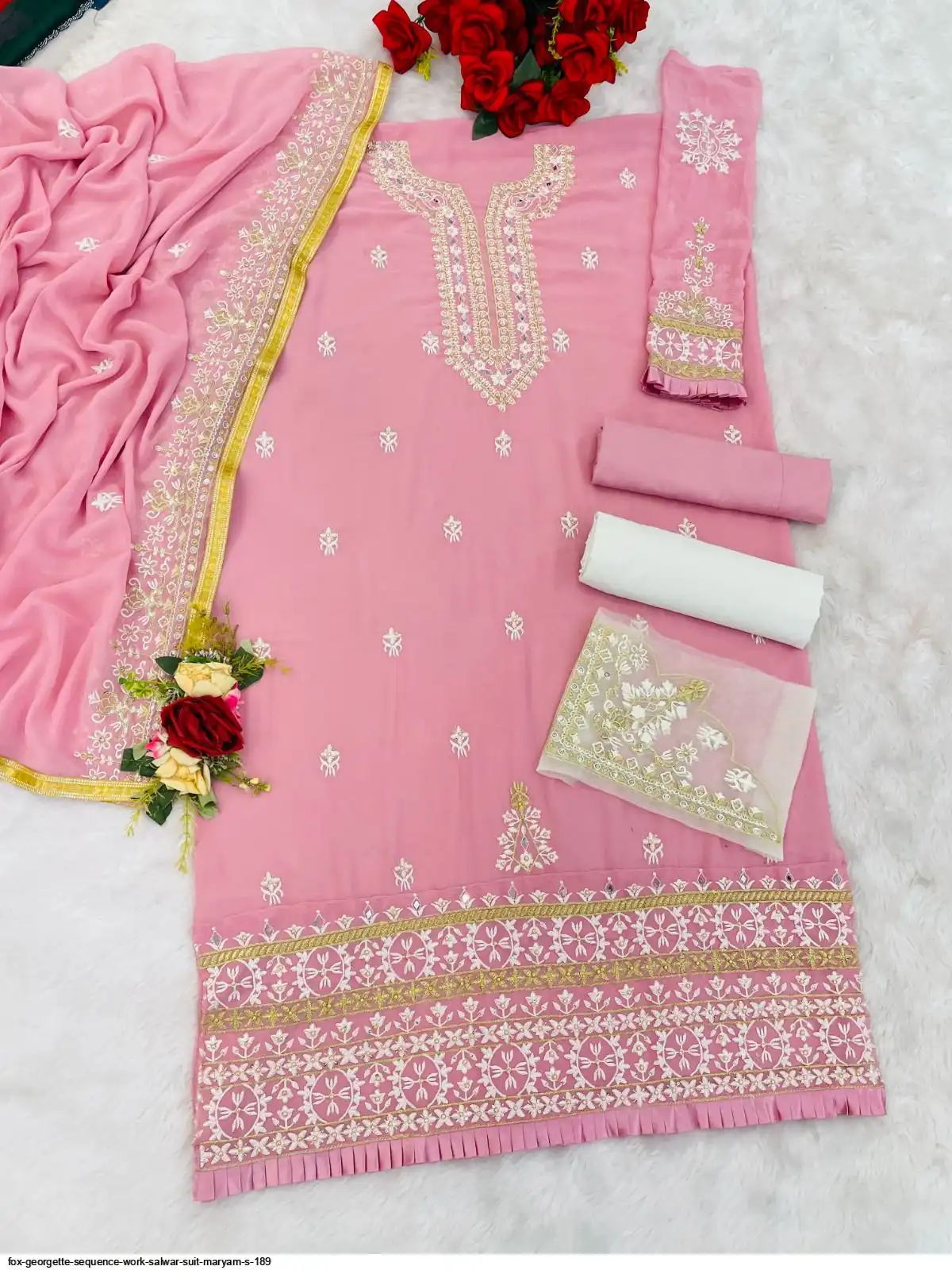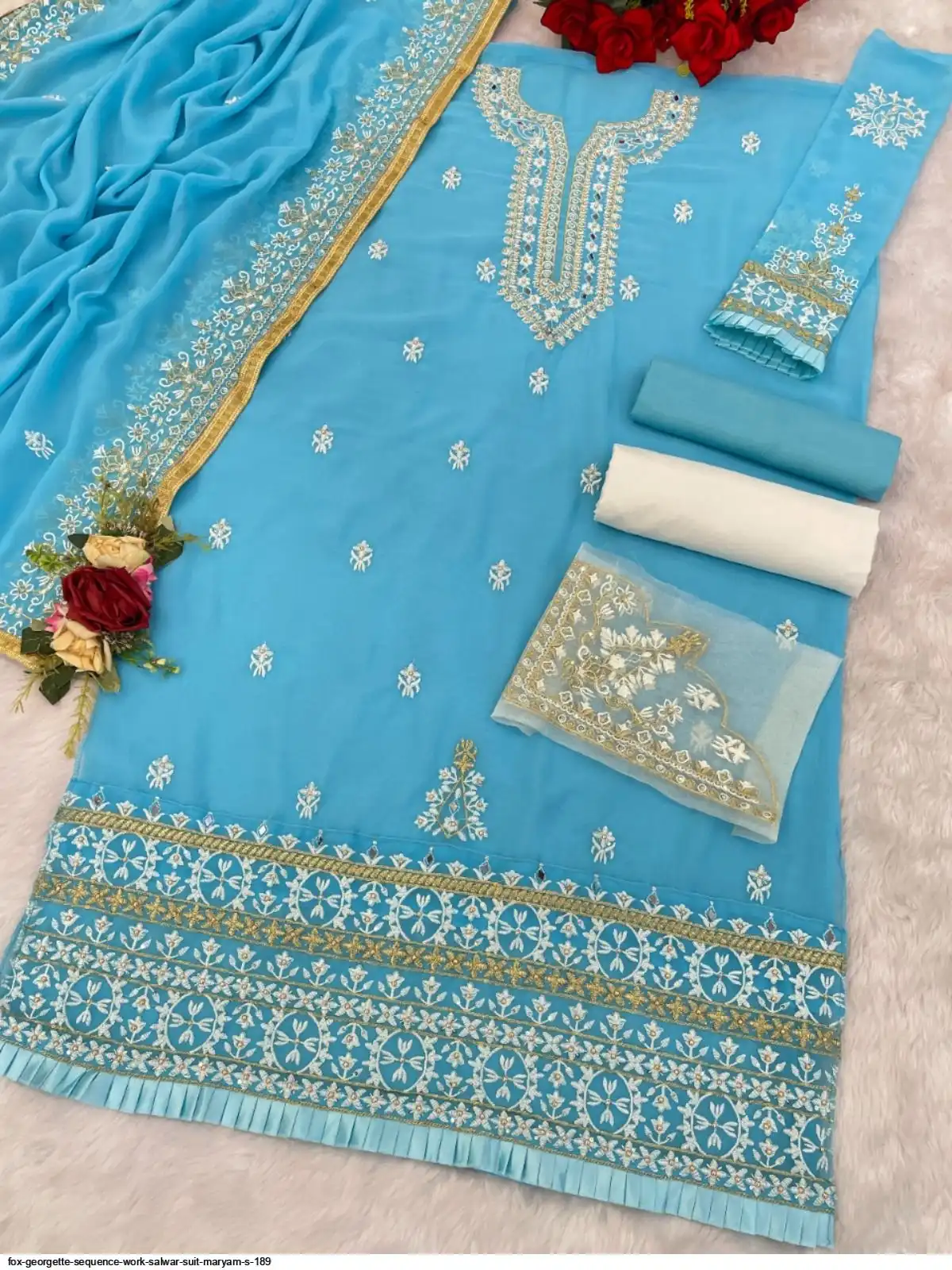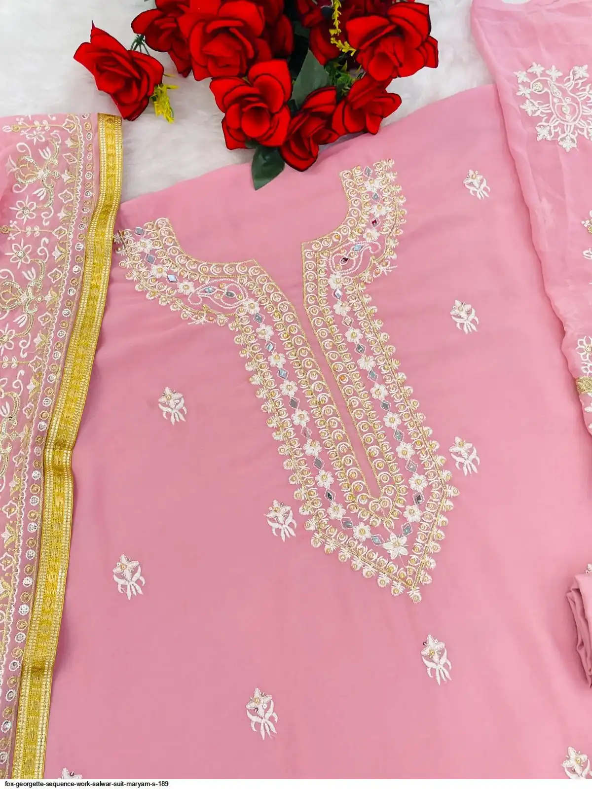 TOP : - Heavy Fox Georgette With Embroidery Sequence Work With Dimand + Mirar Work.
