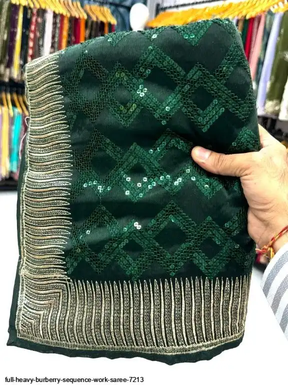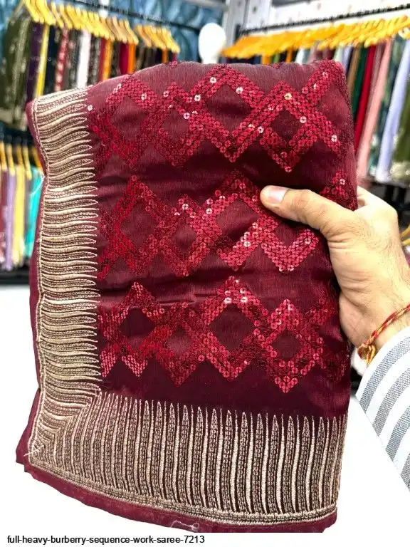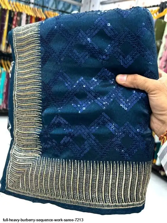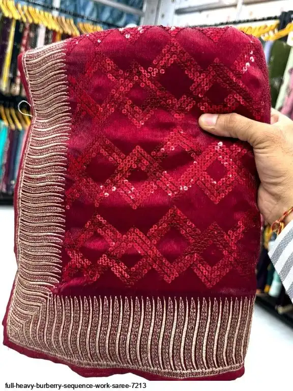 Work : Full Heavy Sequence Work In All Over Saree With Zari Work Border.
