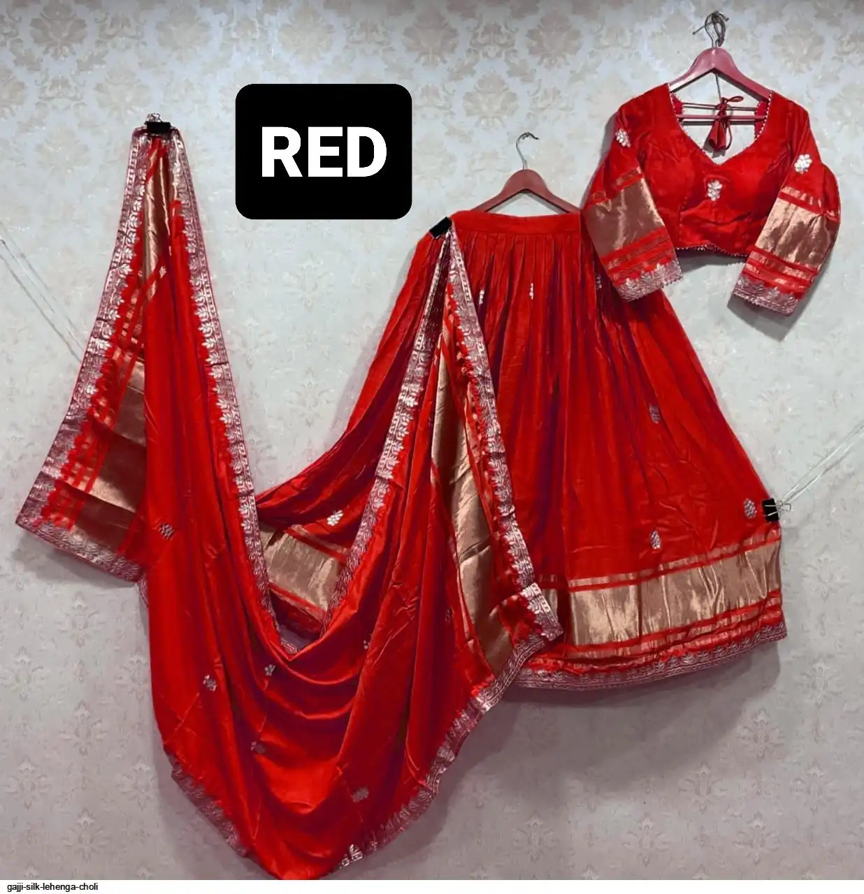 *Lehnga Fabric * : Modal Gajji silk _ with gota work, Fullstich,Size - upto 44, length - 44