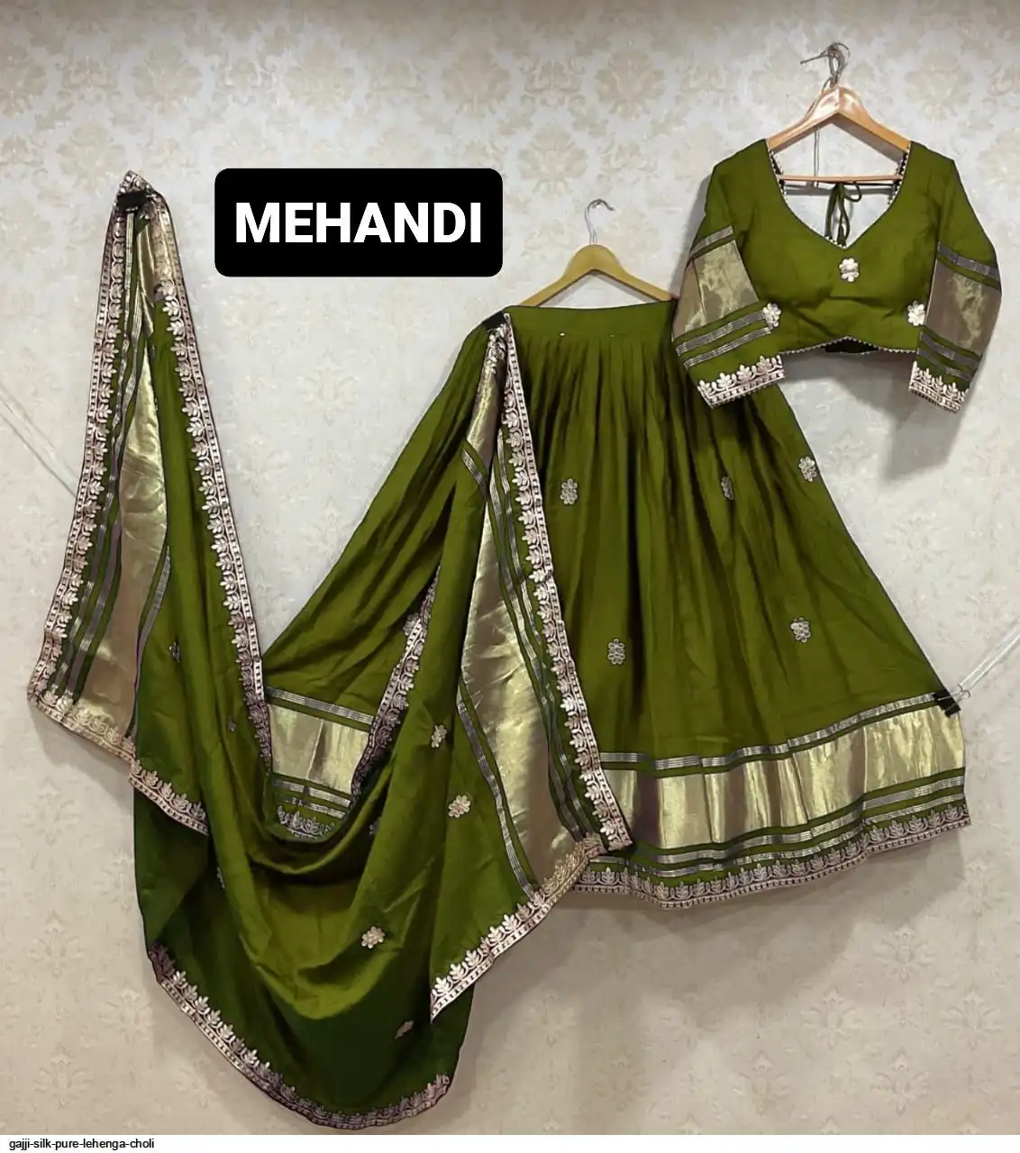 *Lehnga Fabric * : Modal Gajji silk _ with gota work, Fullstich,Size - upto 44, length - 44