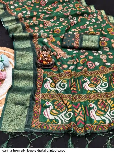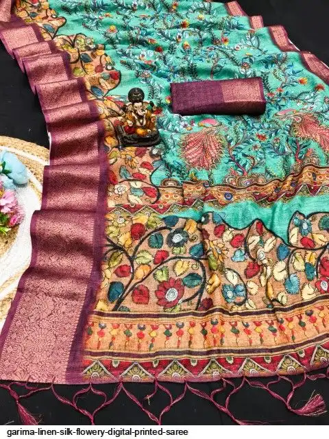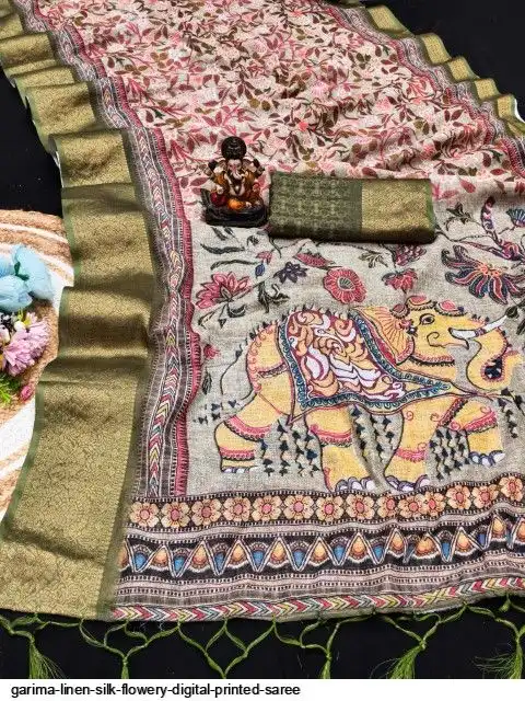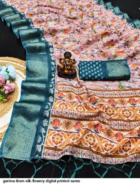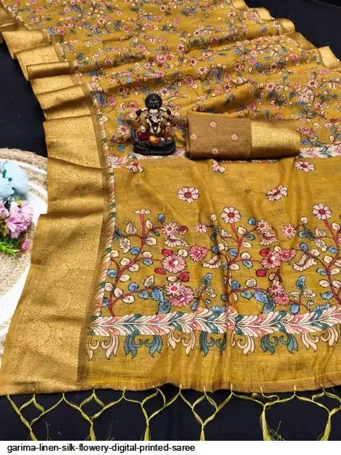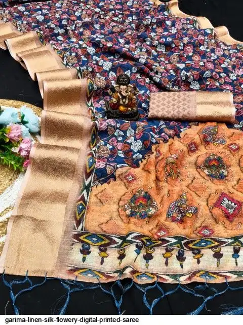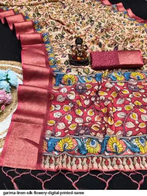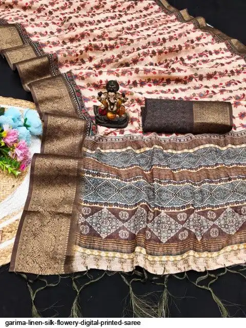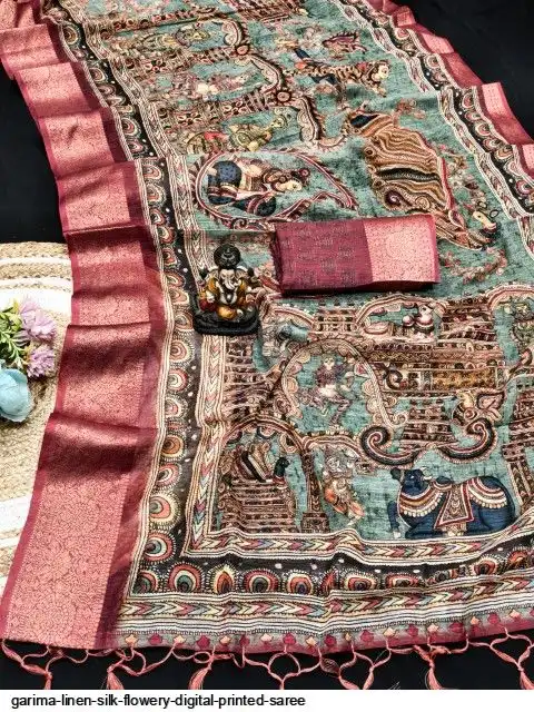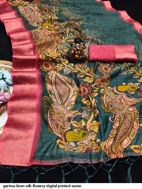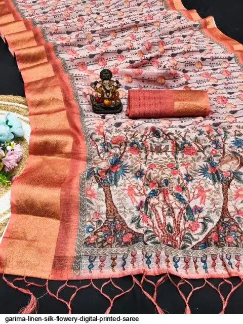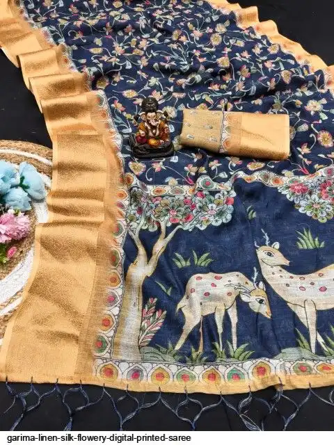 Here Is All Pretty Linen Silk Digital Print Sarees In Super Budget Range