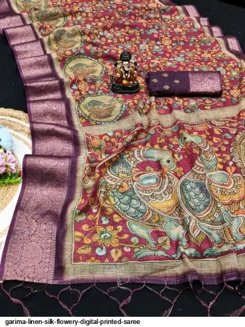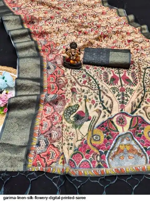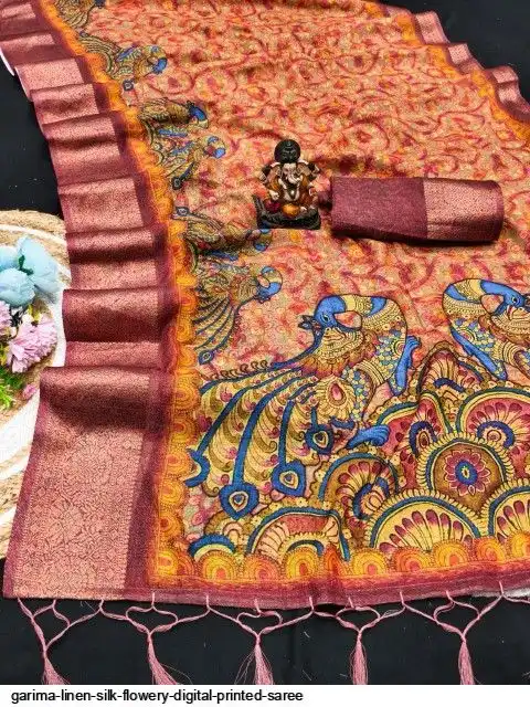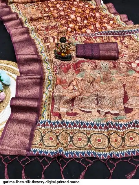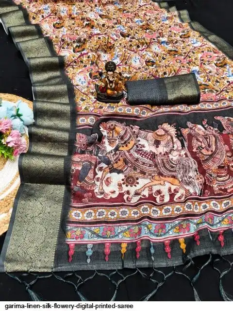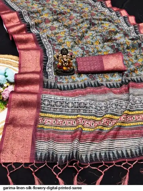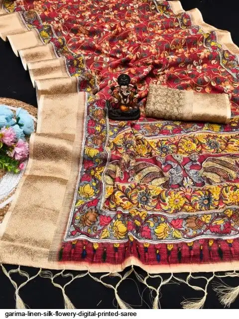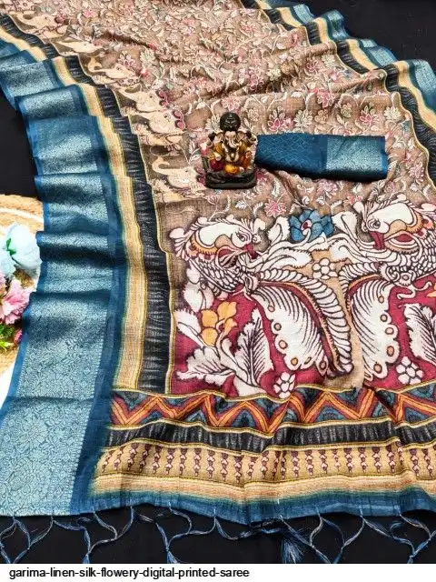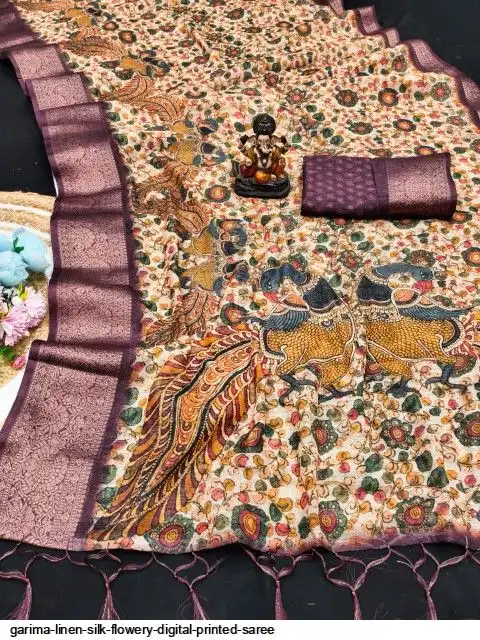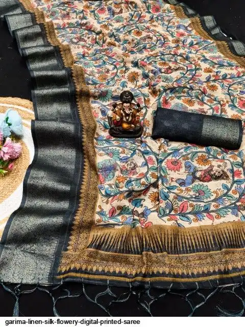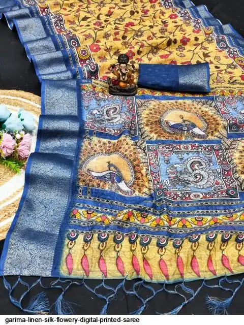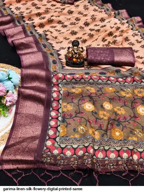 Here Is All Pretty Linen Silk Digital Print Sarees In Super Budget Range