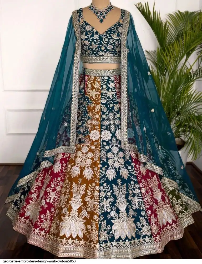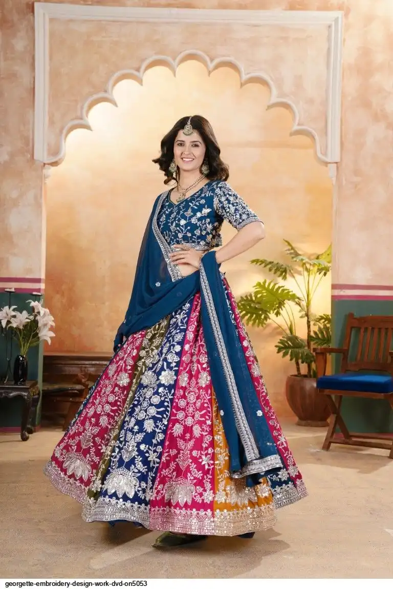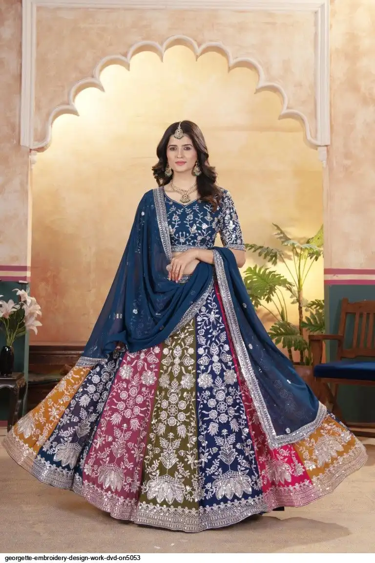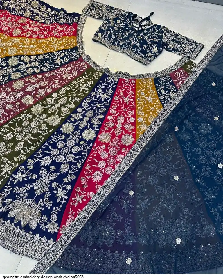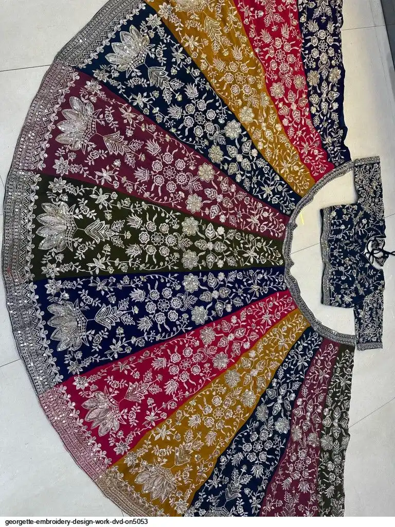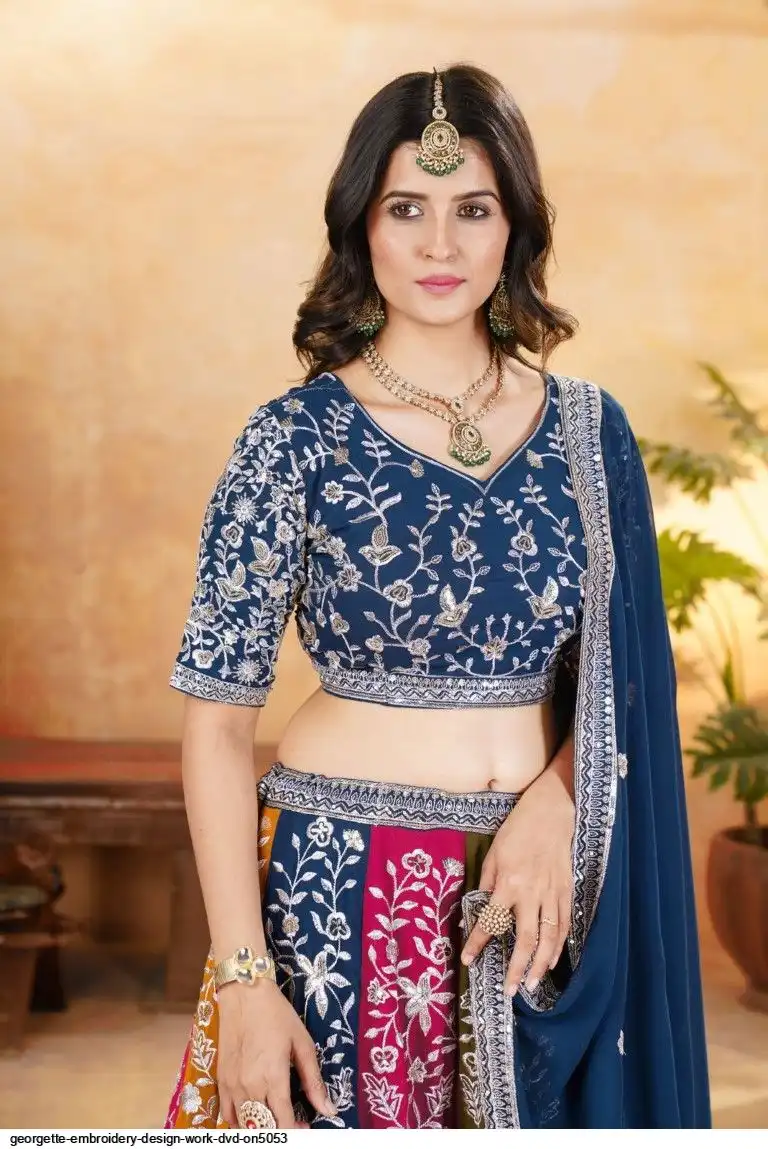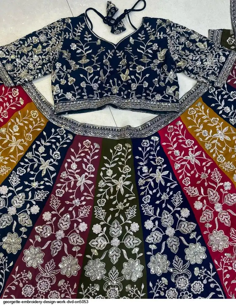 CHOLI:FAUX GEORGEET WITH EMBROIDERY SEQUENCE DESIGN WORK