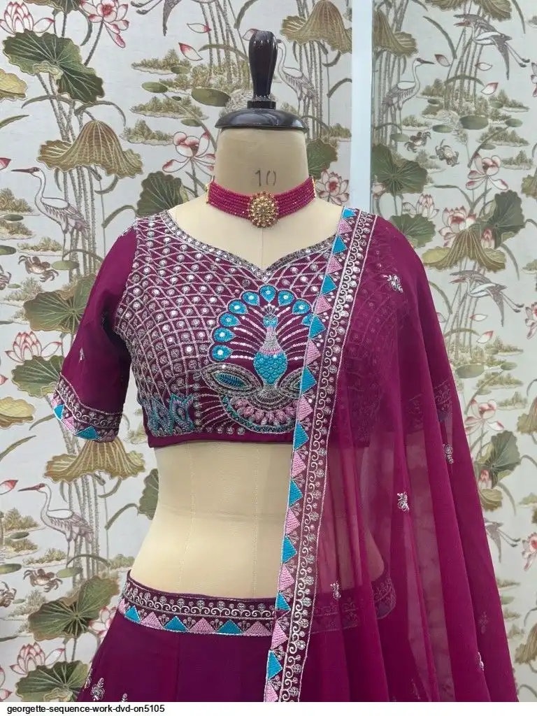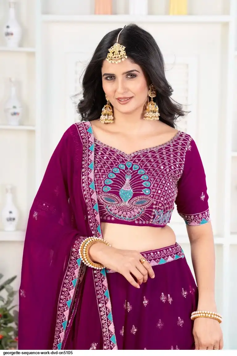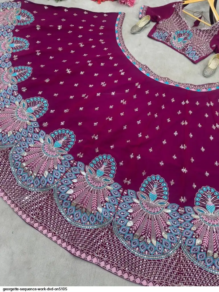 CHOLI:FAUX GEORGEET WITH EMBROIDERY SEQUENCE DESIGN WORK