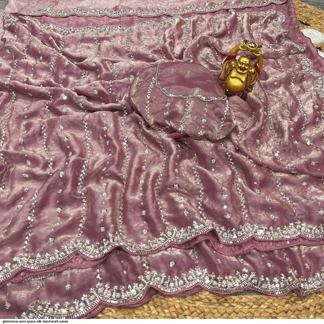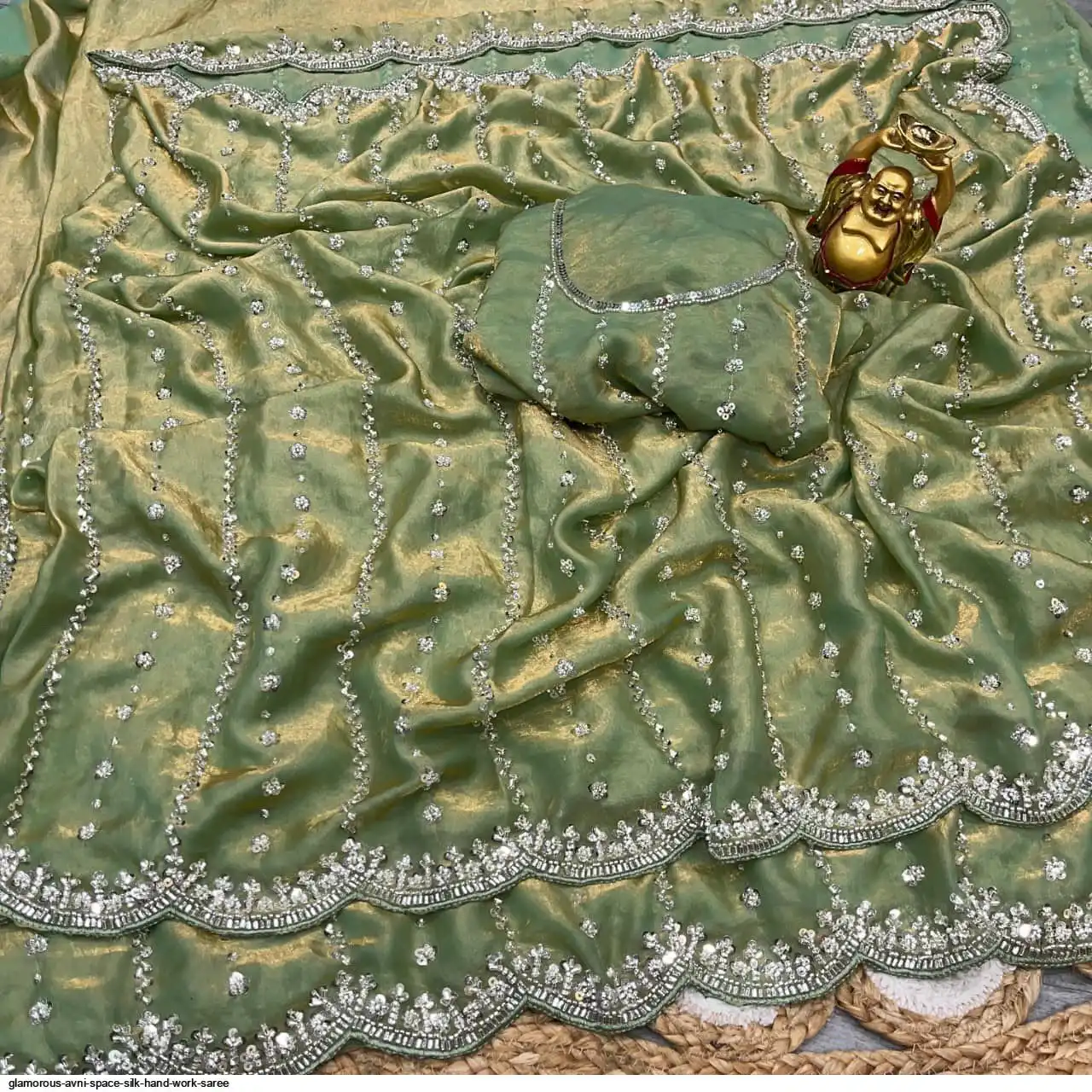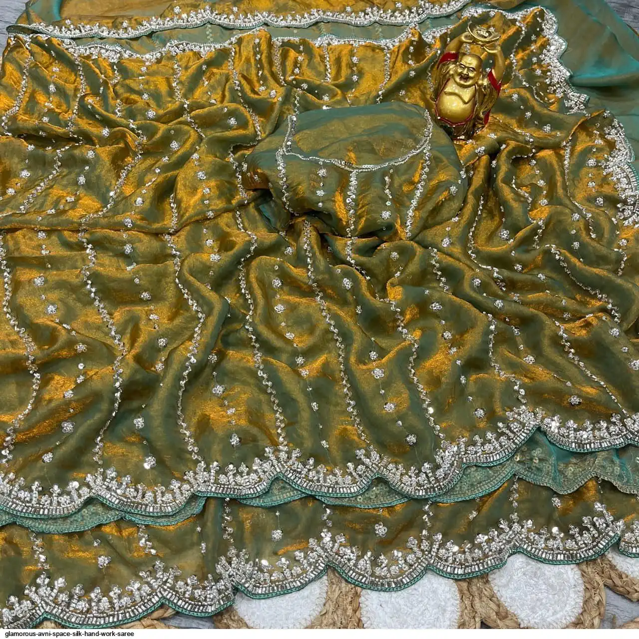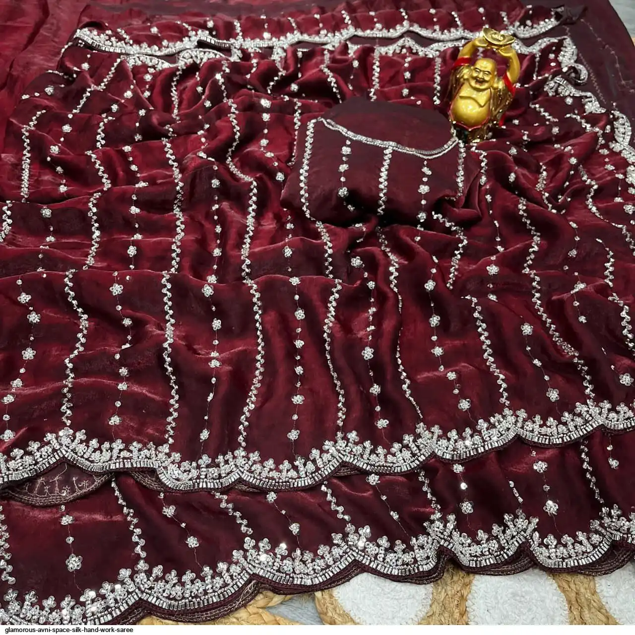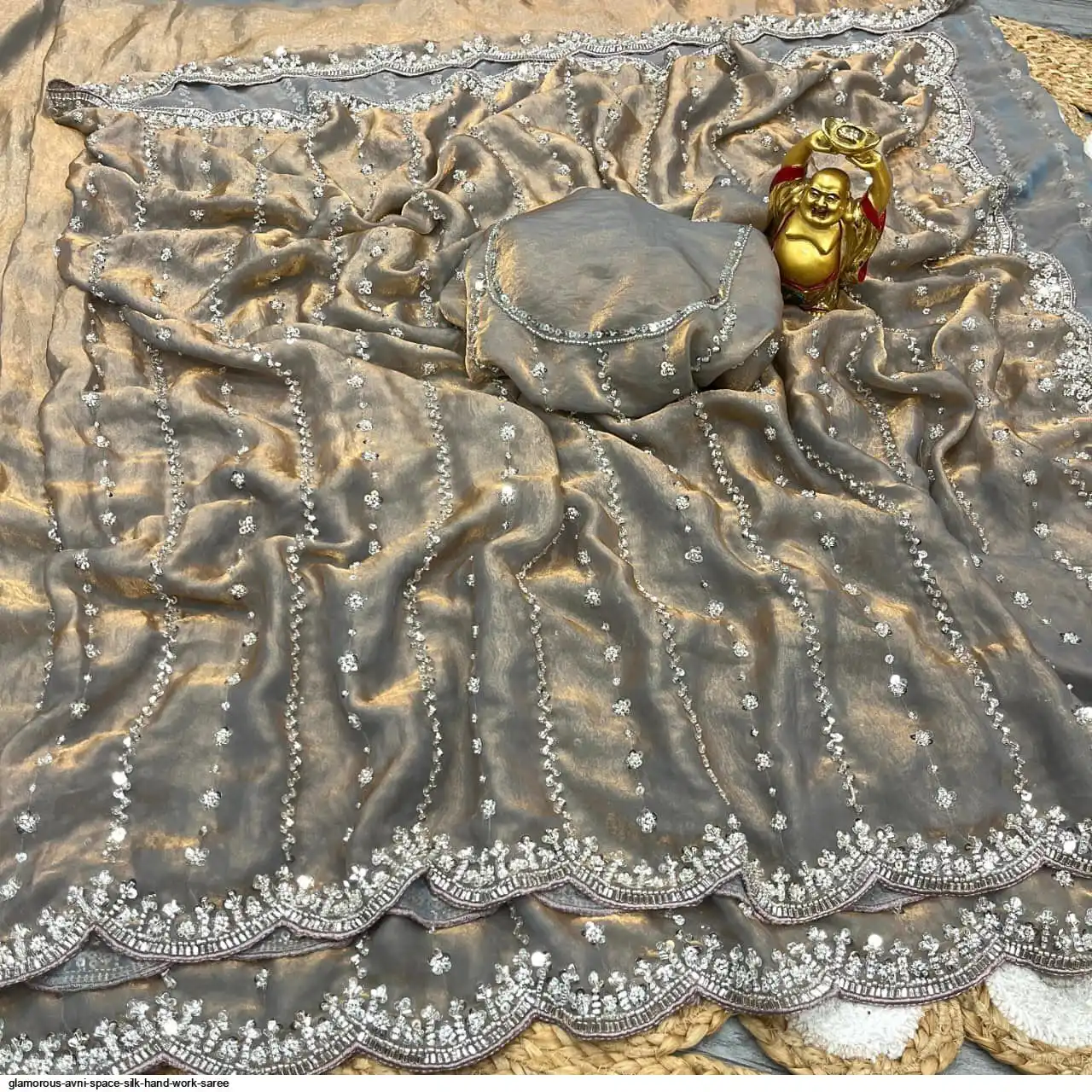 BLOUSE FABRIC- Space silk with beeds work blouse cut:- 0.80