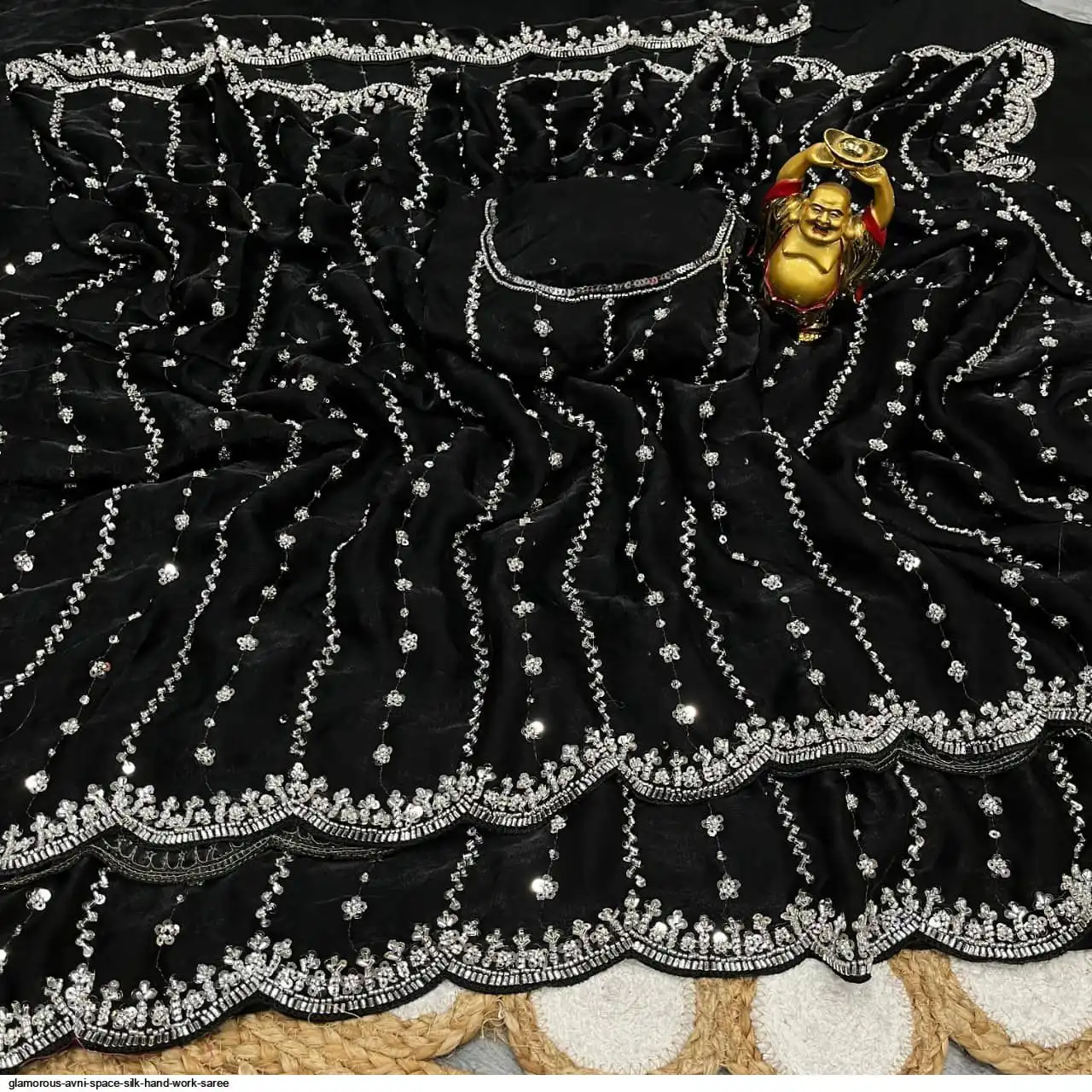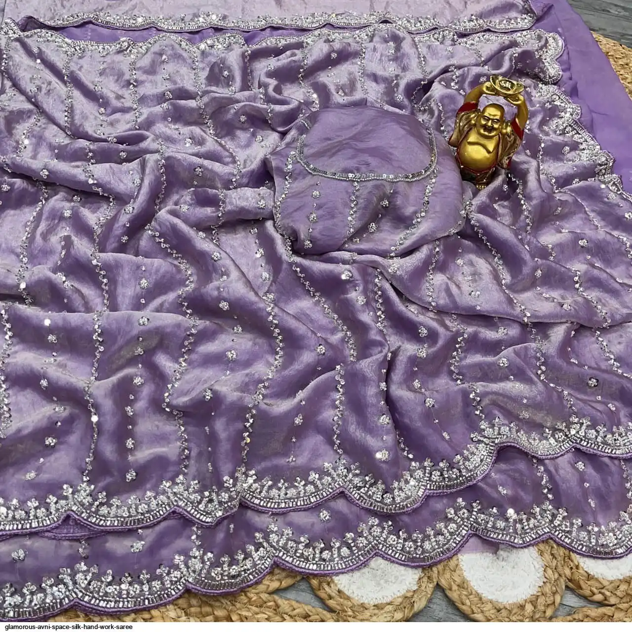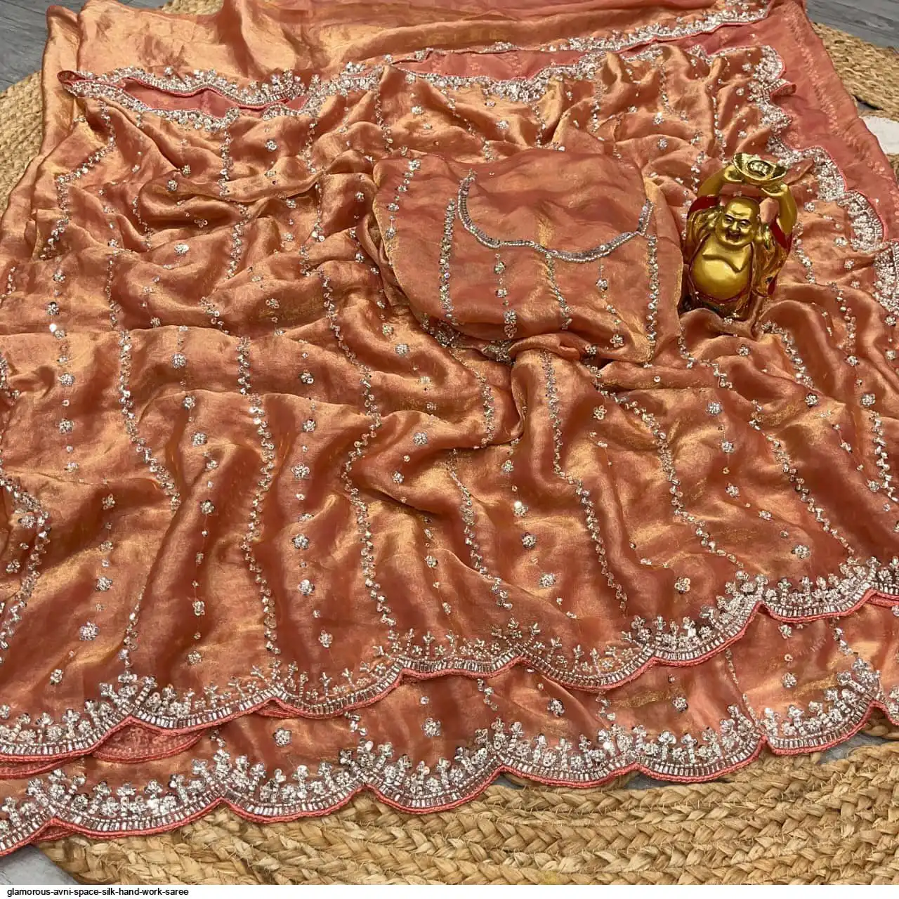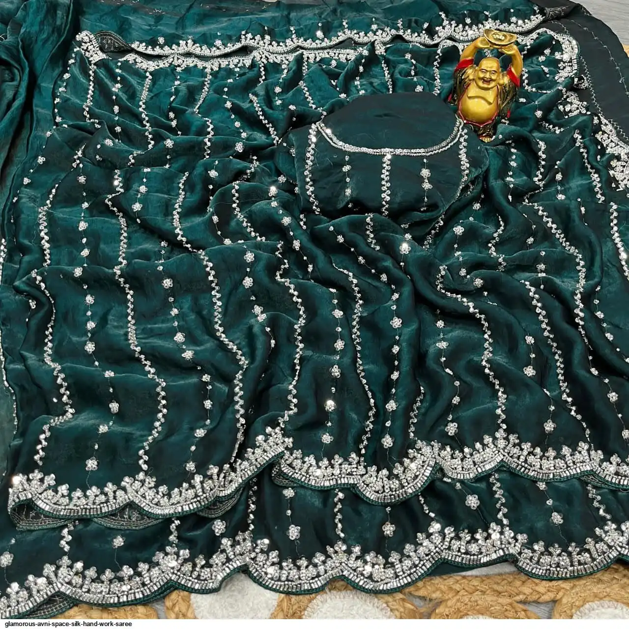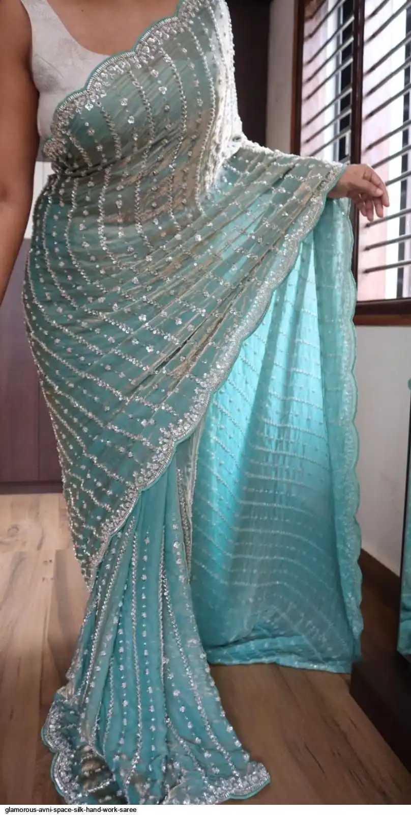 BLOUSE FABRIC- Space silk with beeds work blouse cut:- 0.80