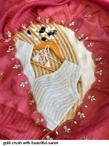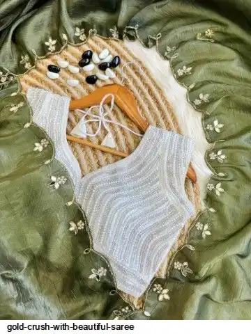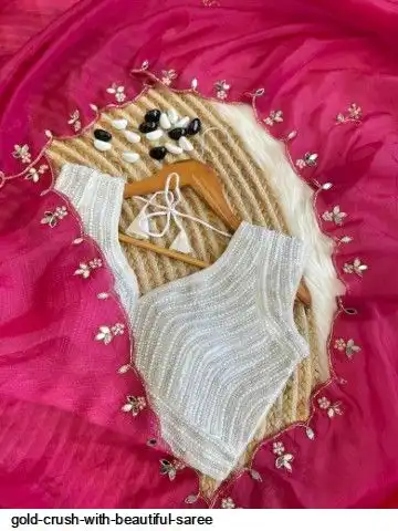 Gold crush saree with beautiful handwork all over attach with real mirror and stitch pearl handwork blouse